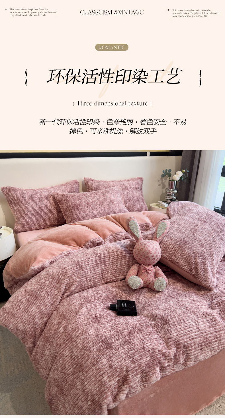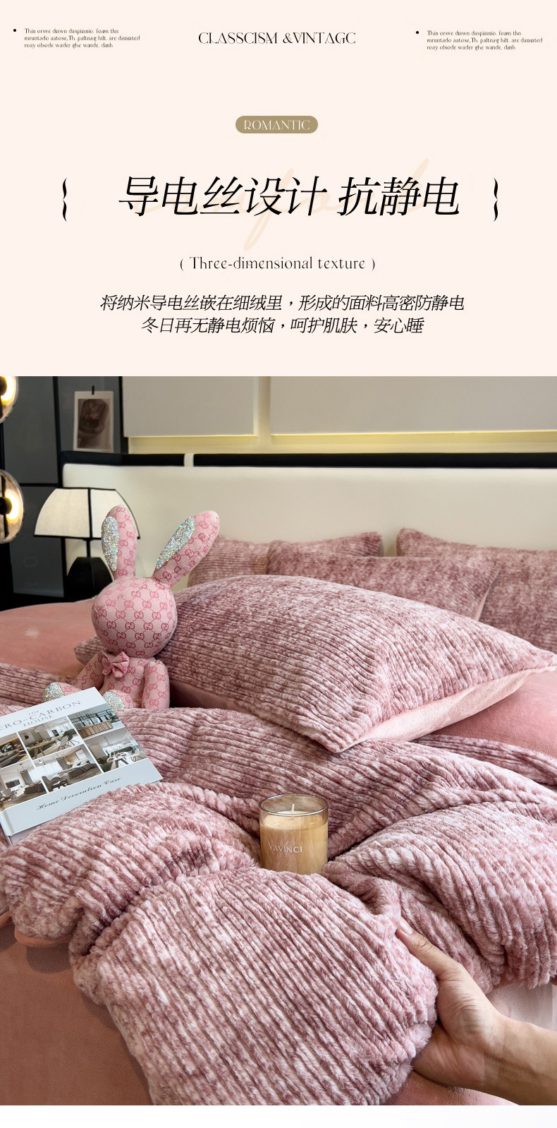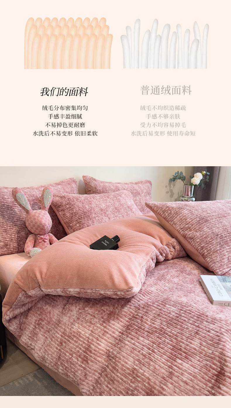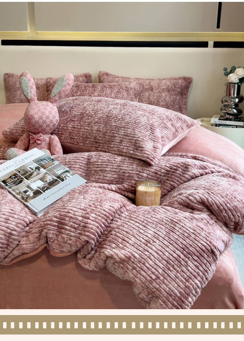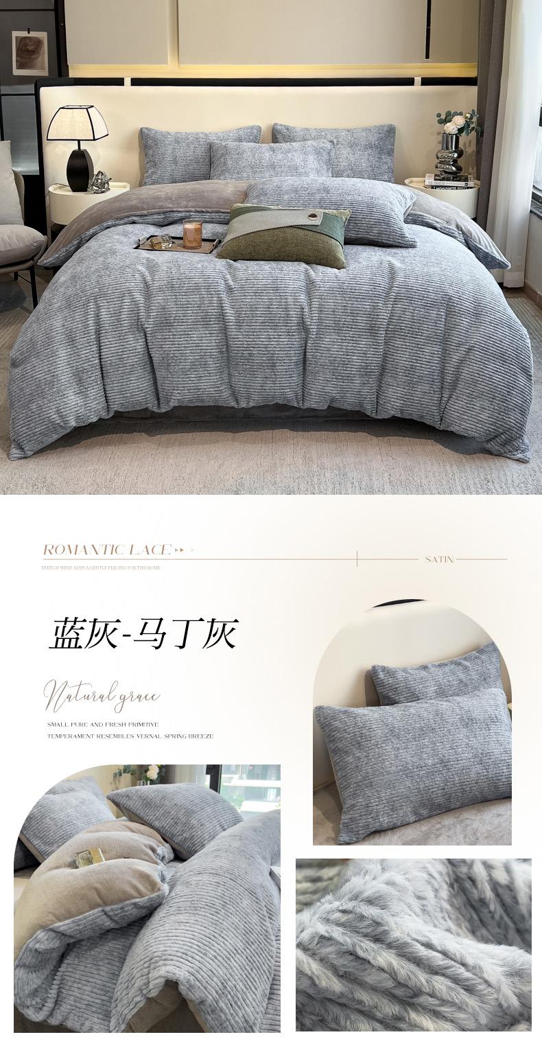 【一套约8.6斤重】秋冬御寒保暖加厚保暖针织兔毛条纹四件套 柔软亲肤不起静电套件