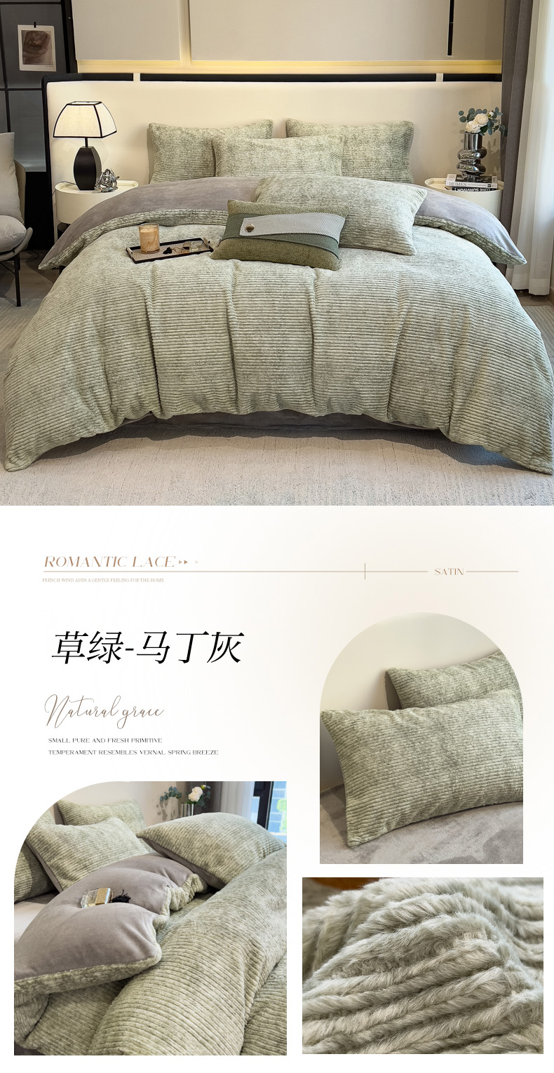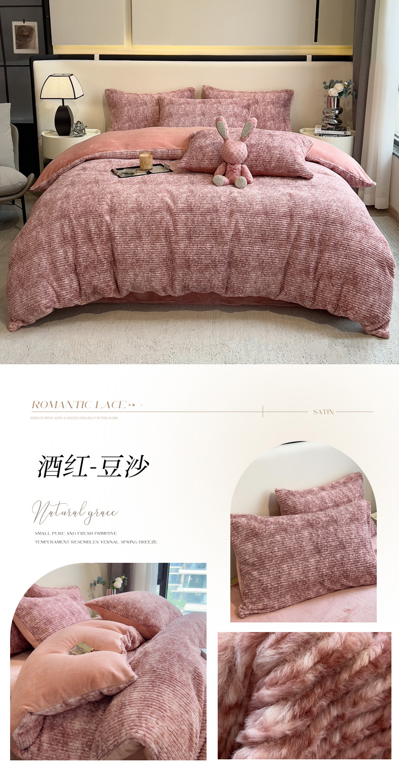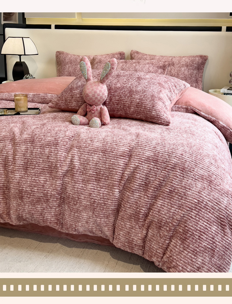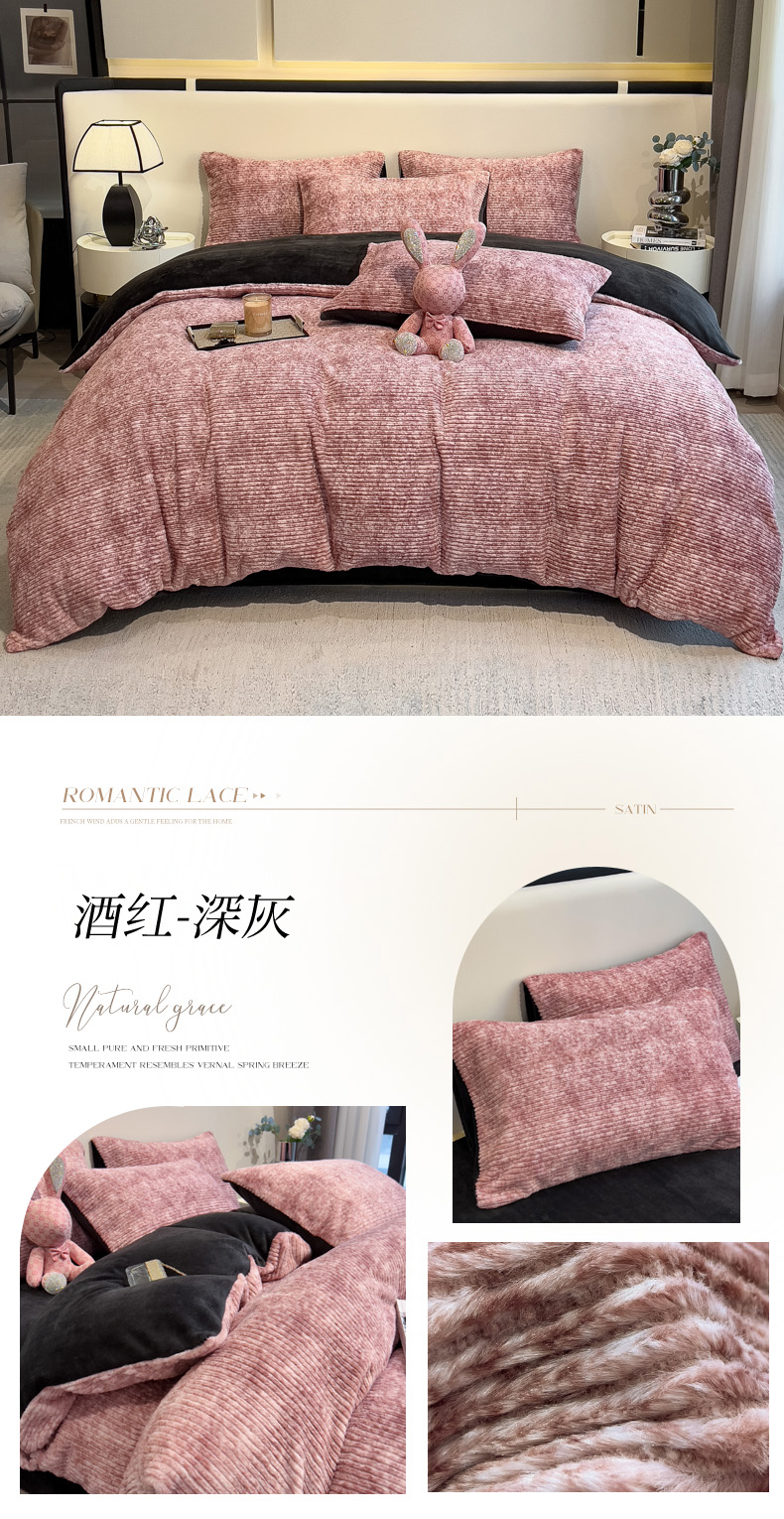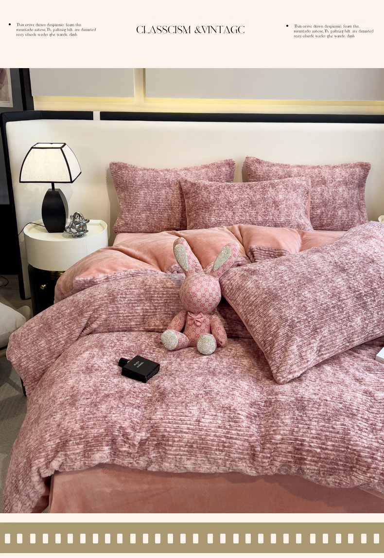 【一套约8.6斤重】秋冬御寒保暖加厚保暖针织兔毛条纹四件套 柔软亲肤不起静电套件