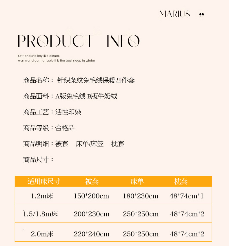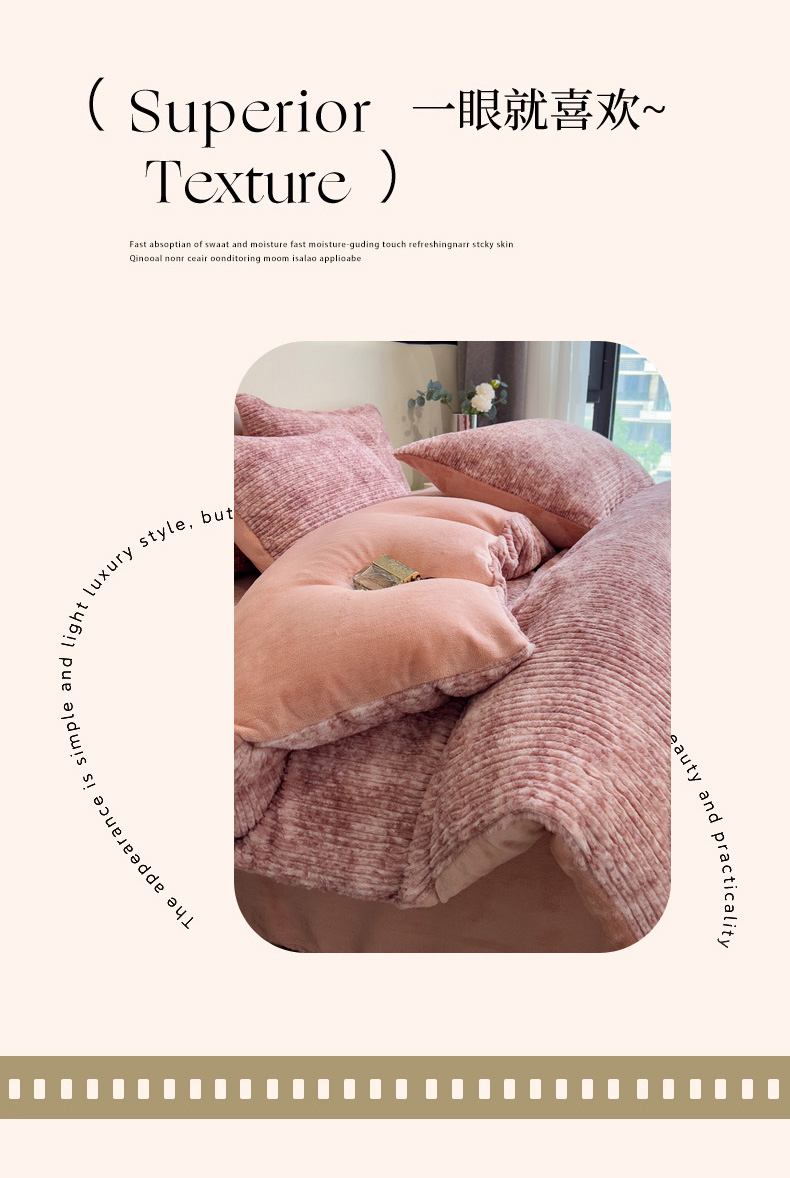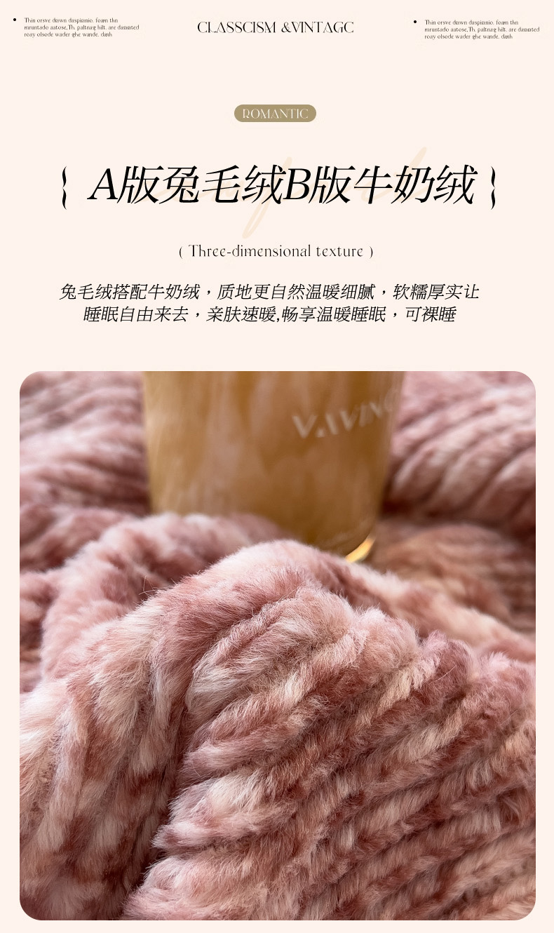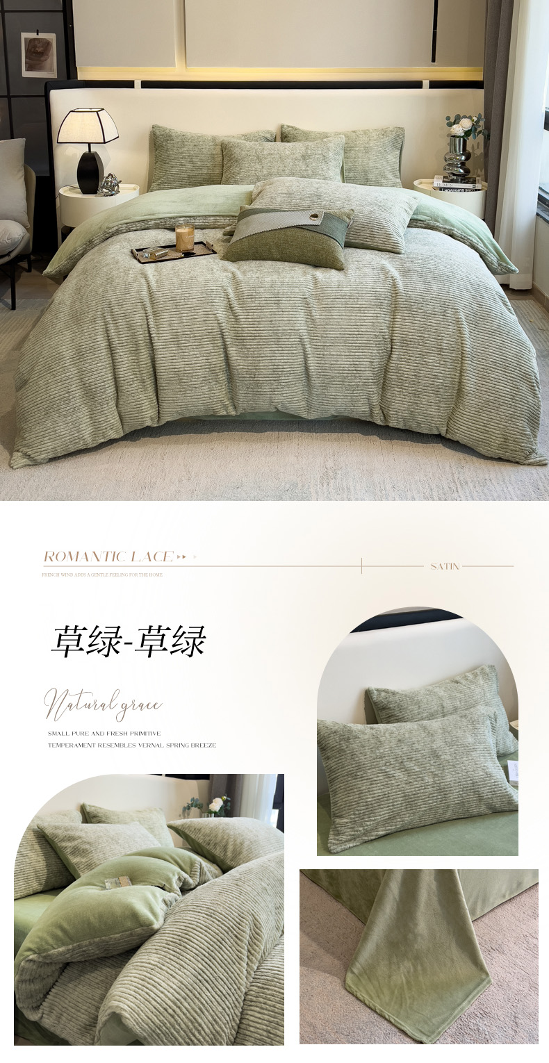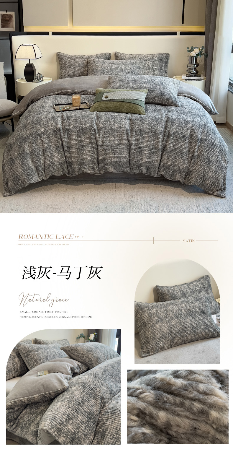 【一套约8.6斤重】秋冬御寒保暖加厚保暖针织兔毛条纹四件套 柔软亲肤不起静电套件