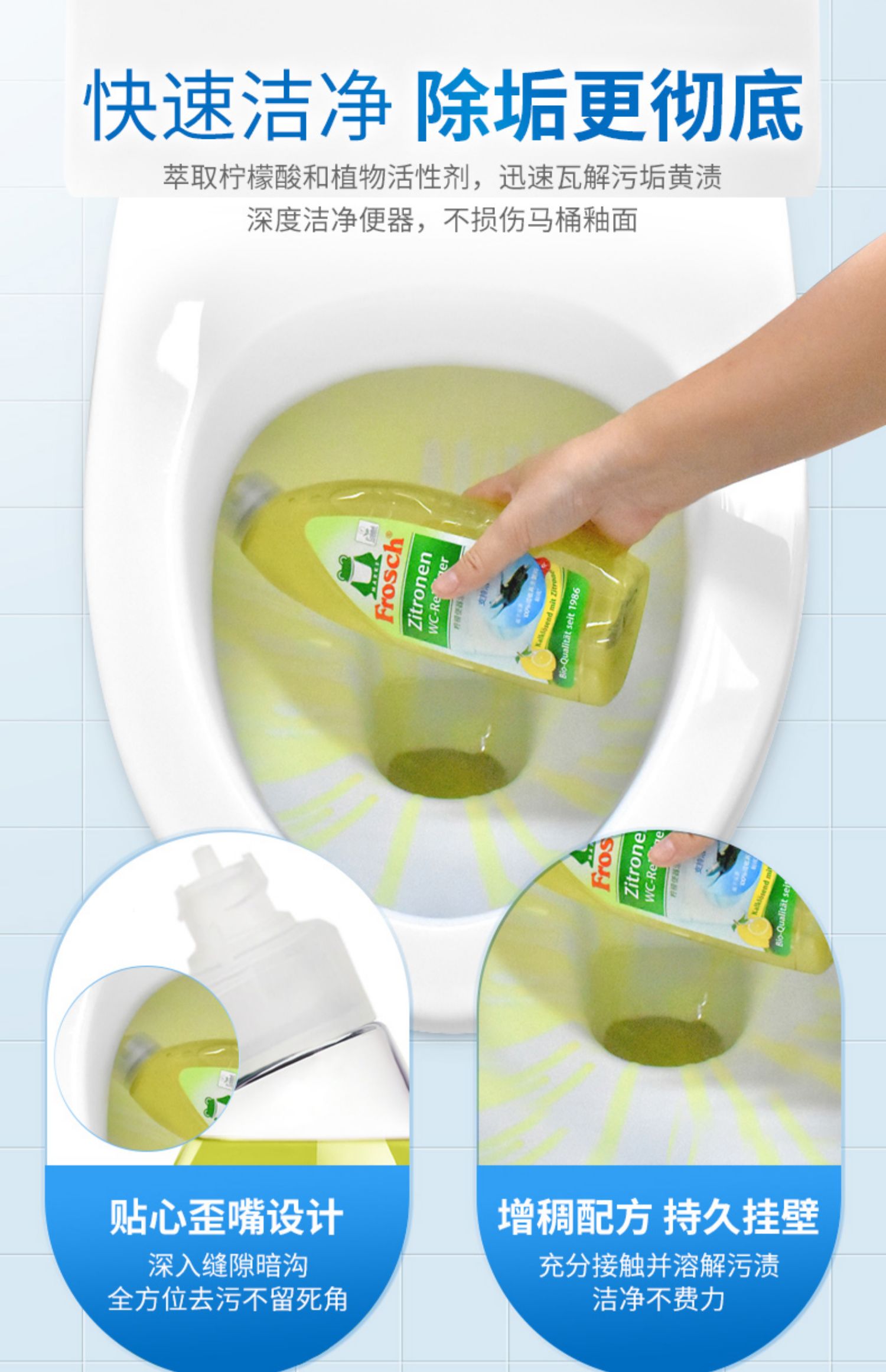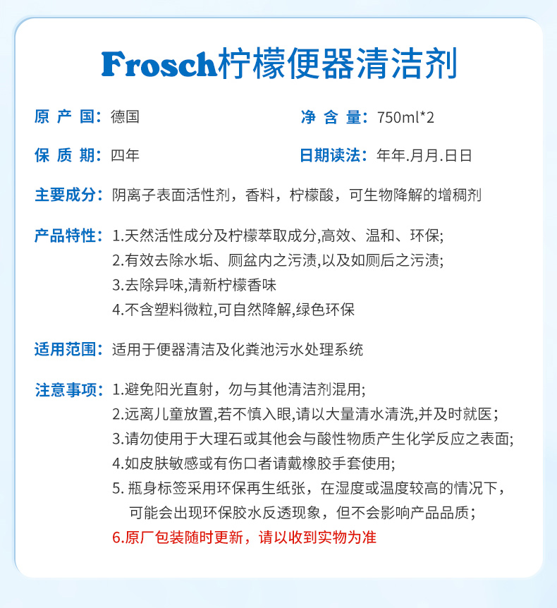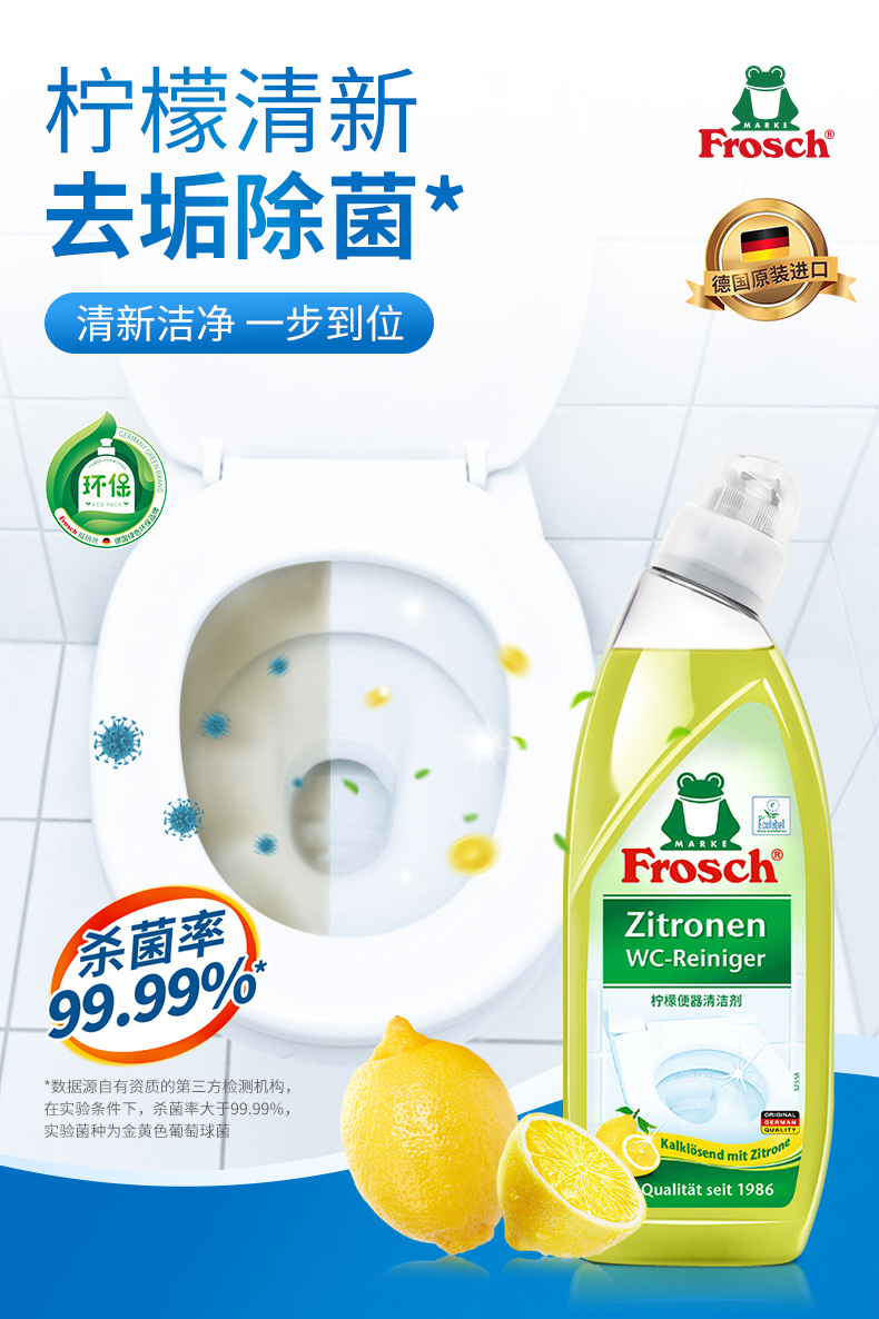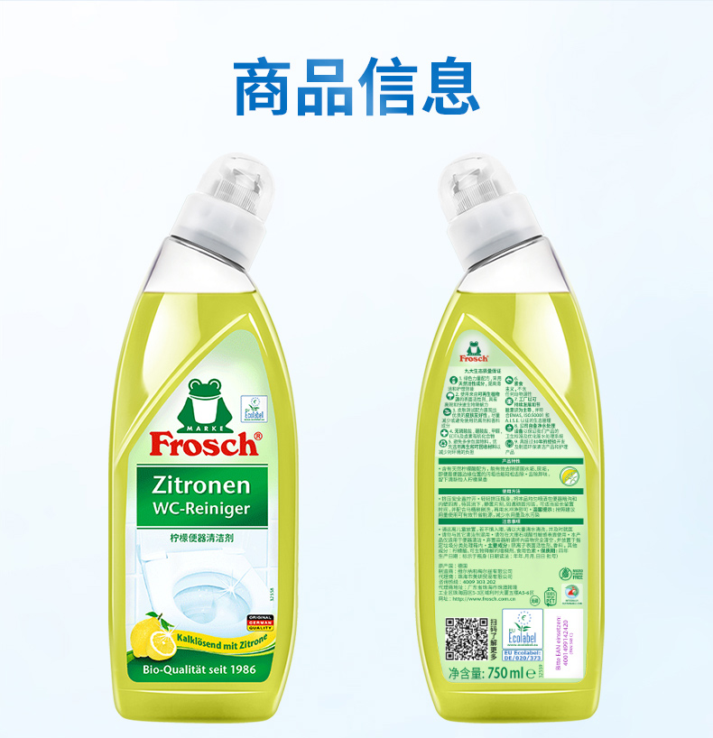 750ml*2瓶/3瓶Frosch 柠檬便器清洁剂【伊藤优选302209】
