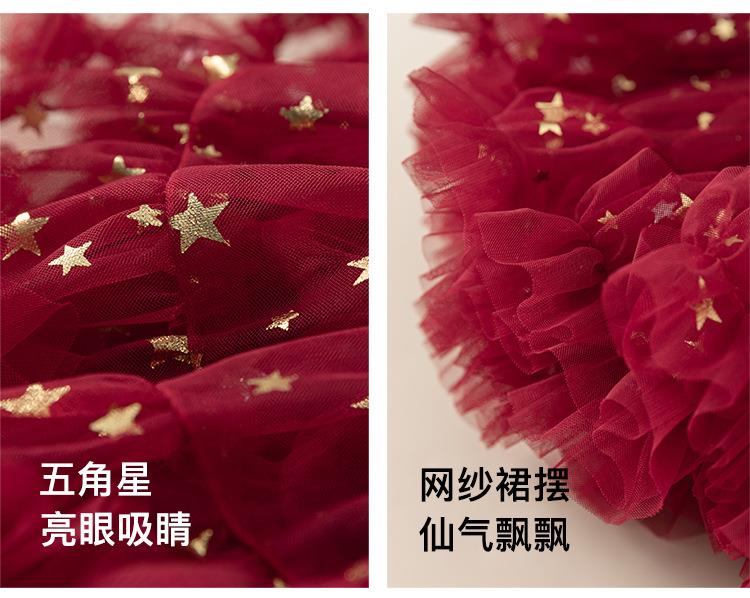 宥宝童装女宝宝周岁蓬蓬裙网纱裙子tutu裙女童红色半身裙拜年服