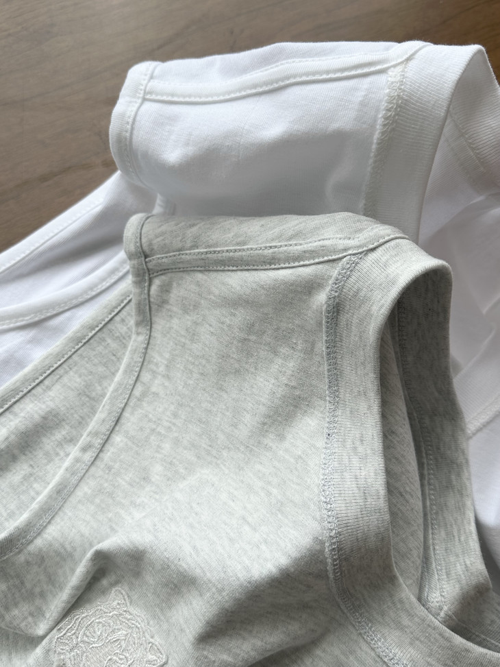 🔺240g重磅精梳棉 让整件背心挺括有型不易皱 100%棉柔软亲肤 🔺领口、肩口采用二本针🪡缝制锁边加固 舒适耐洗、耐穿,百洗不变形