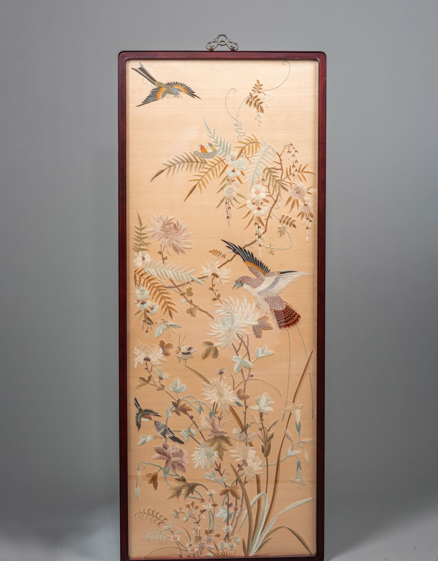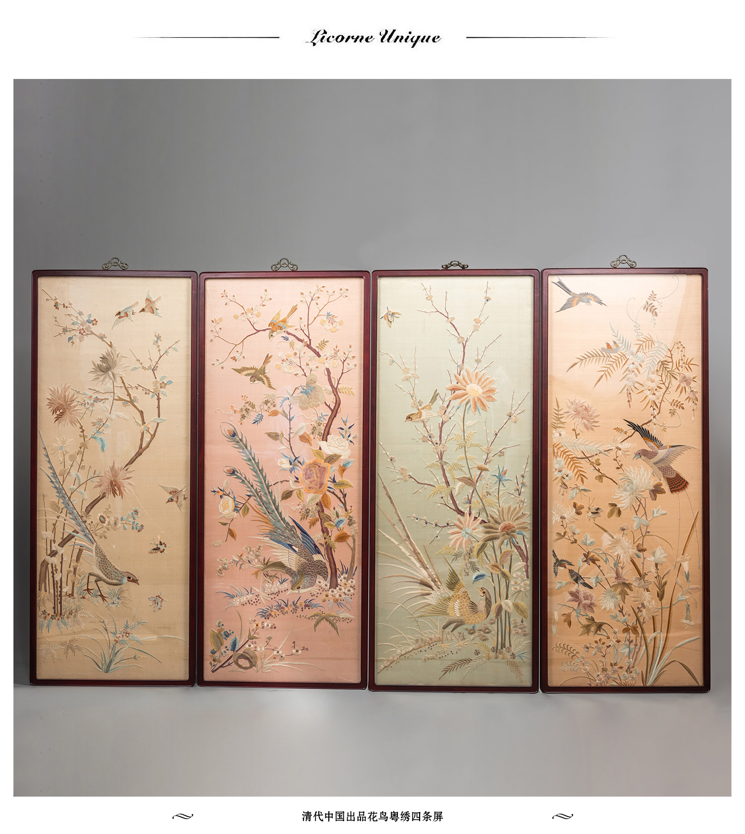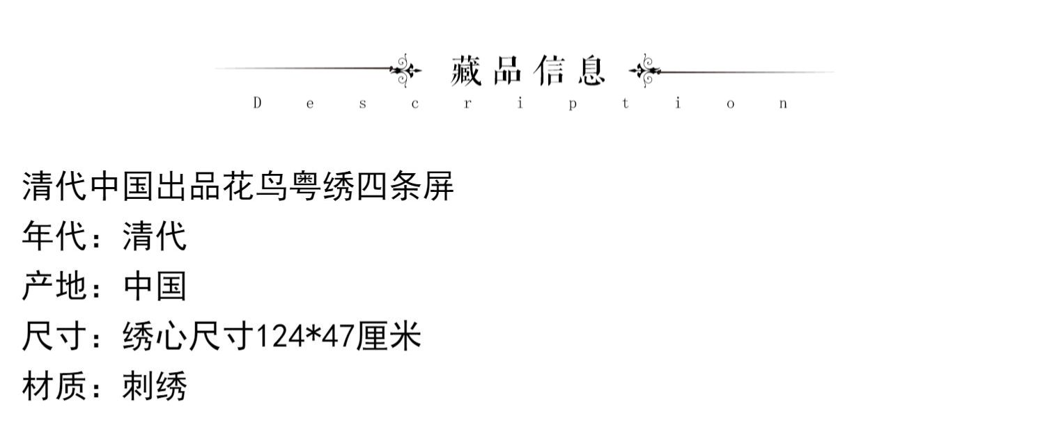 独角鹿西洋古董清代中国出品花鸟粤绣四条屏插屏屏风