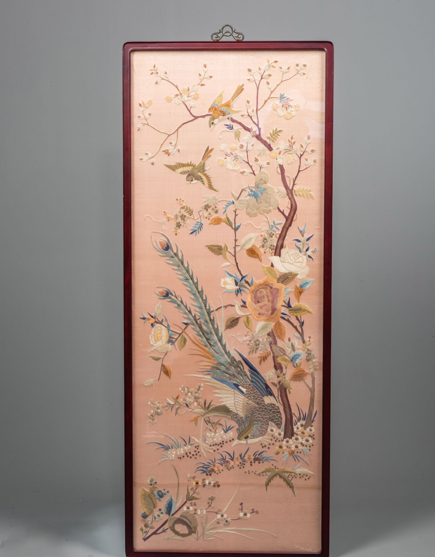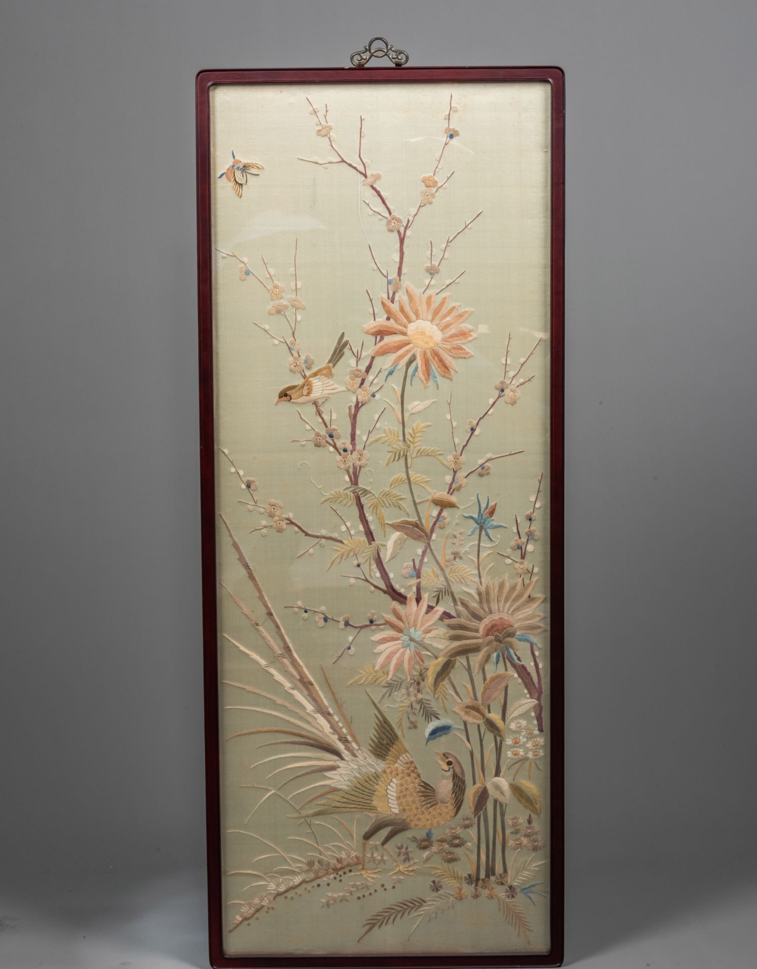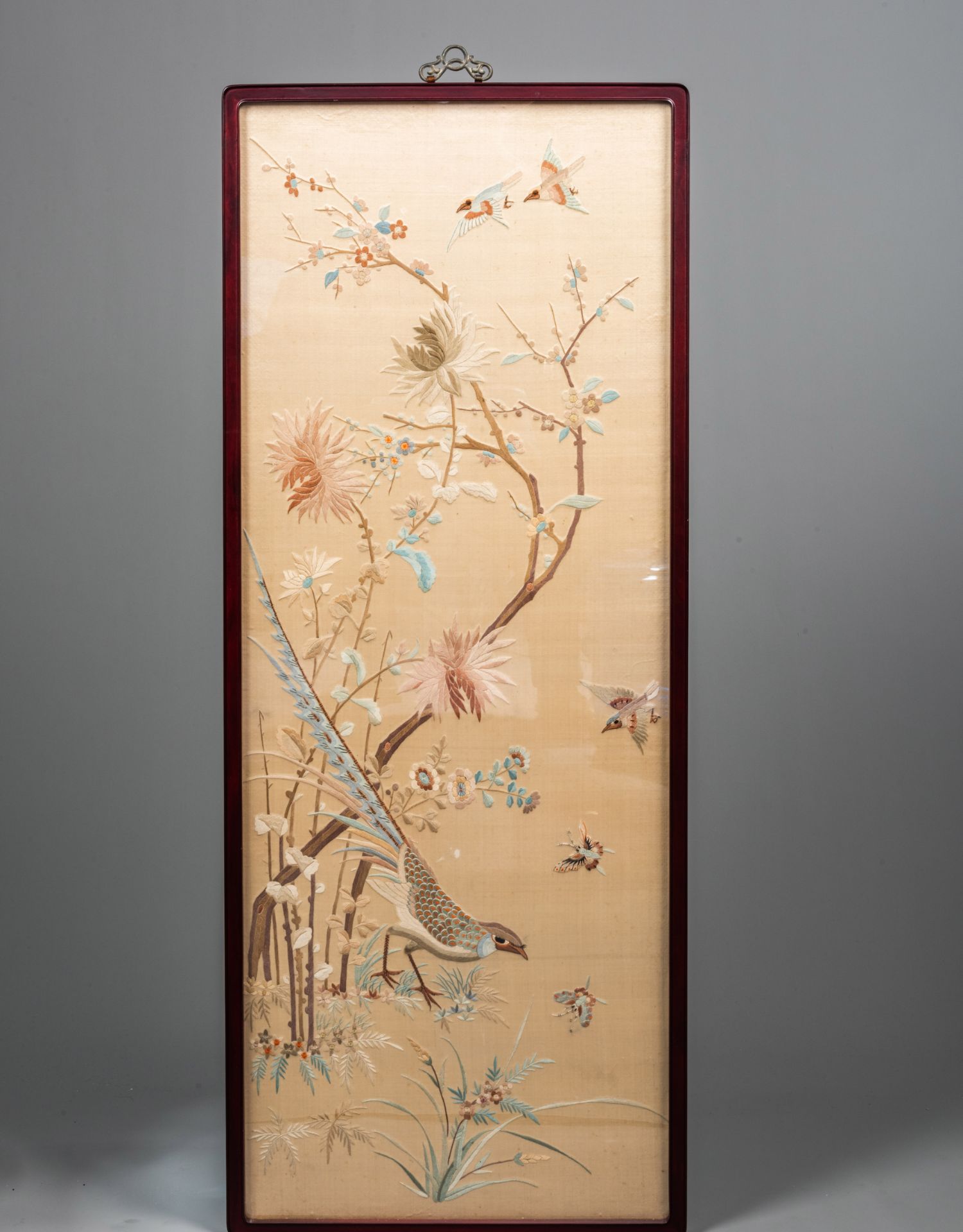 独角鹿西洋古董清代中国出品花鸟粤绣四条屏插屏屏风