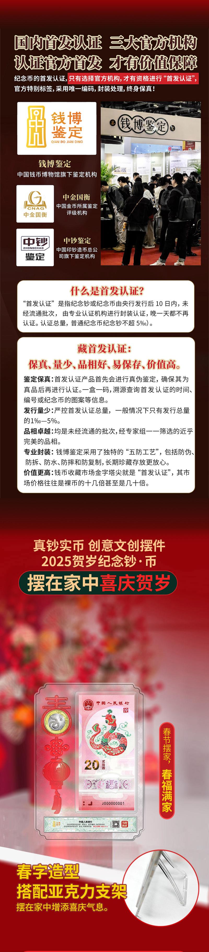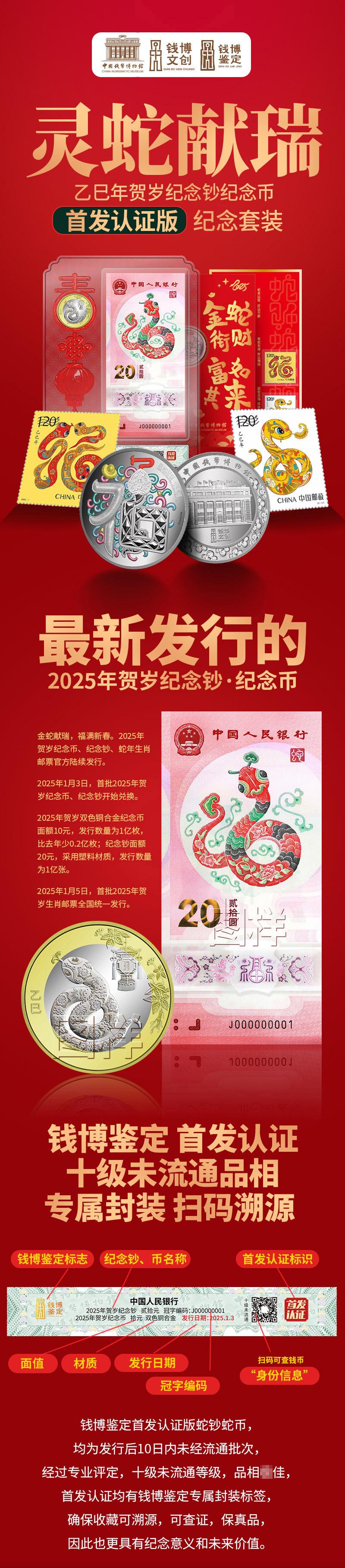 中国钱币博物馆监制2025年蛇钞十级未流通满分首发认证套装