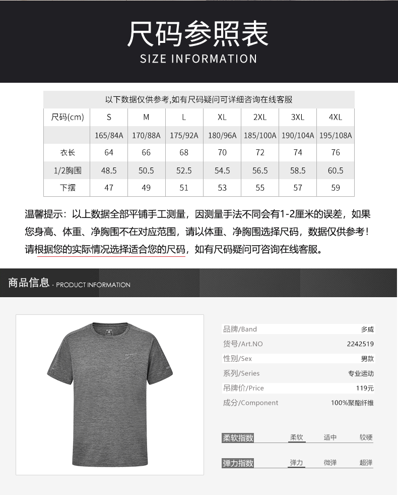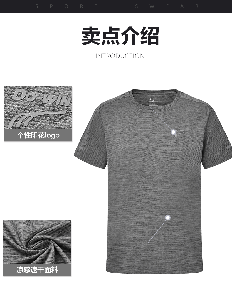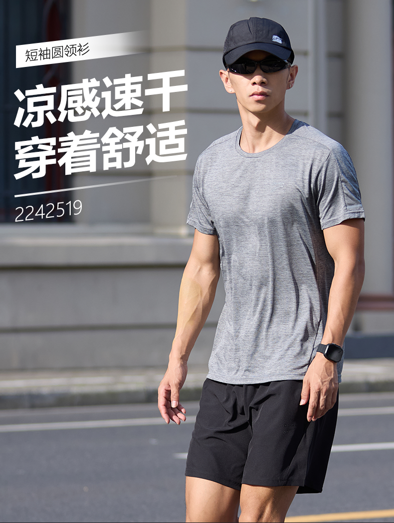 多威圆领衫男凉感速干短袖弹力柔软T恤2242519