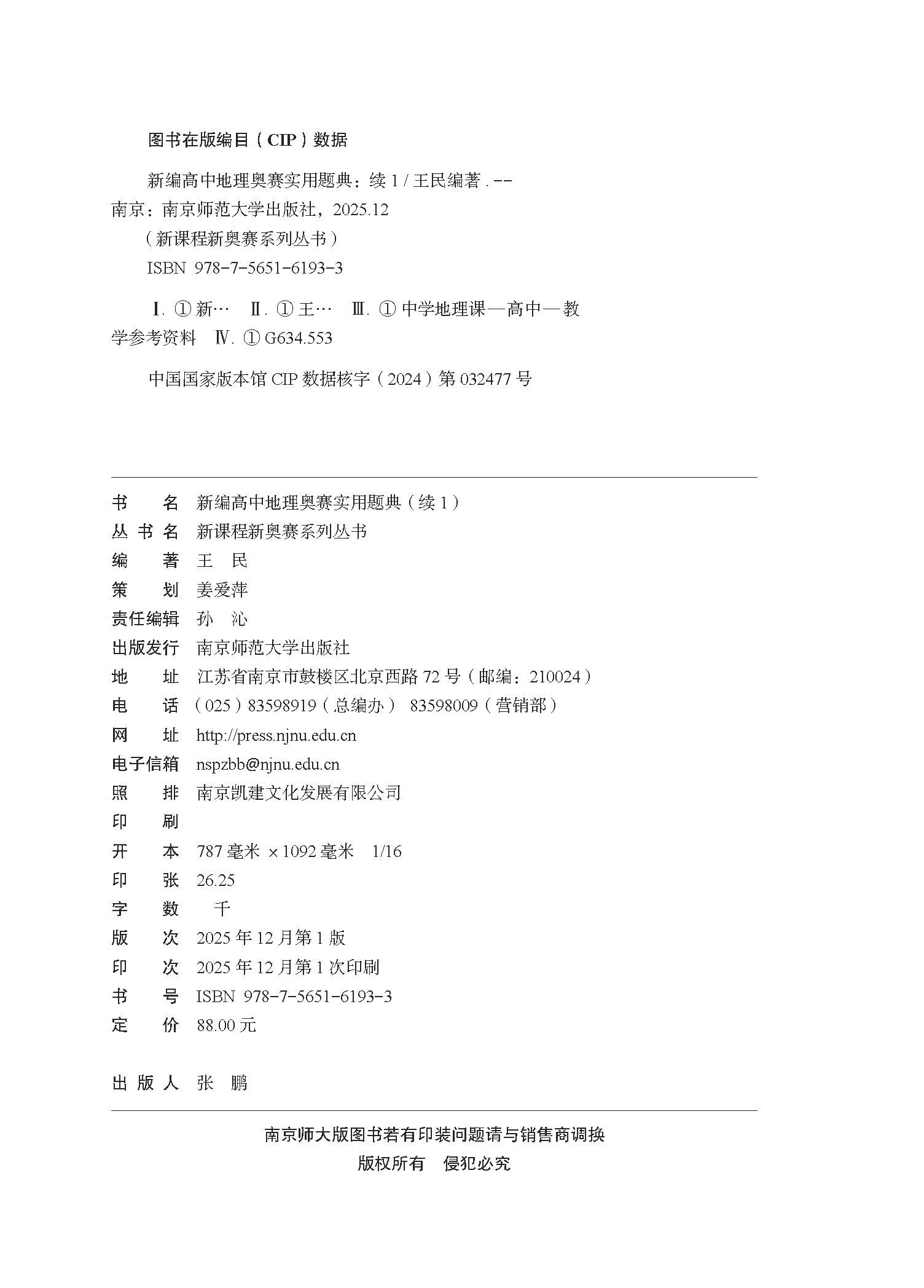 新编高中地理奥赛实用题典:续1 王民 编著 南京师范大学出版社 正版书籍