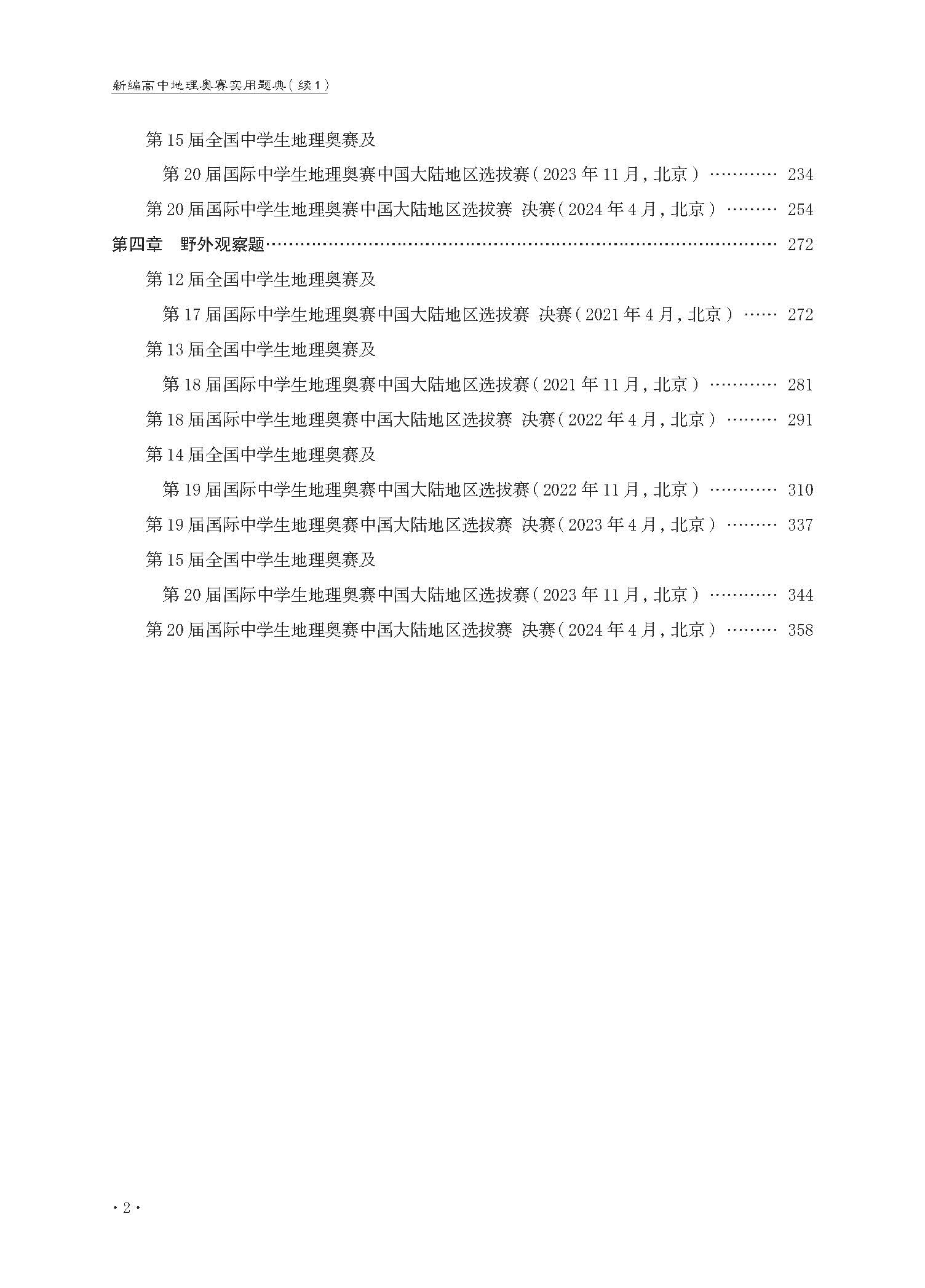 《新编高中地理奥赛实用题典(续1)》内容包括第12~15届全国中学生地理奥赛与附加赛真题,第17~20届国际中学生地理奥赛中国大陆地区选拔赛的真题,题型有多媒体测试题(景观题)、笔答题(综合题)和野外观察题。内容十分丰富而又庞杂,呈现形式多样。