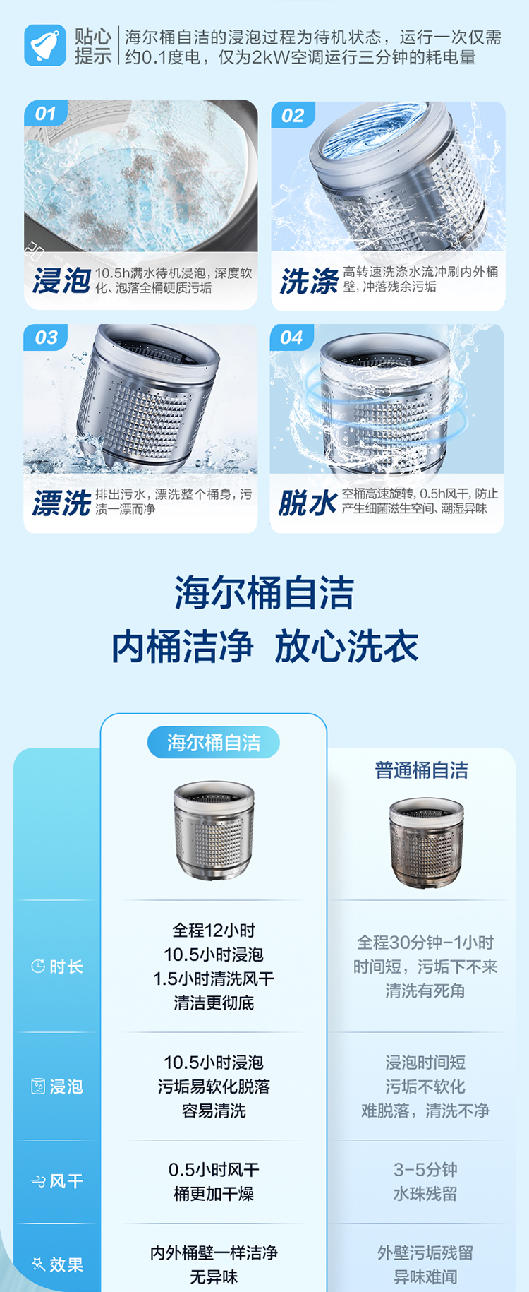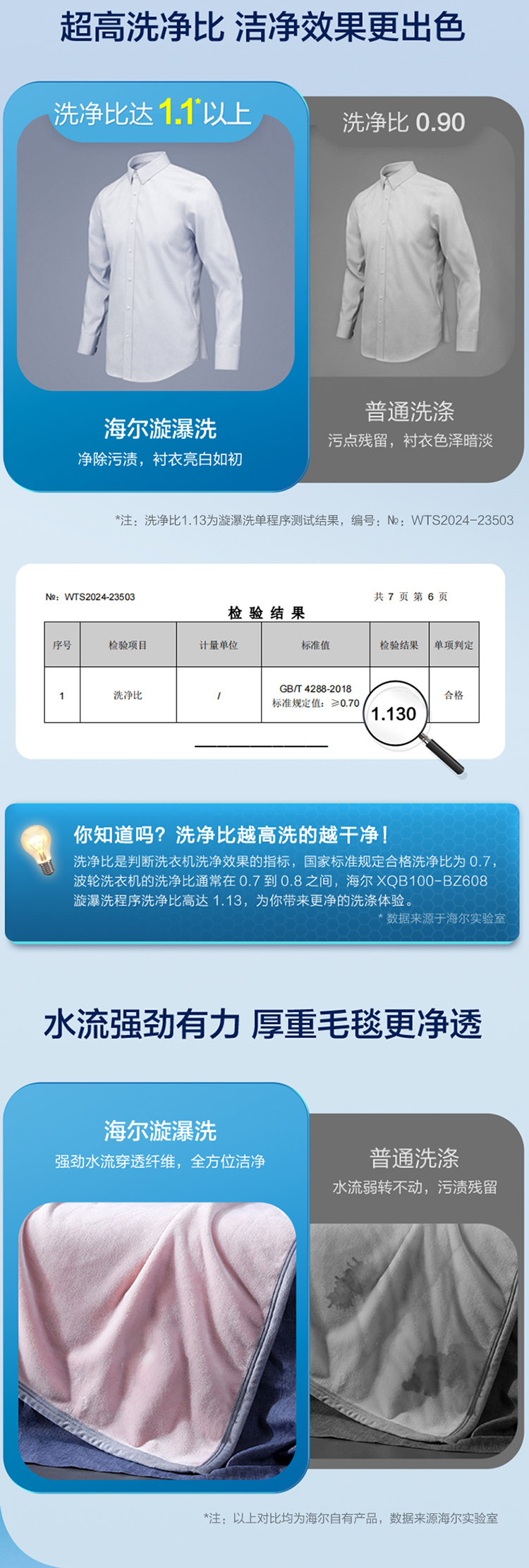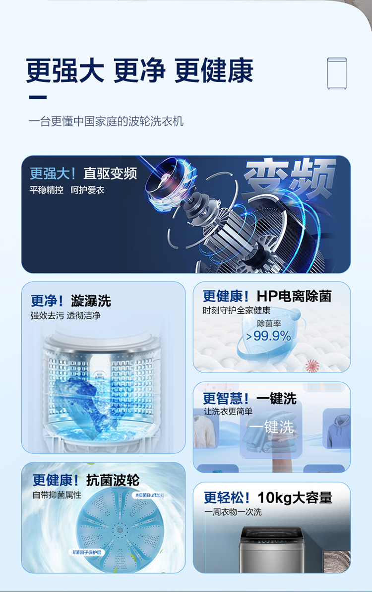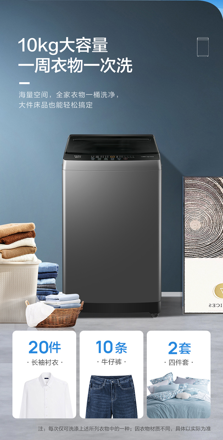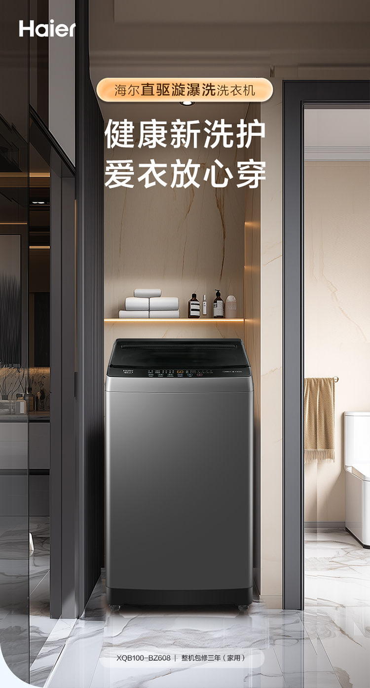 海尔(252218)波轮洗衣机XQB100-BZ608直驱 HP 漩瀑洗 自编程