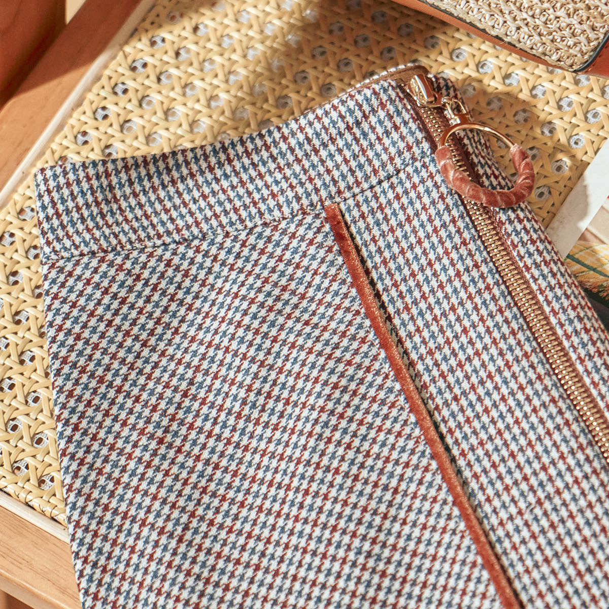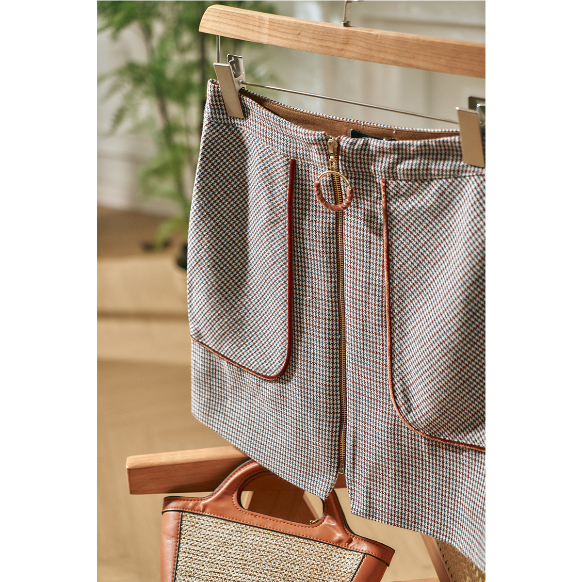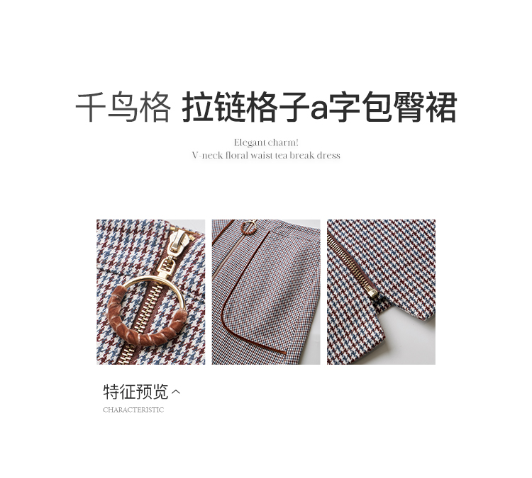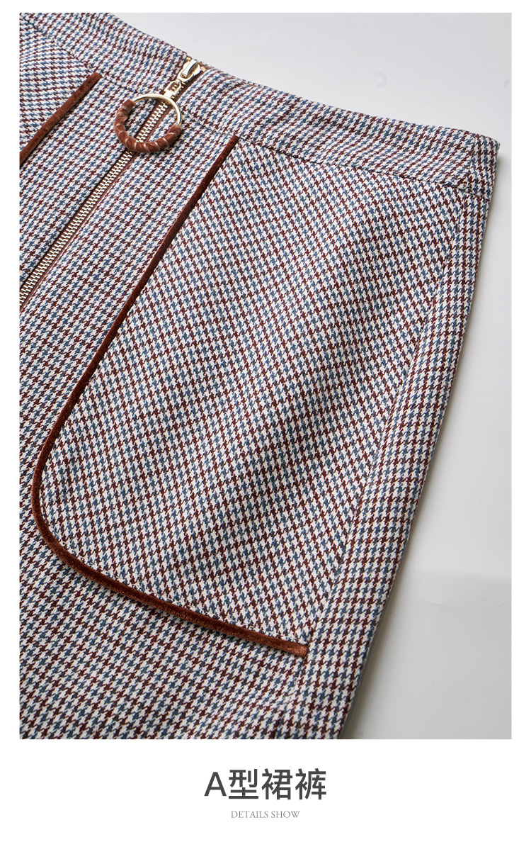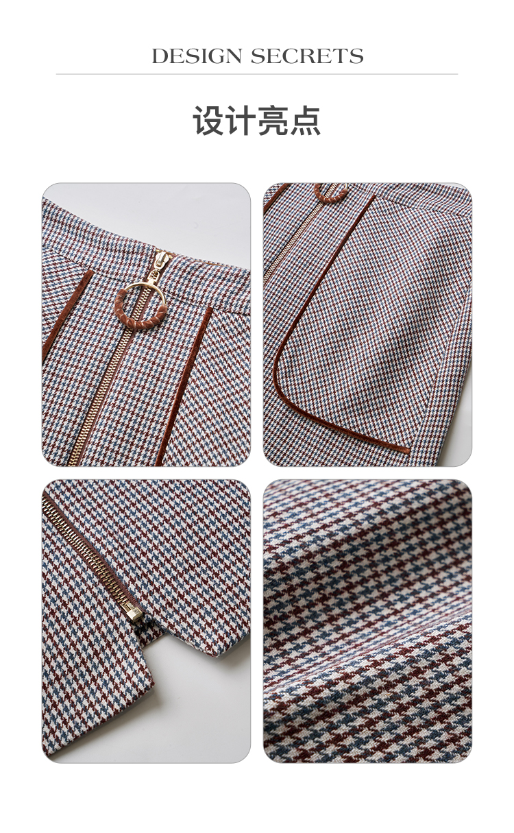 欧芮儿 春装女2019新款女装预售 千鸟格格子半身裙女裙子