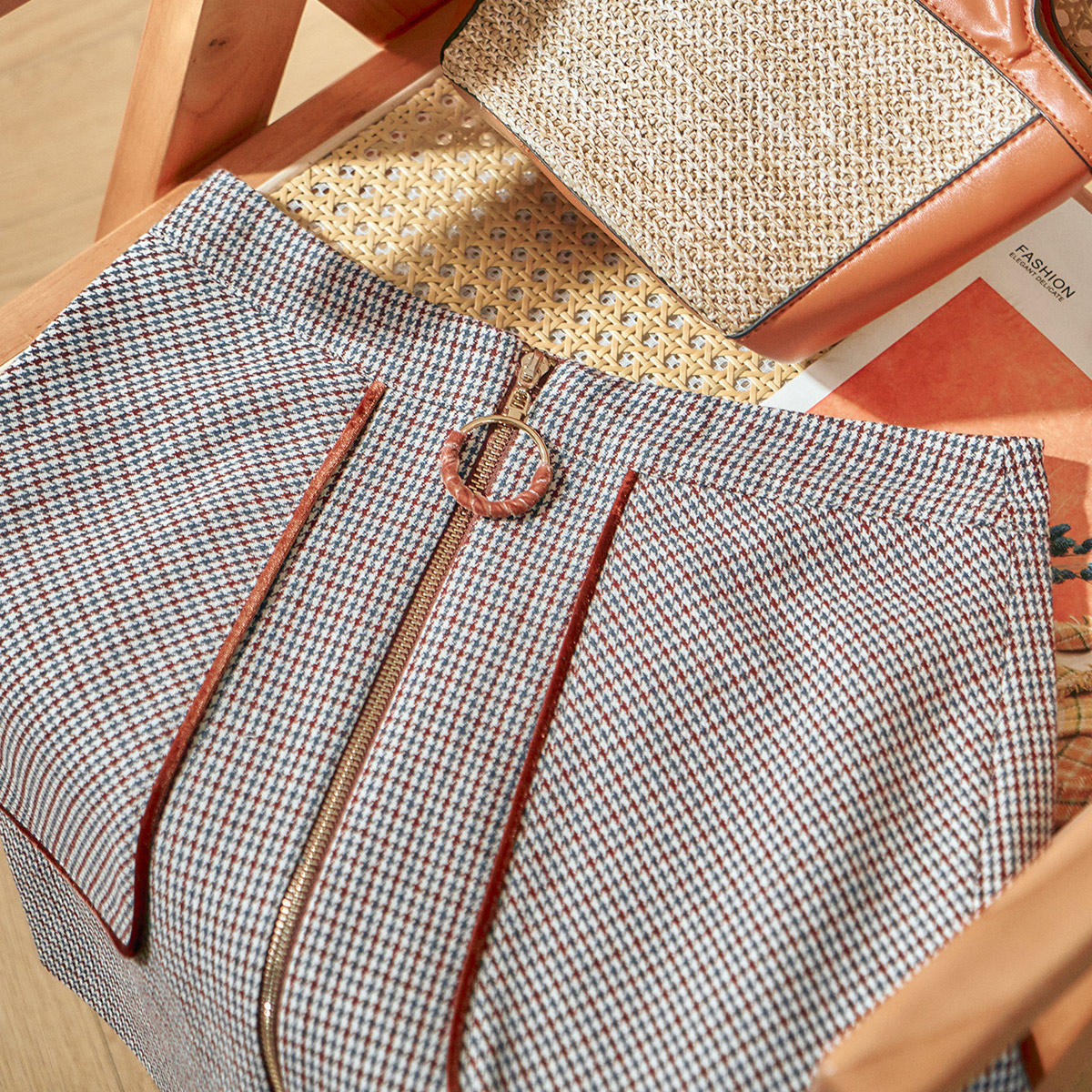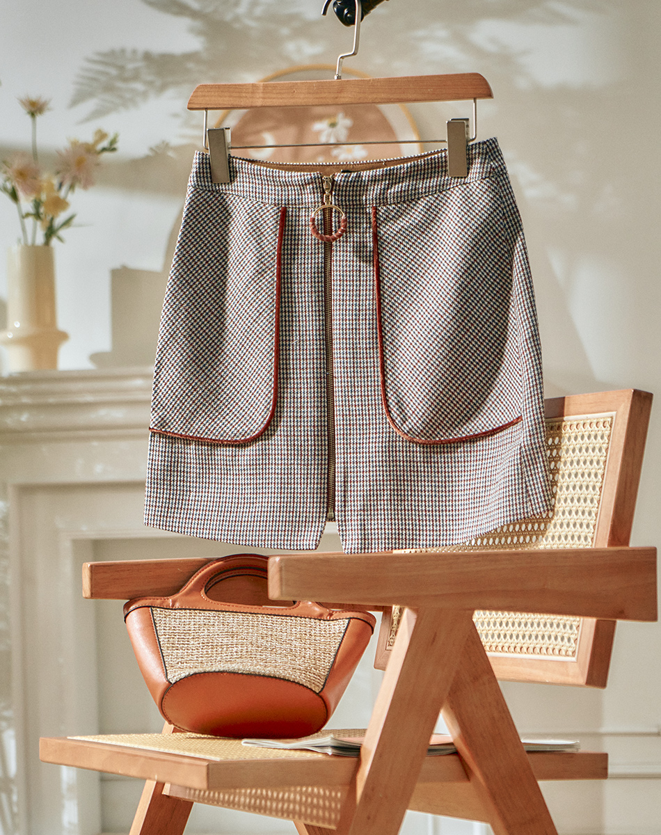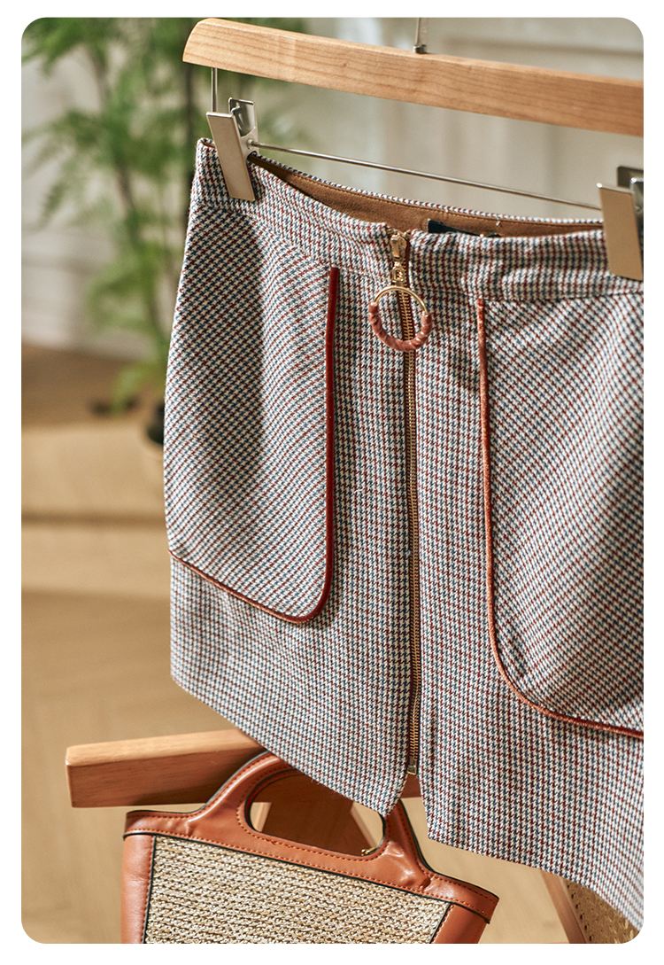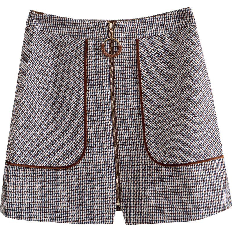 欧芮儿 春装女2019新款女装预售 千鸟格格子半身裙女裙子