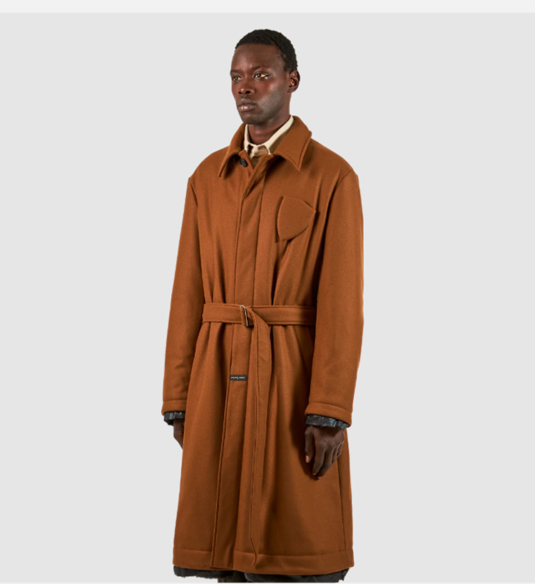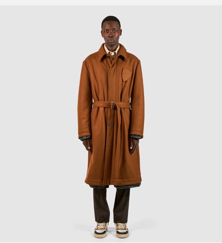 PHILIPPE MODEL 男士盾牌徽标贴片混纺羊毛外套大衣 棕色 JATU MW22 02