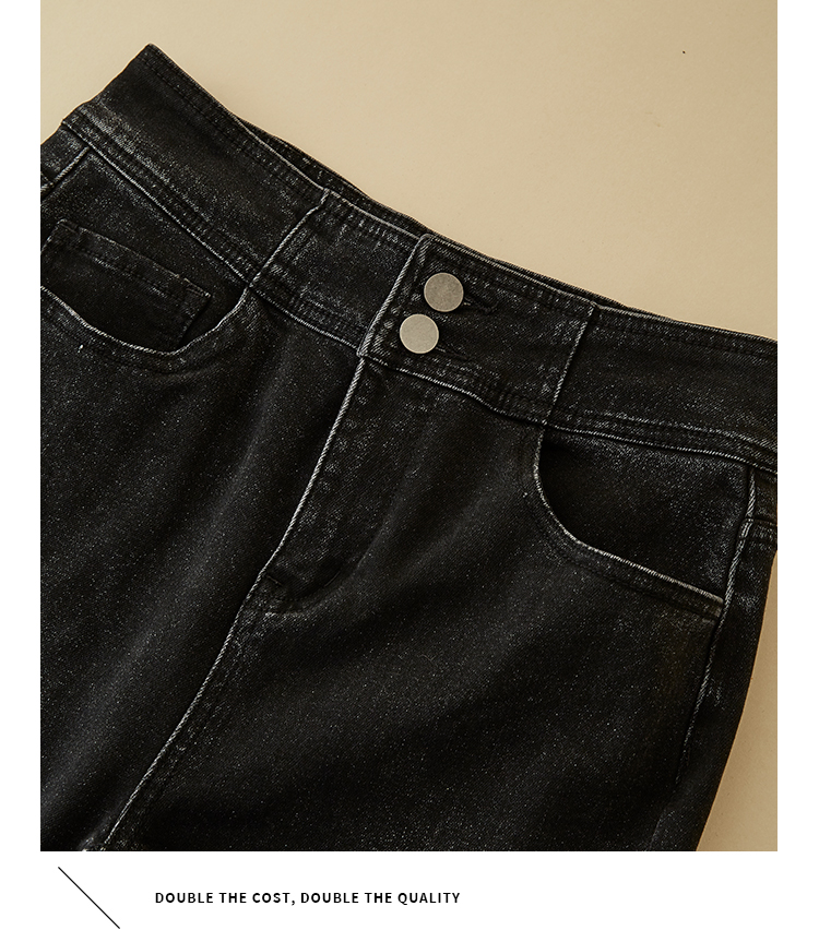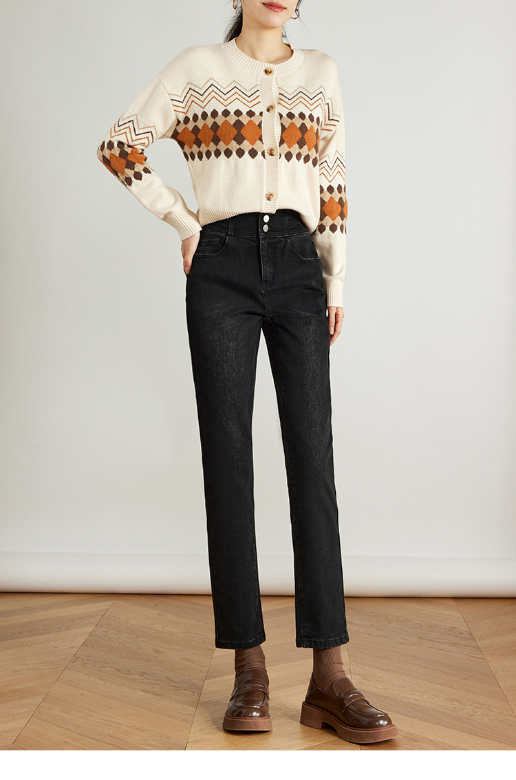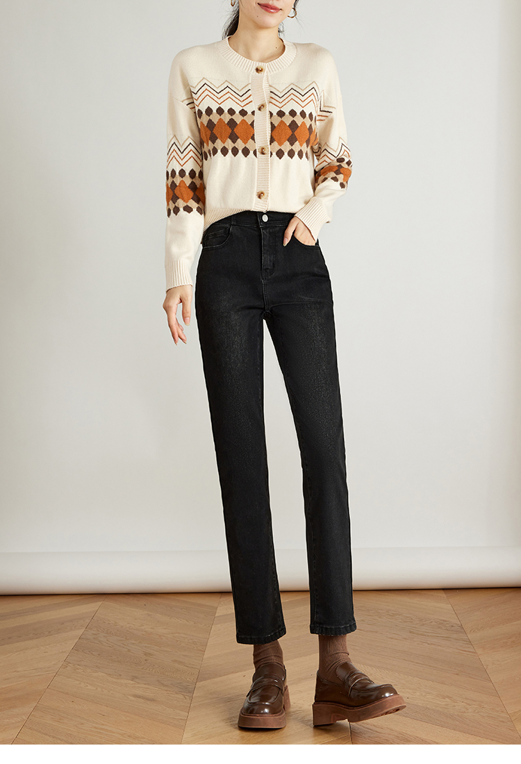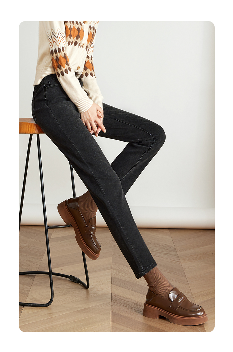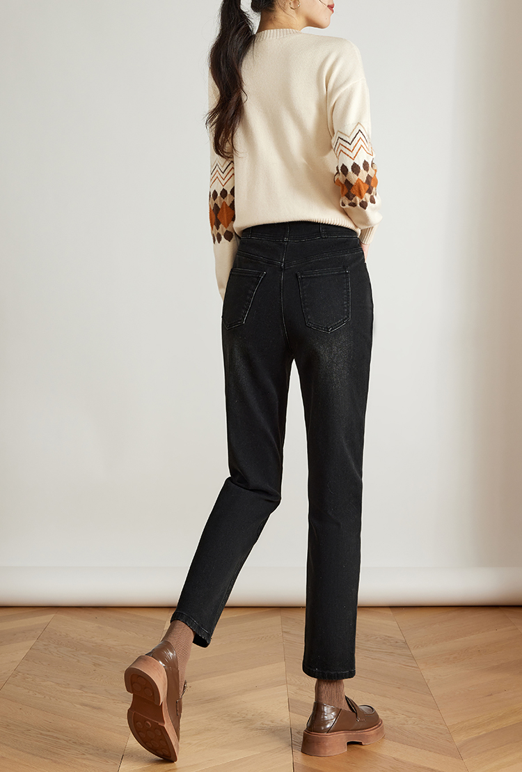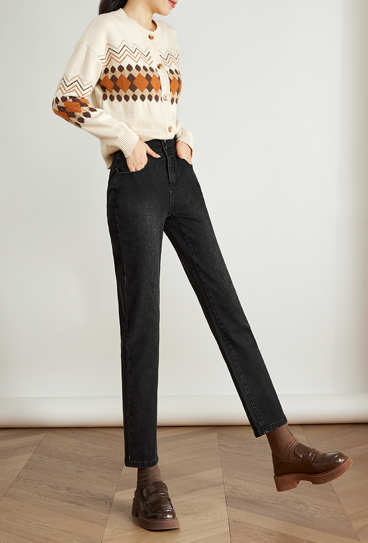 【专属特价】熙世界黑色抓毛牛仔裤女薄绒2025秋冬季新款高腰小个子直筒烟管裤