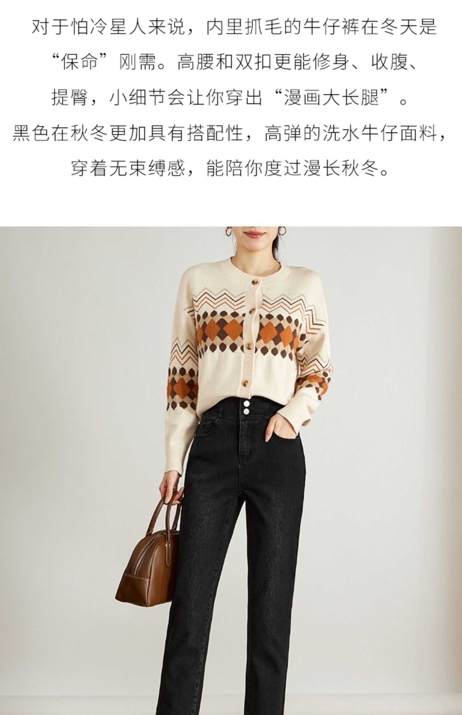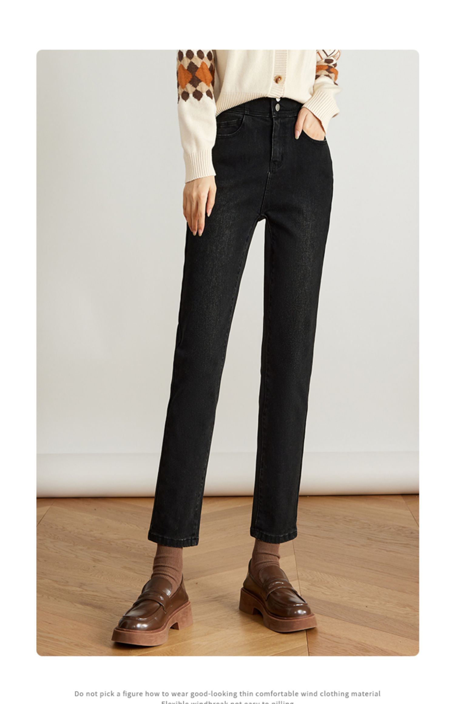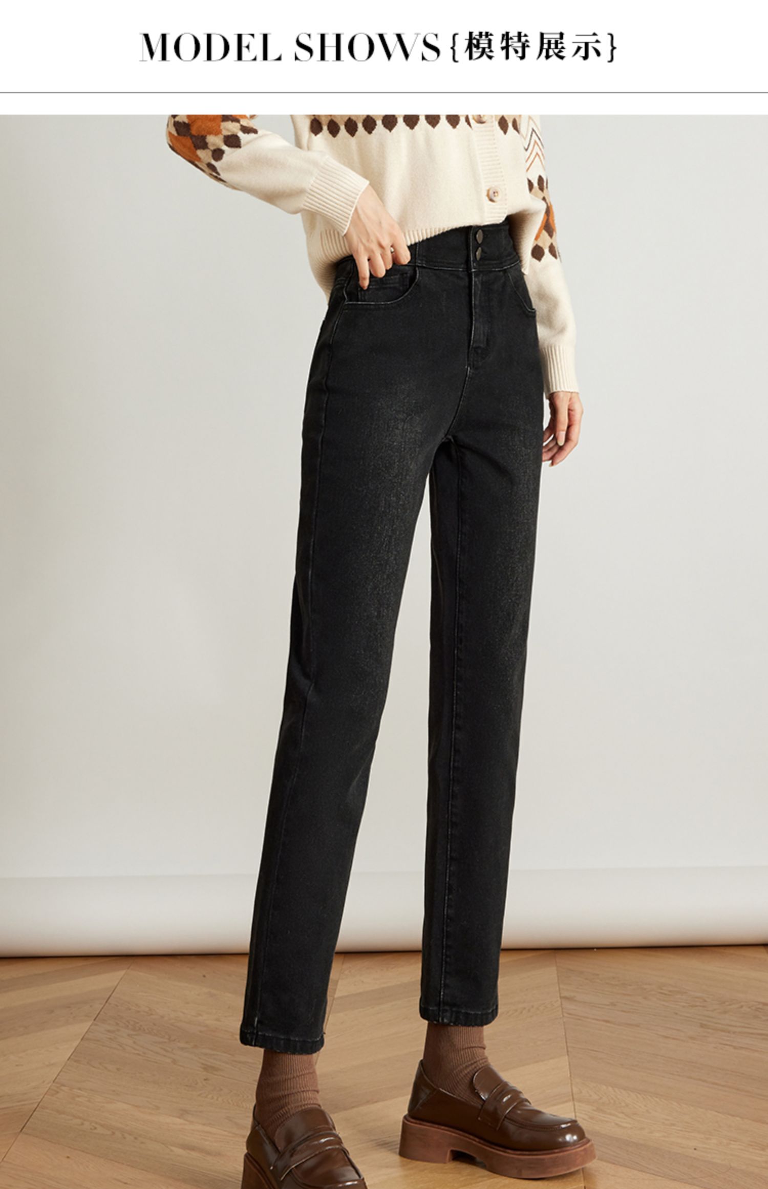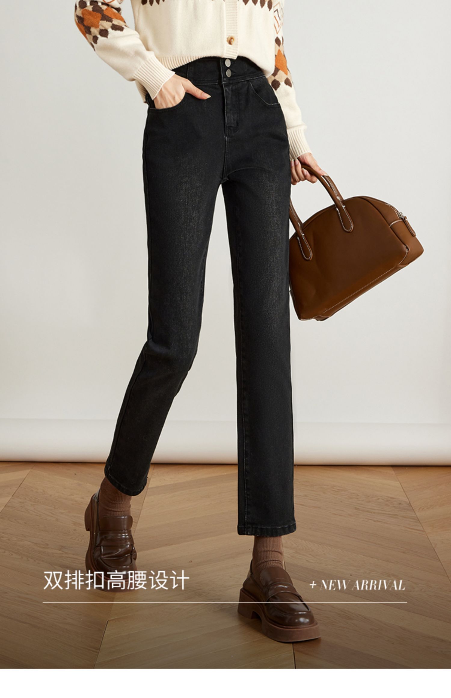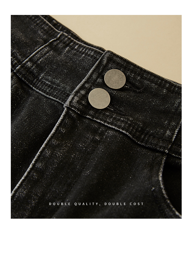 【专属特价】熙世界黑色抓毛牛仔裤女薄绒2025秋冬季新款高腰小个子直筒烟管裤
