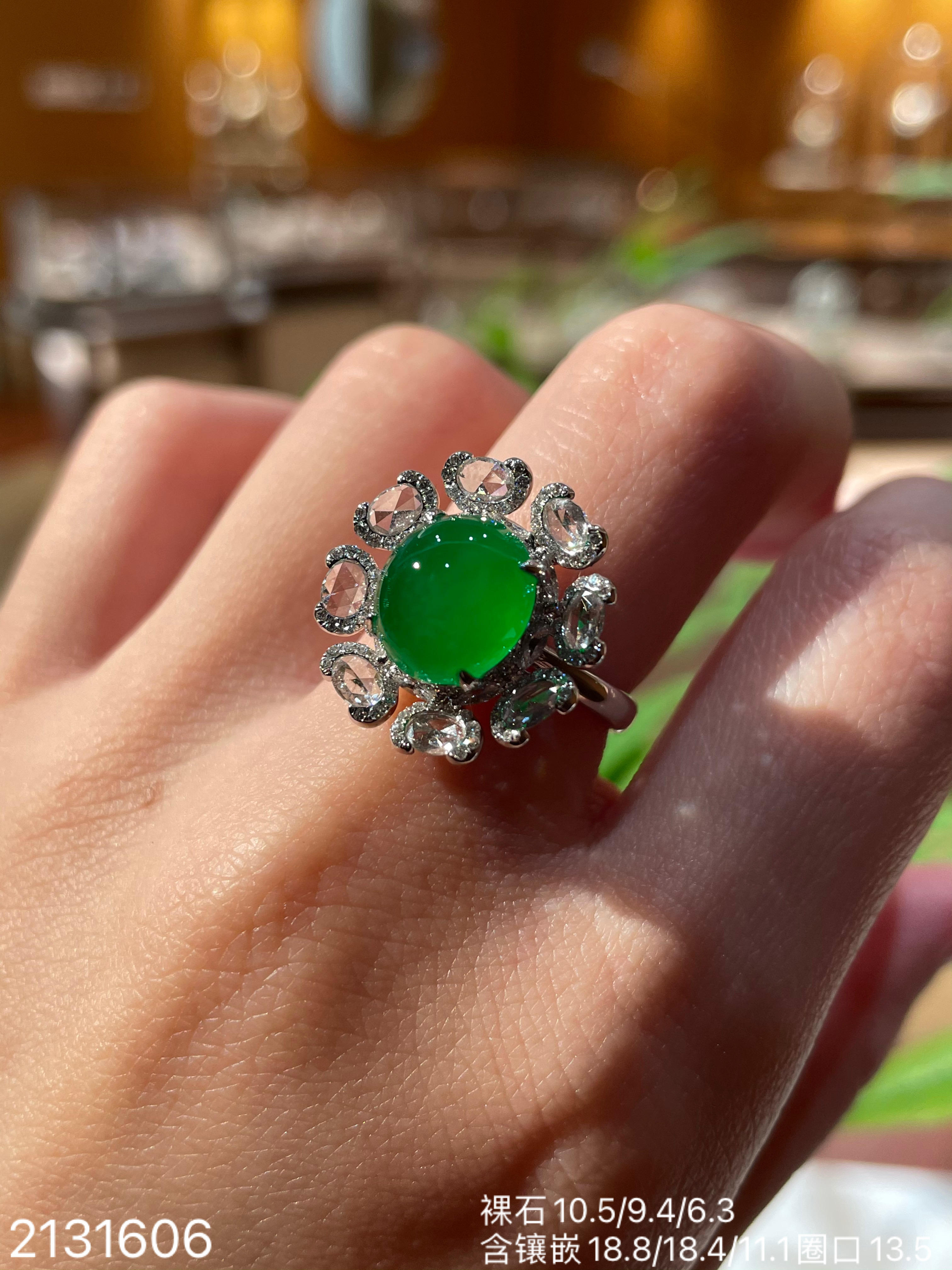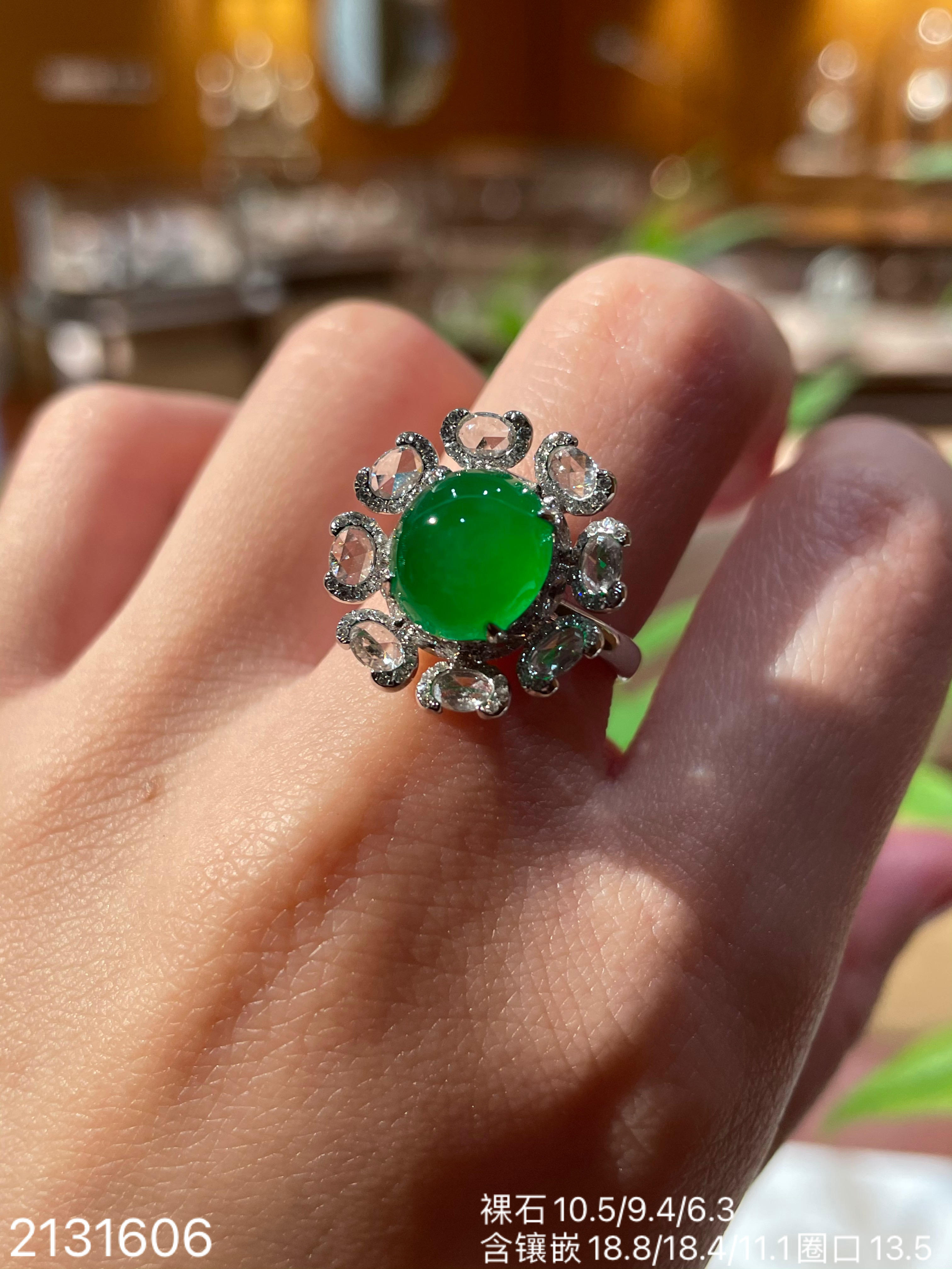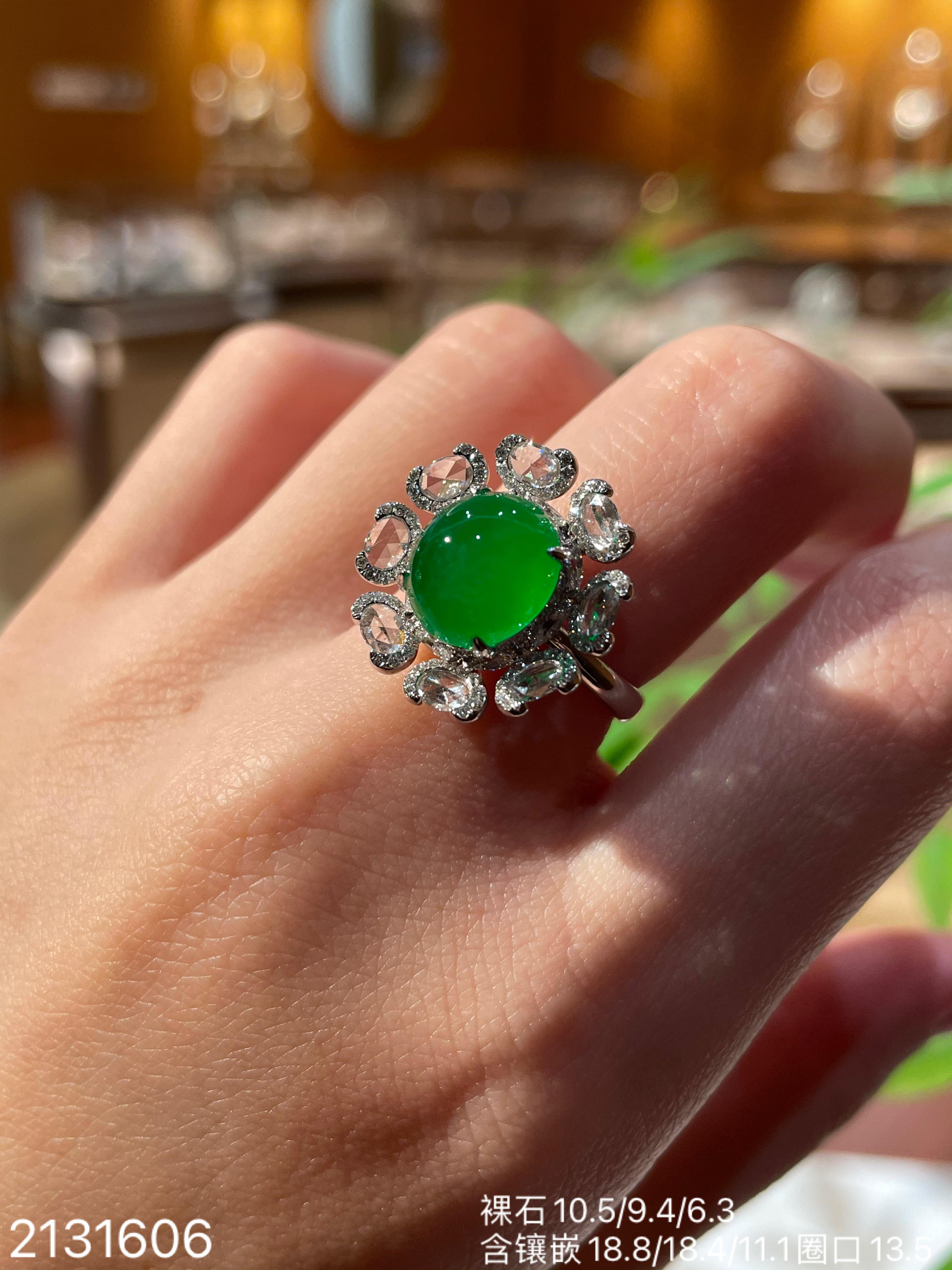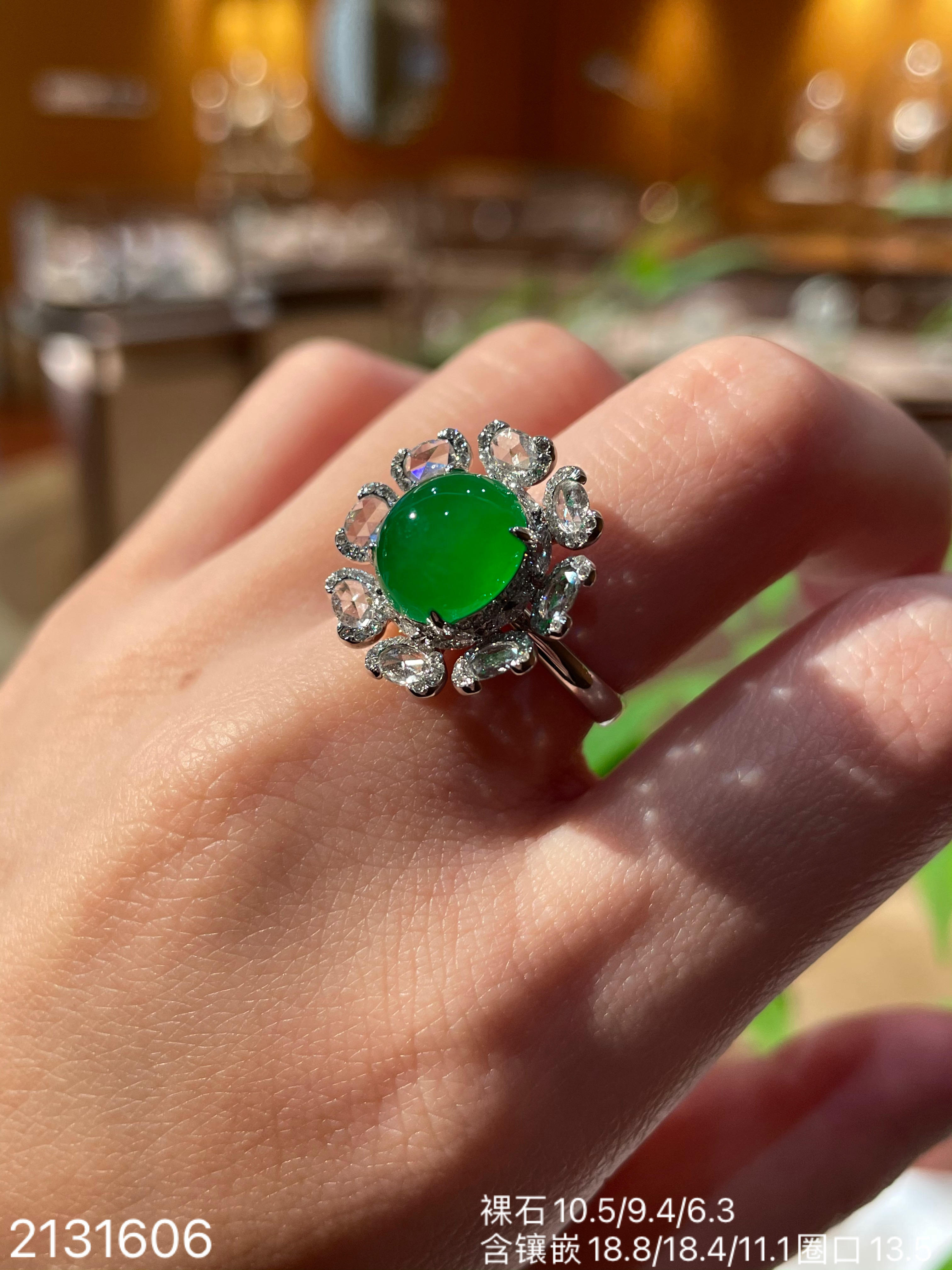 冰艳绿蛋面戒指【2131606】具体价格微信咨询
