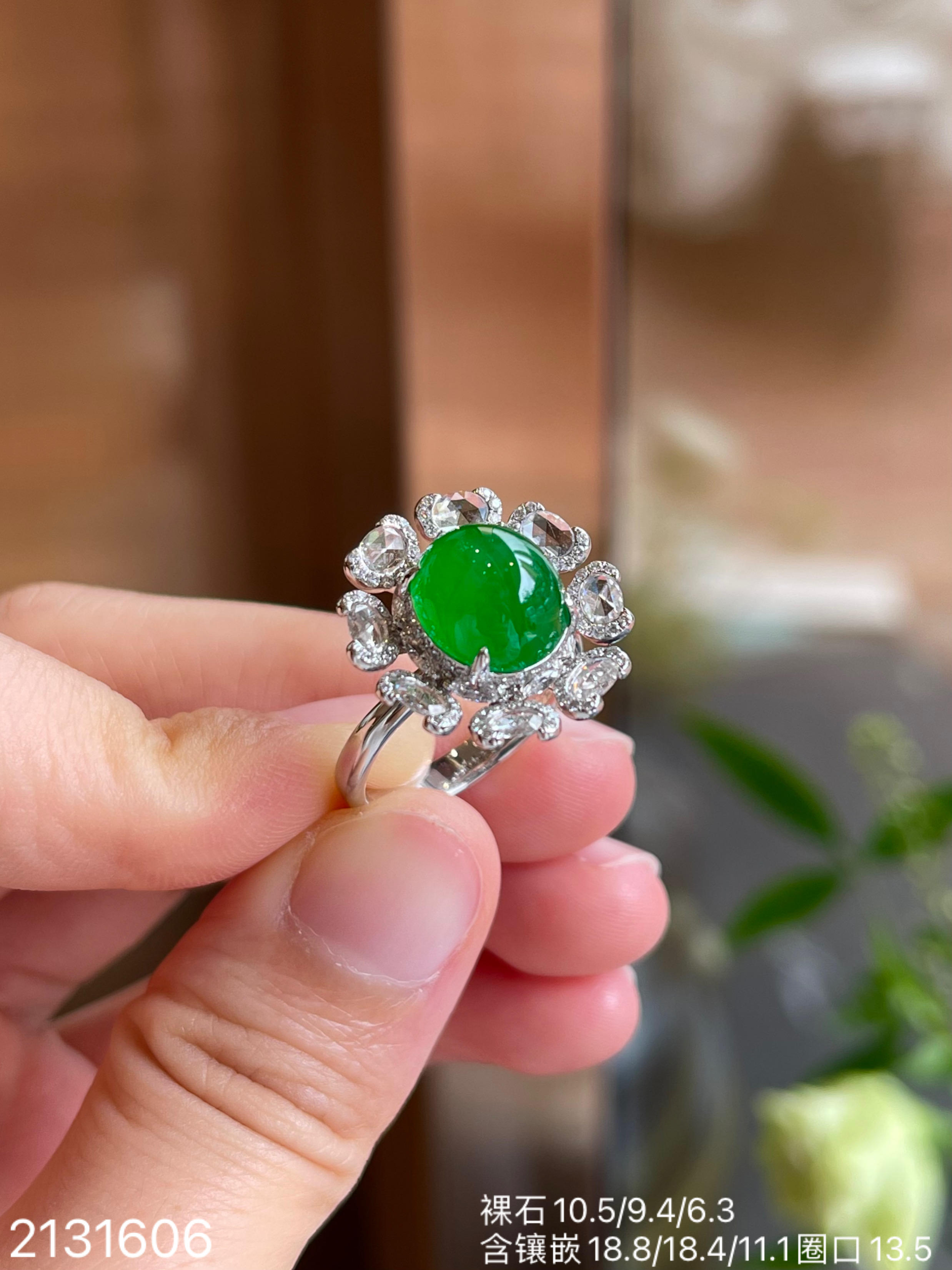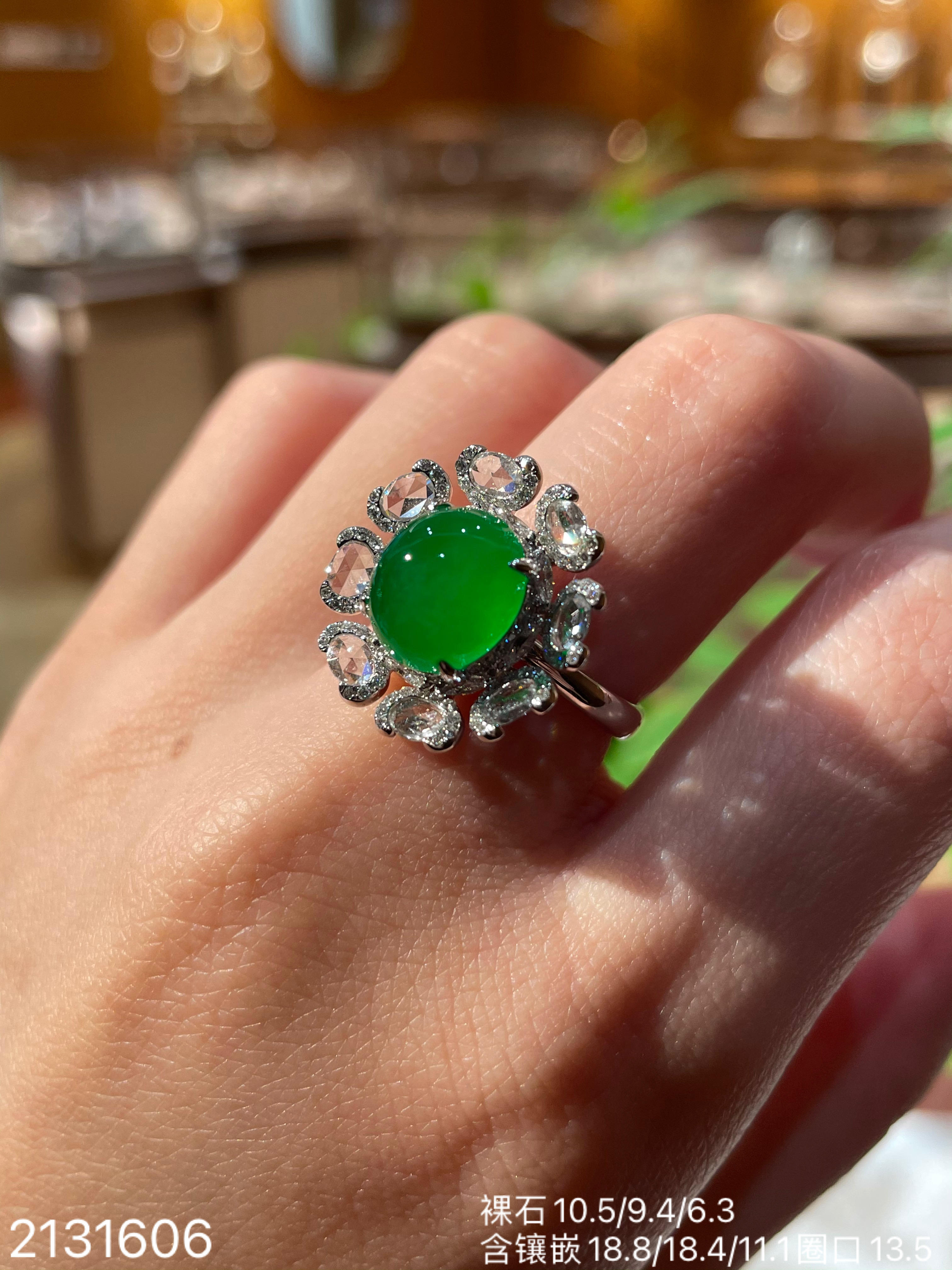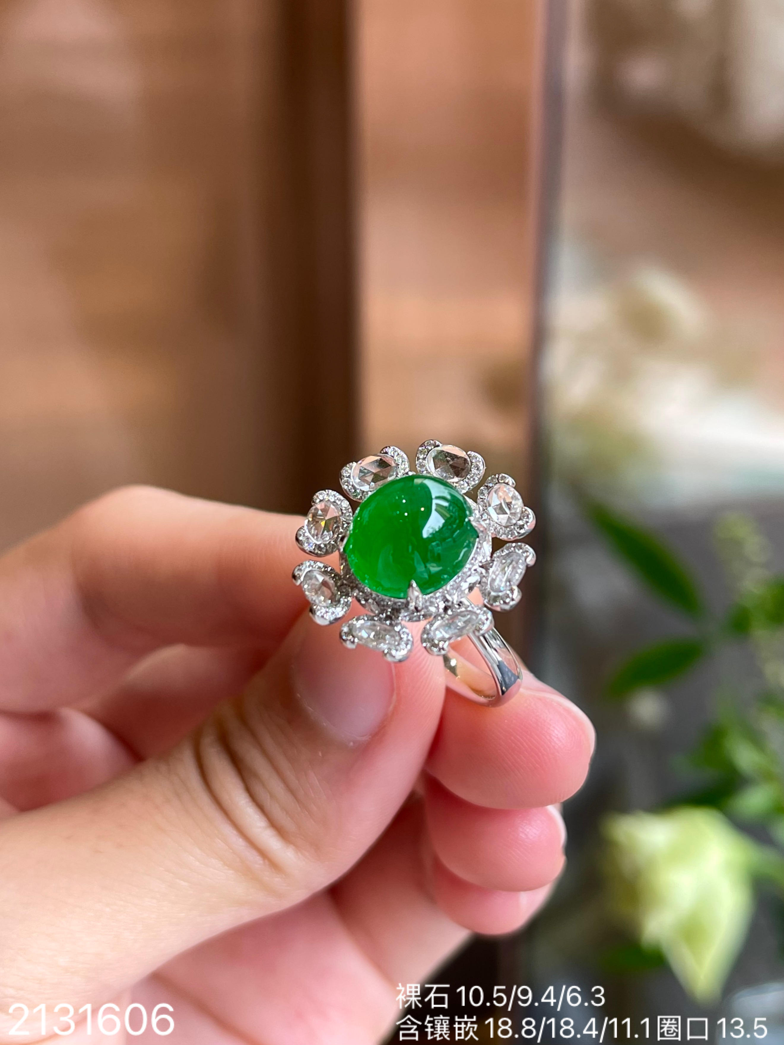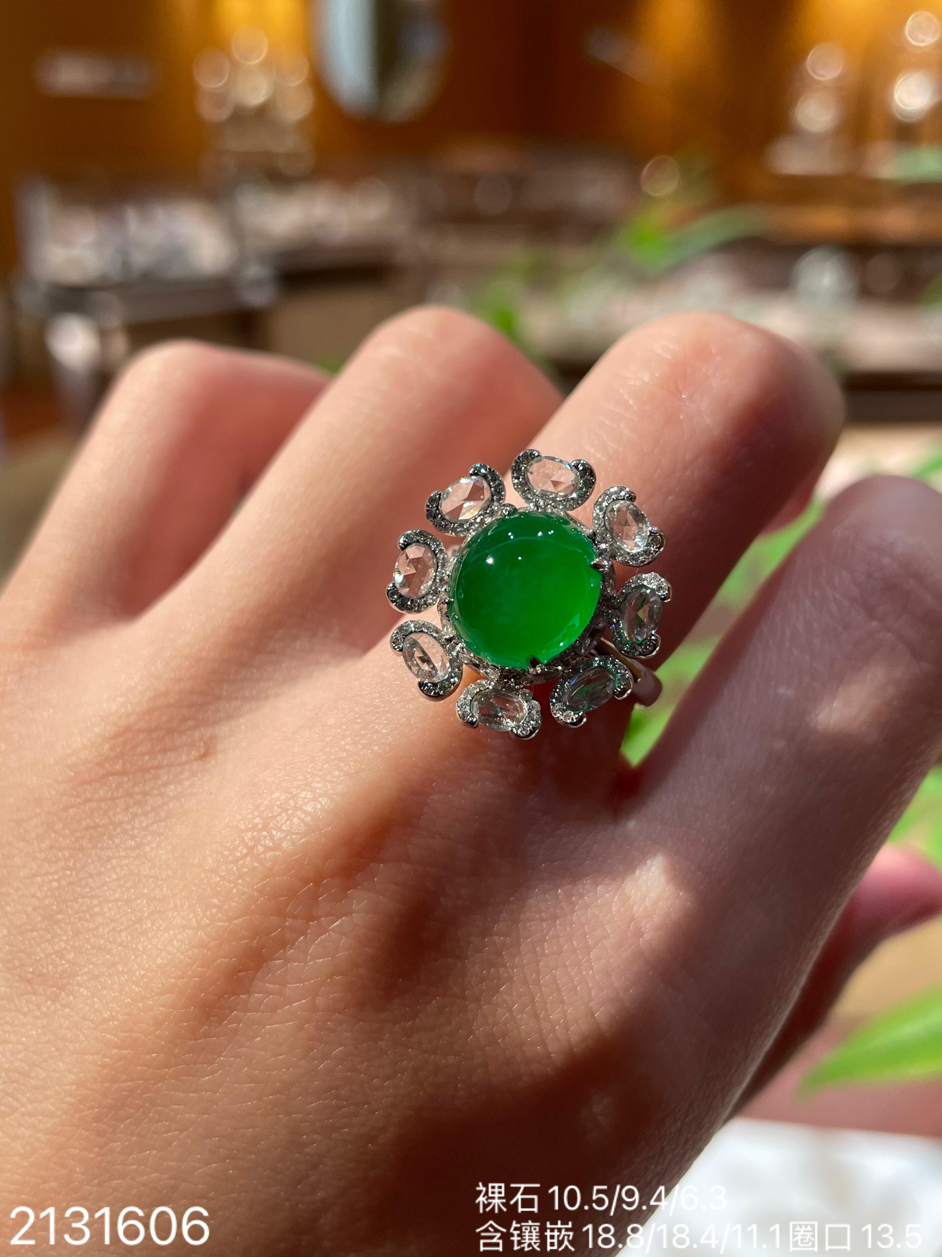 冰艳绿蛋面戒指【2131606】具体价格微信咨询