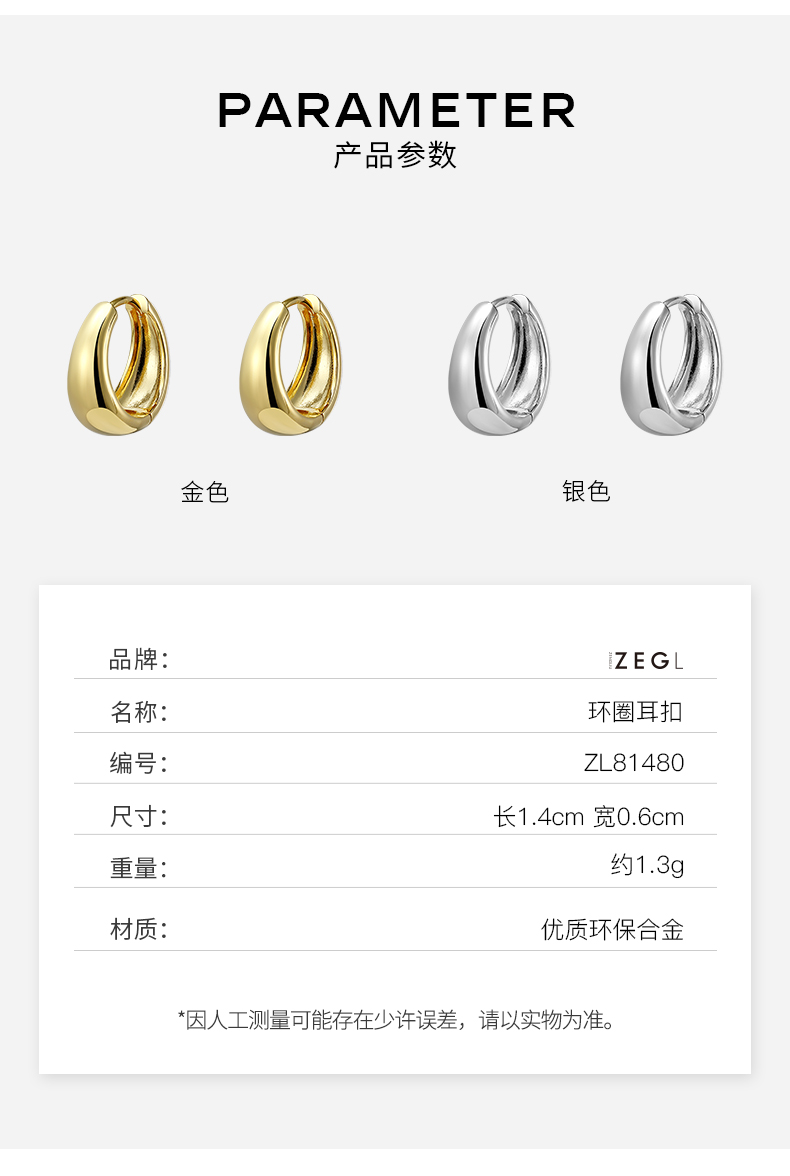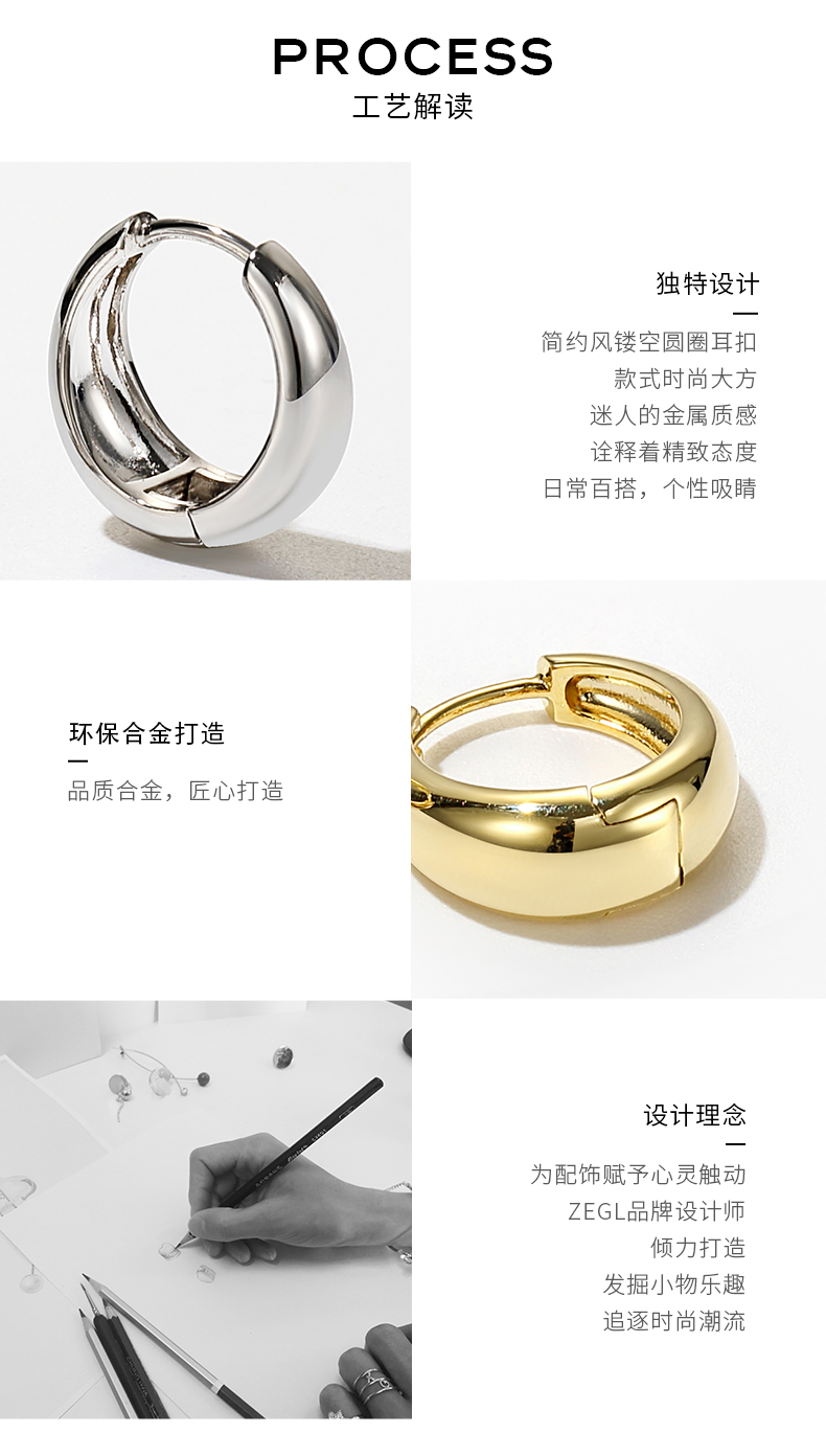 ZENGLIU圆圈耳环女欧美ins简约冷淡风耳钉耳扣小众耳饰2021年新款