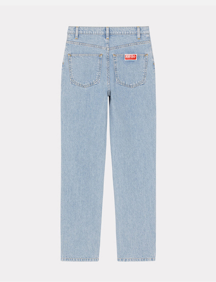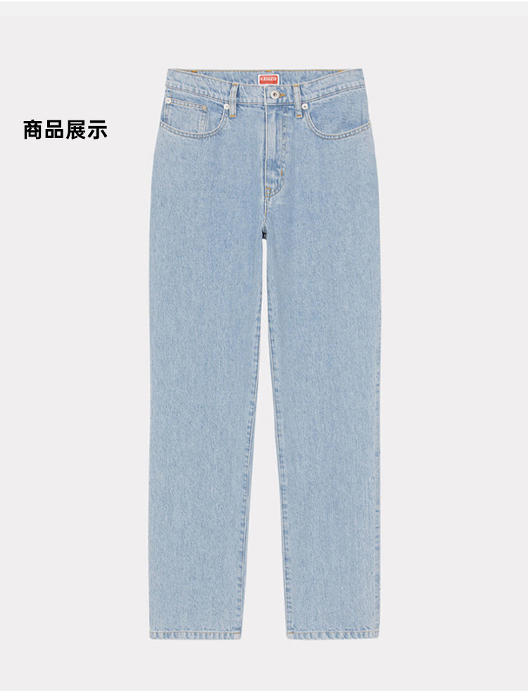 KENZO 高田贤三 女士棉质徽标贴花 ASAGAO 直筒休闲牛仔裤 浅蓝色 FD52 DP210 6B4 DB