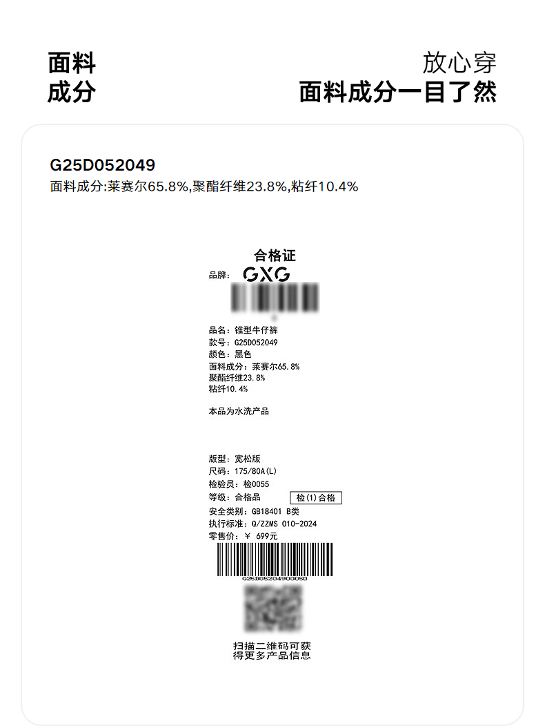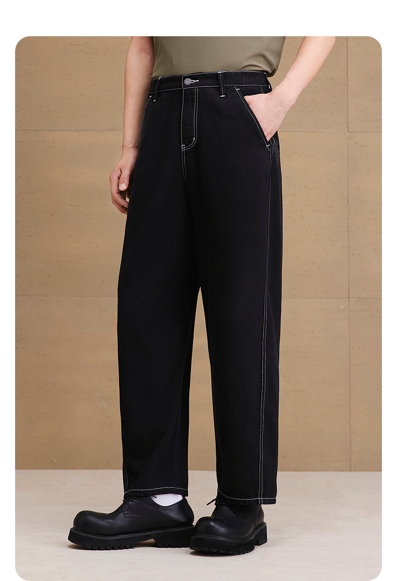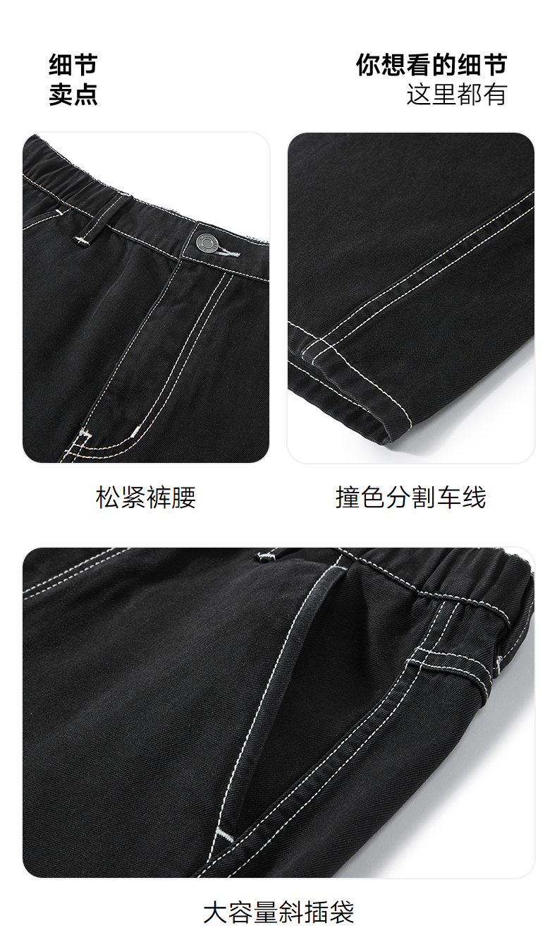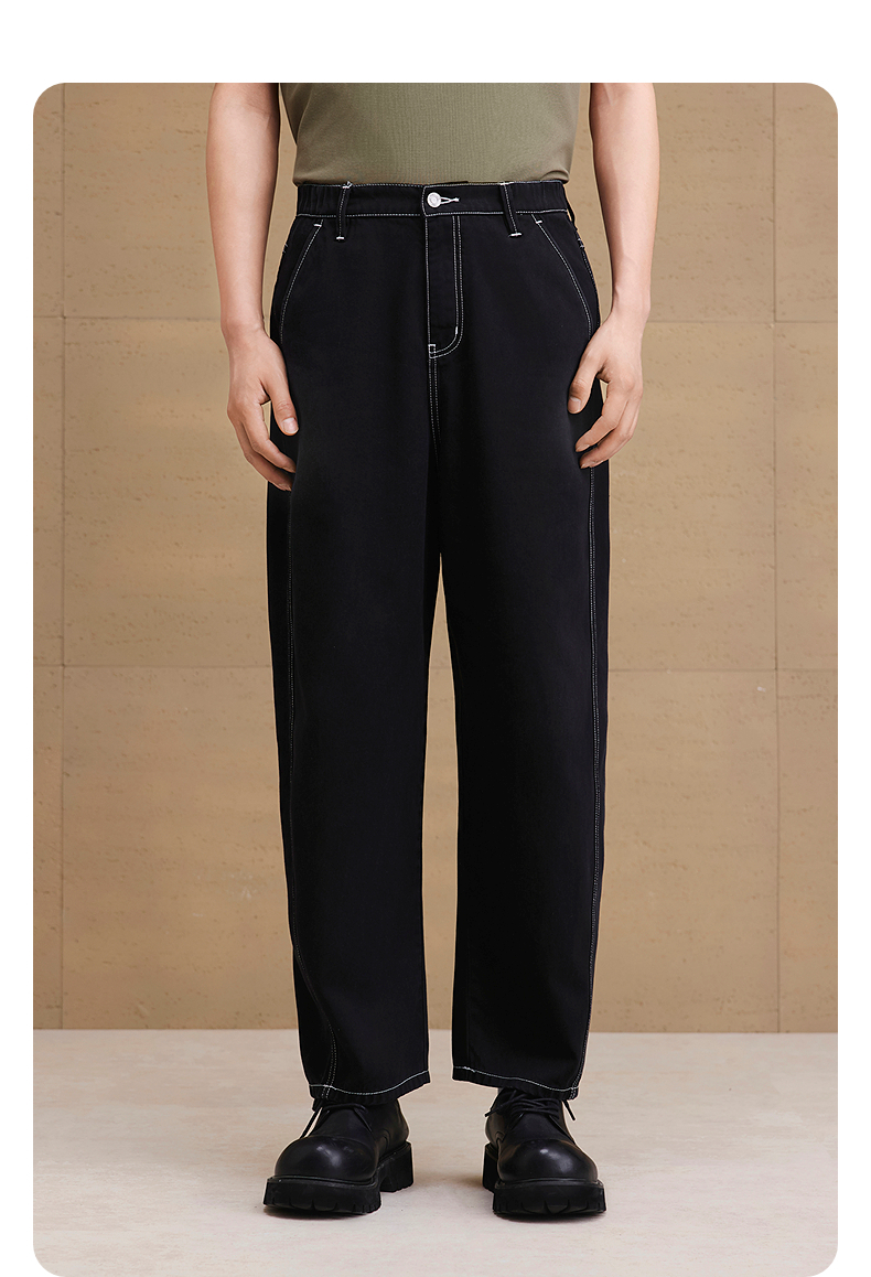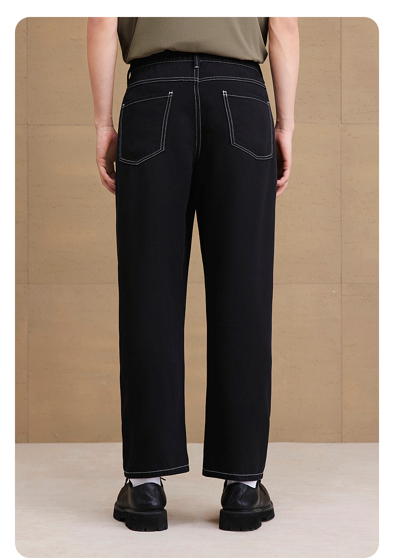 GXG男装 锥型黑色撞色车线牛仔裤休闲裤弹力长裤子 2025夏季新品