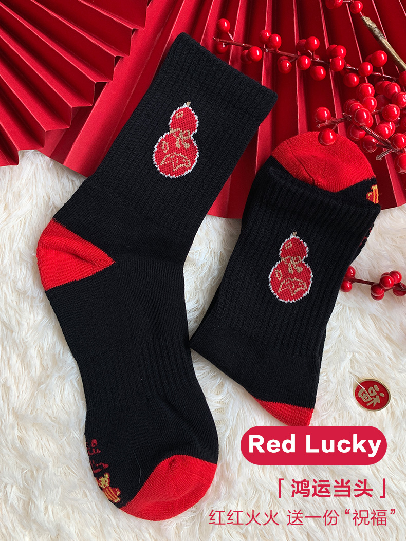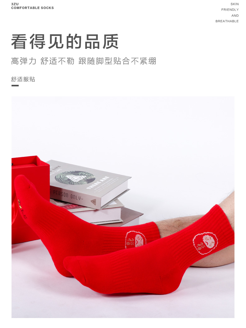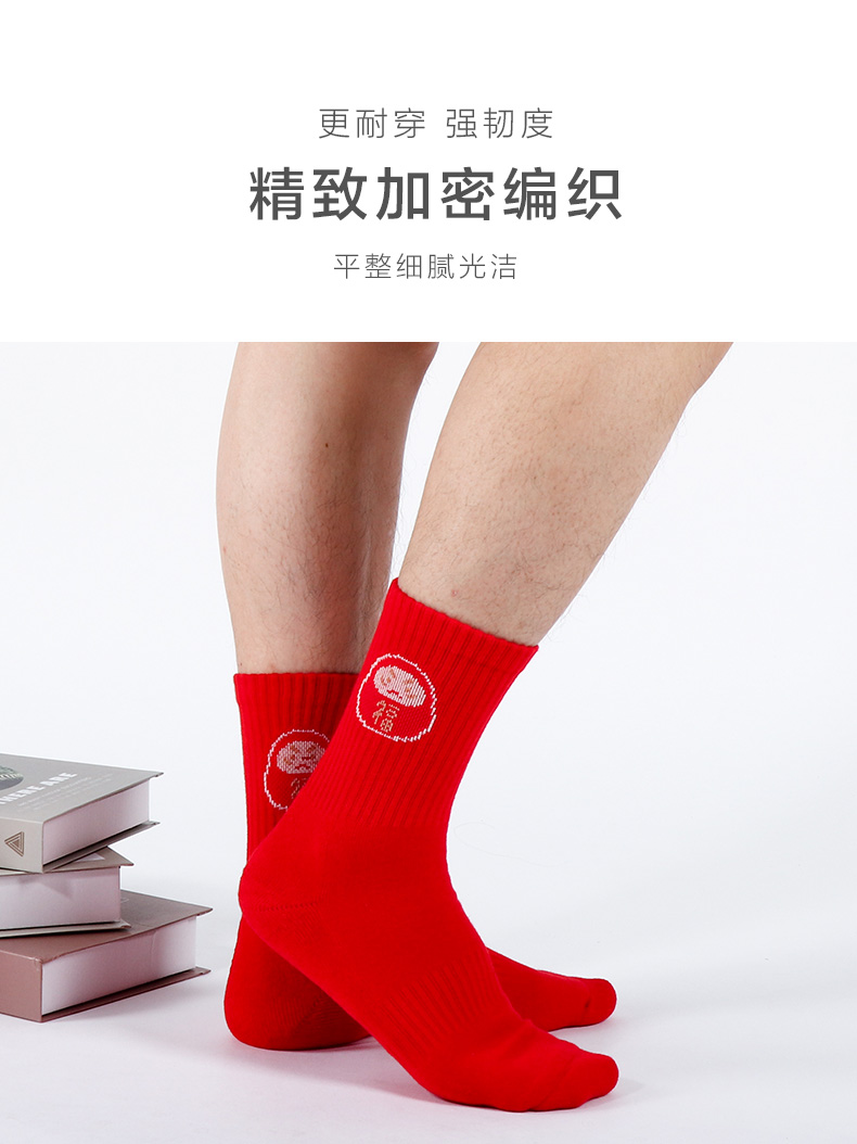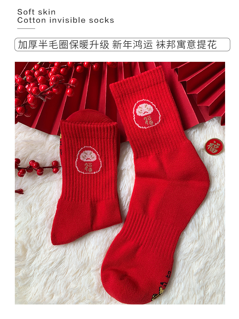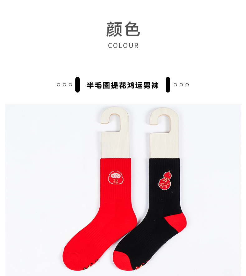 足装秀冬新男棉质半毛圈保暖提花红运本命年新年喜庆节日中邦男袜
