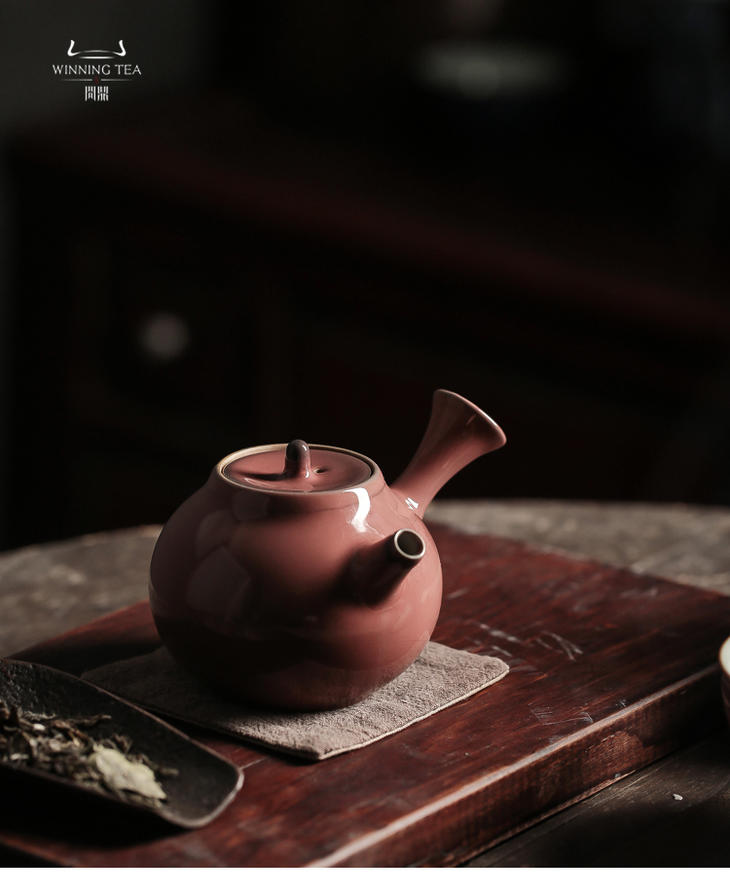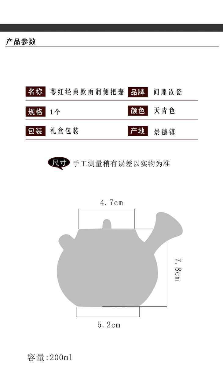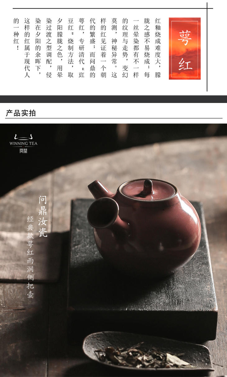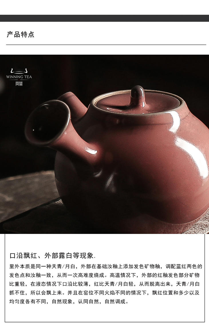 问鼎汝瓷经典款萼红雨润侧把壶景德镇陶瓷泡茶壶