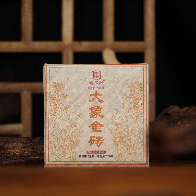 本款《大象金砖》源自易武的野象林,一个真正有野象出没的地方,这里是2019年才被茶农发现的一片古茶地,在易武茶区深山老林之中,古茶树不足百棵,树龄都在百年之上(约300年左右),生态环境极优,远离尘嚣,产量极为稀少。2022年掌柜亲自前往易武收购这批珍贵原料。值得一提的是,这里的古茶树都是高杆茶树,制成干茶后条索非常的漂亮,掌柜将其压制成方砖保存起来。