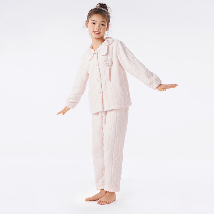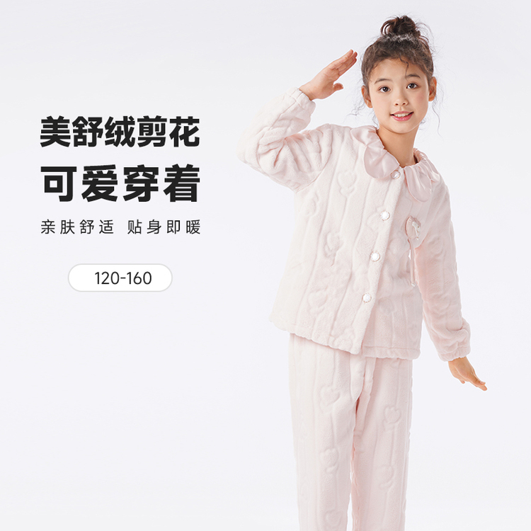 都市丽人睡衣女童法兰绒儿童家居服长袖长裤童装法兰绒套装JHH9D3