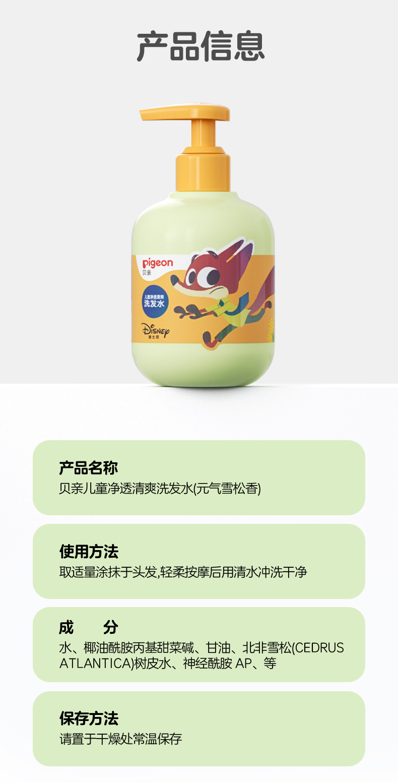 贝亲 儿童净透清爽洗发水 元气雪松香味 300ml IA320