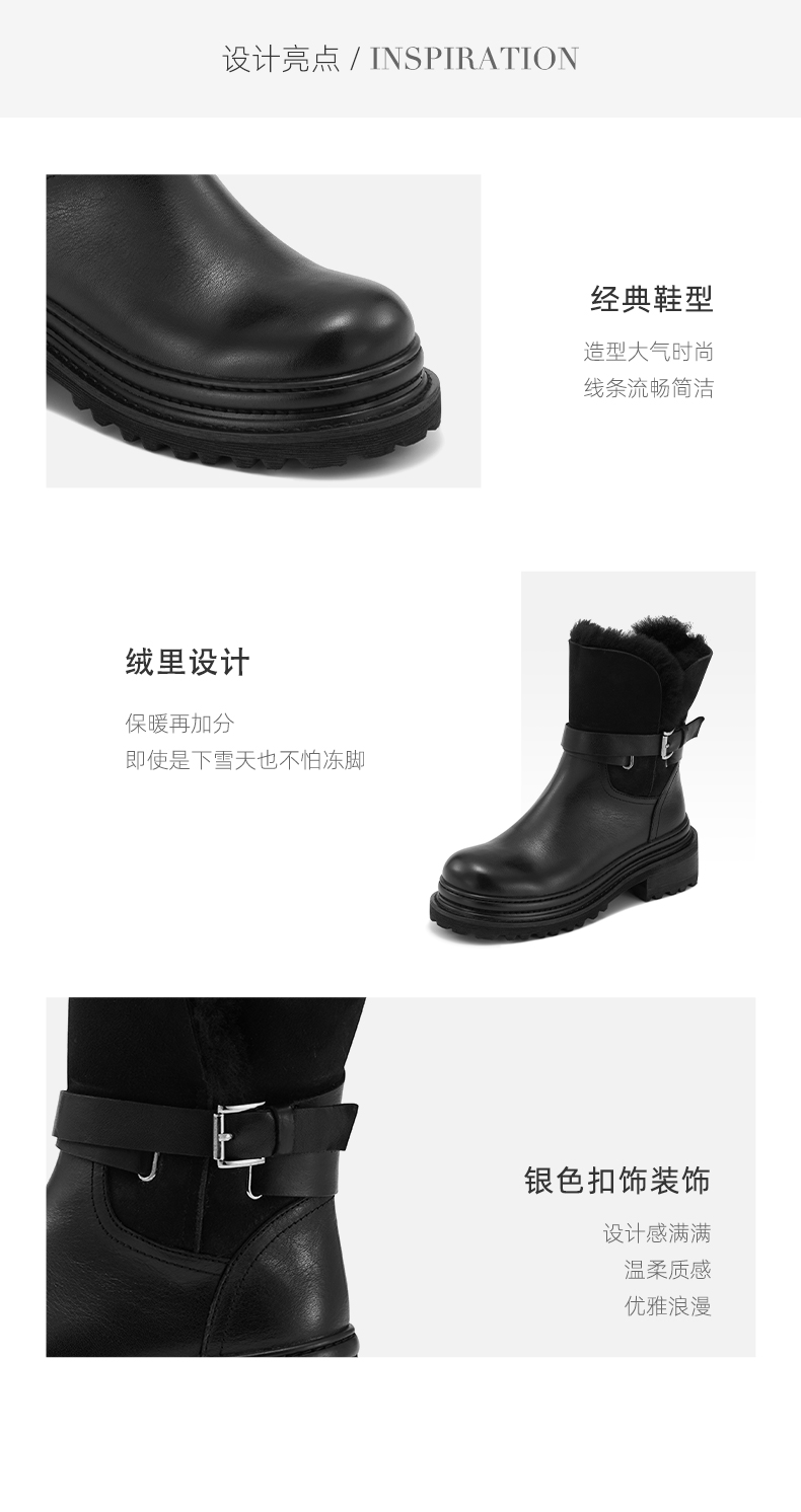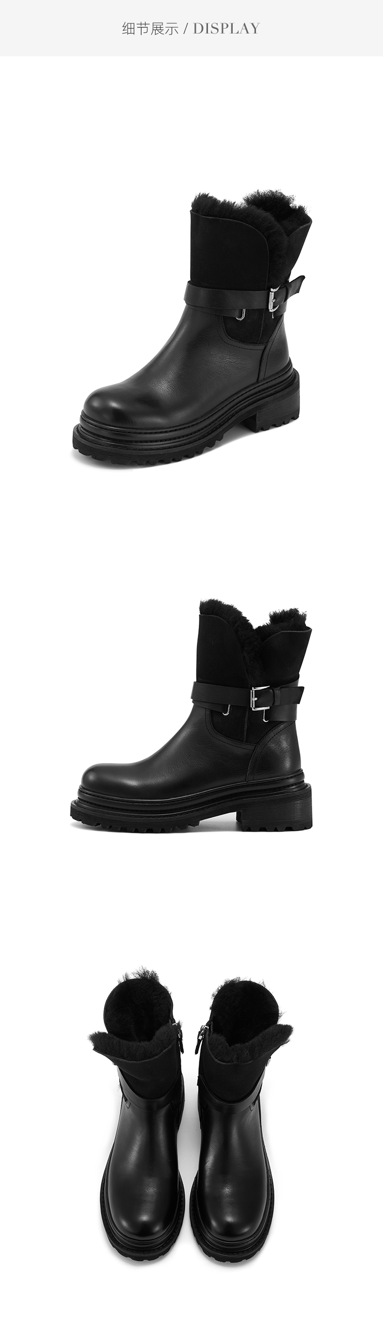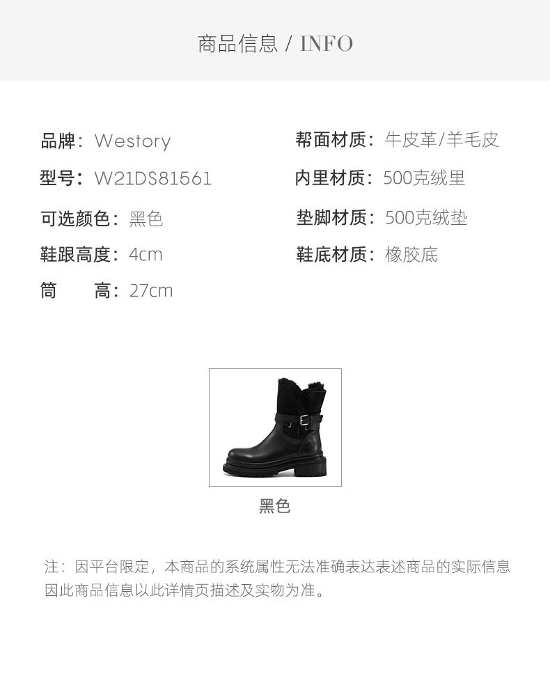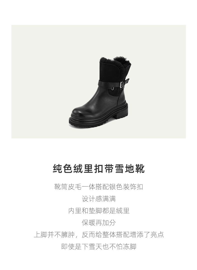 westory厚底绒里雪地靴真皮圆头短靴皮毛一体时装靴子纯色女靴W21DS81561