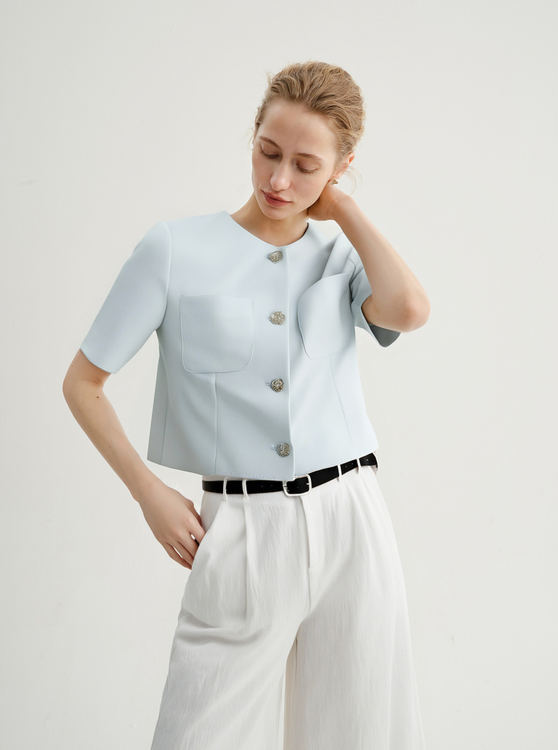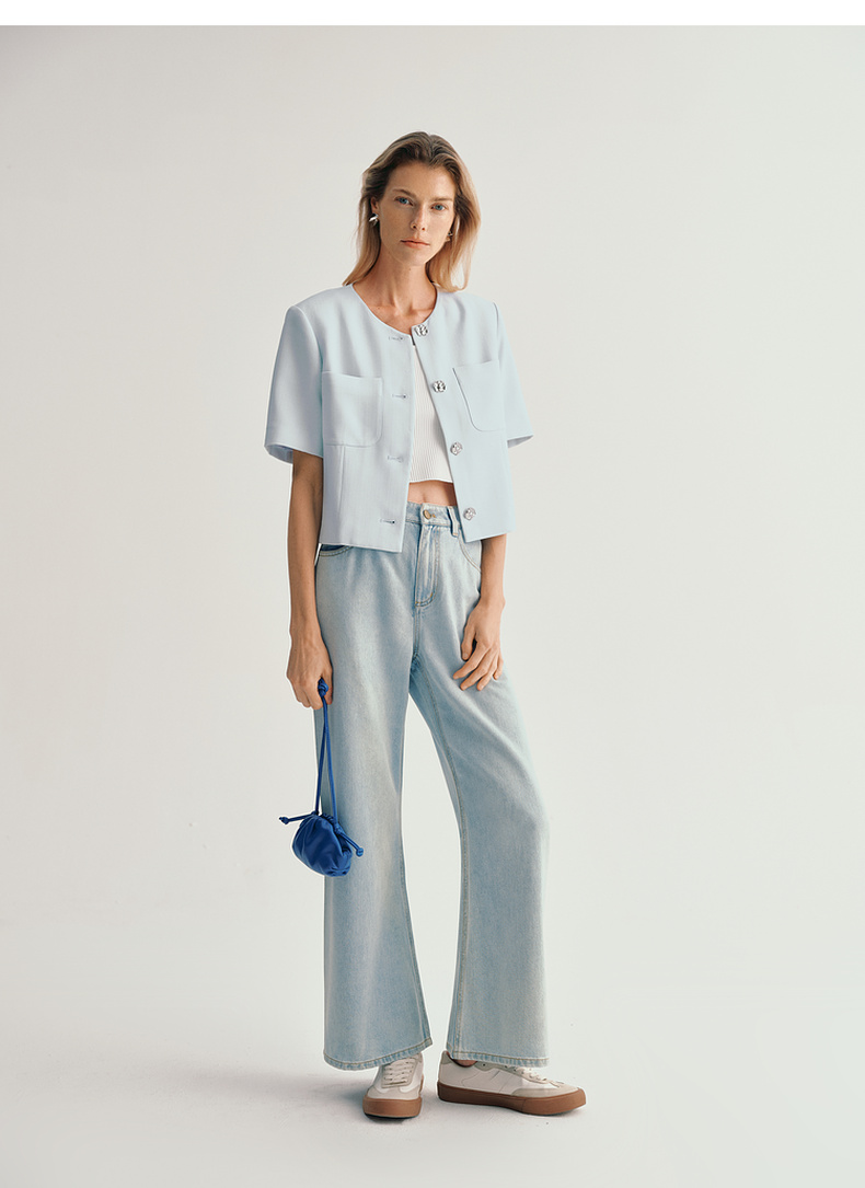 【商场同款】麦檬夏实穿主义百搭冰点蓝短外套5F6113001