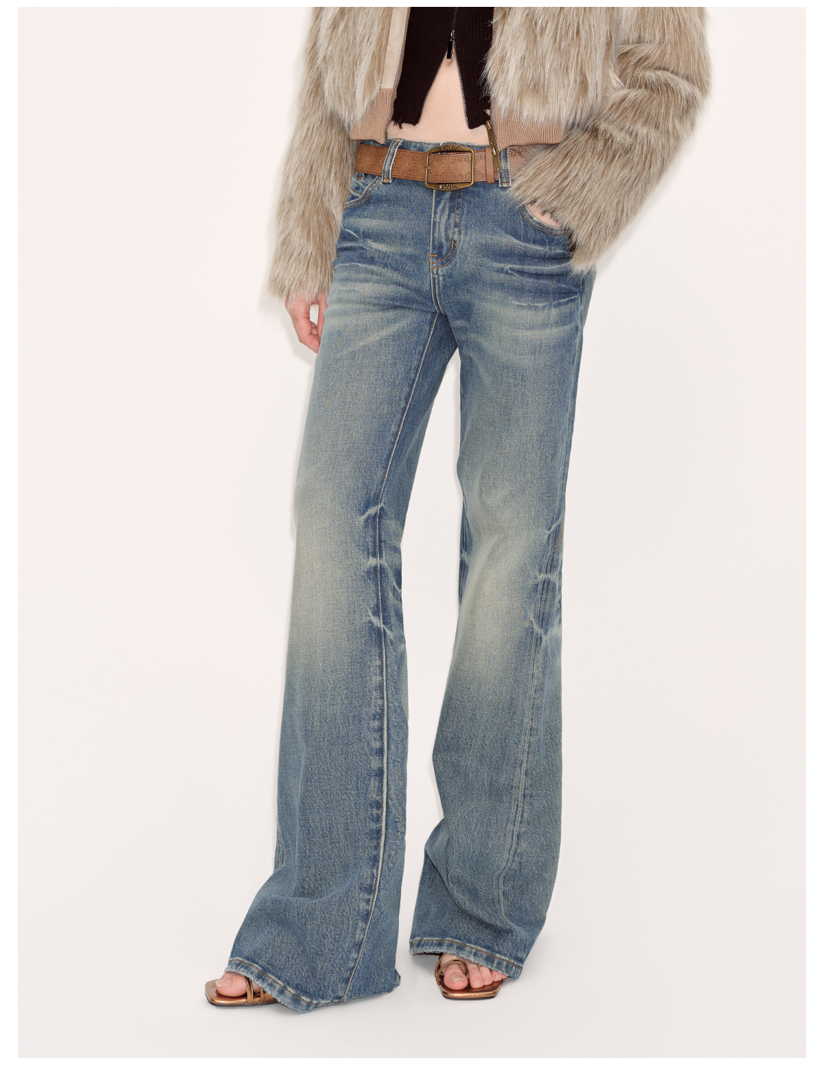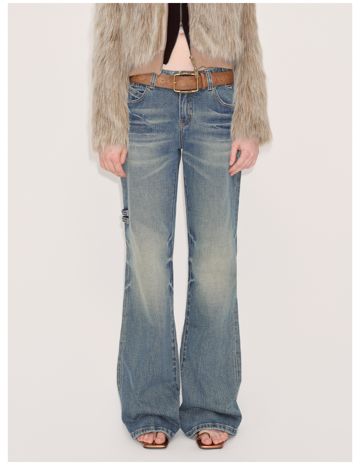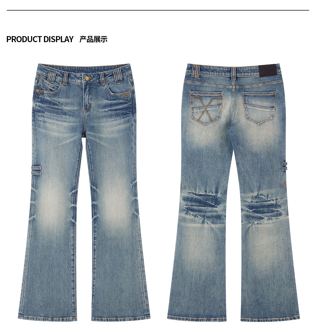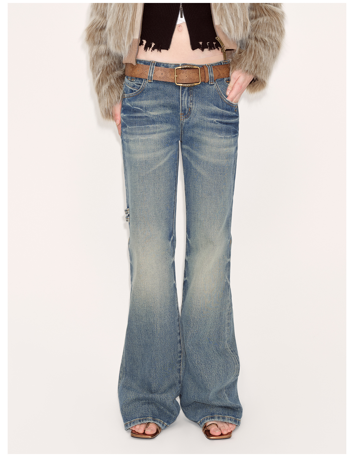 出逃赤岗西/24AWN71/复古蓝牛仔微喇低腰显瘦马蹄拖地长裤