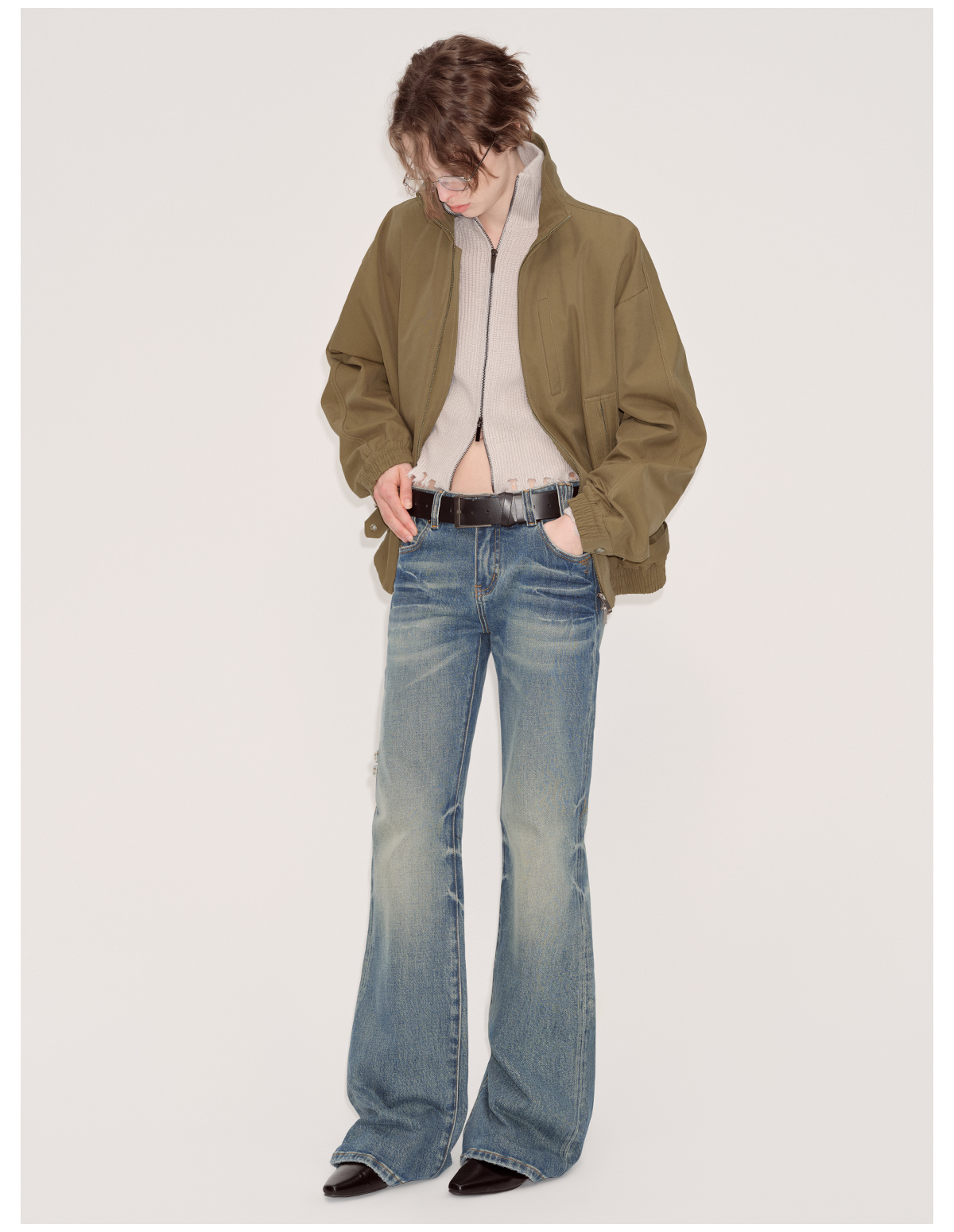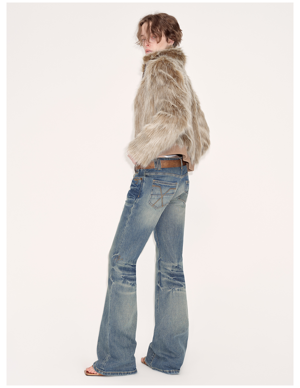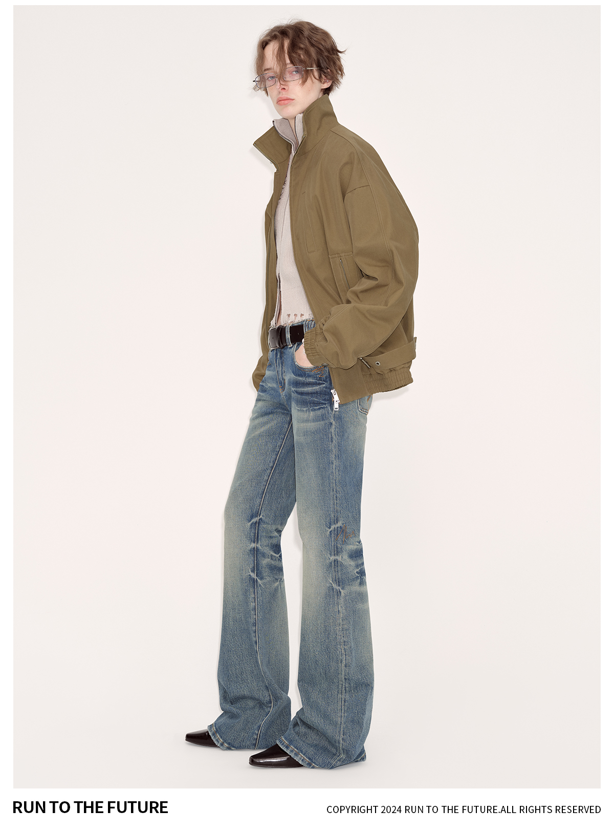 出逃赤岗西/24AWN71/复古蓝牛仔微喇低腰显瘦马蹄拖地长裤