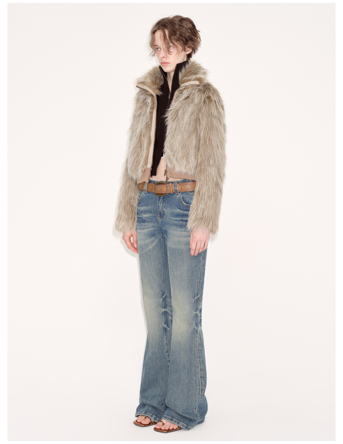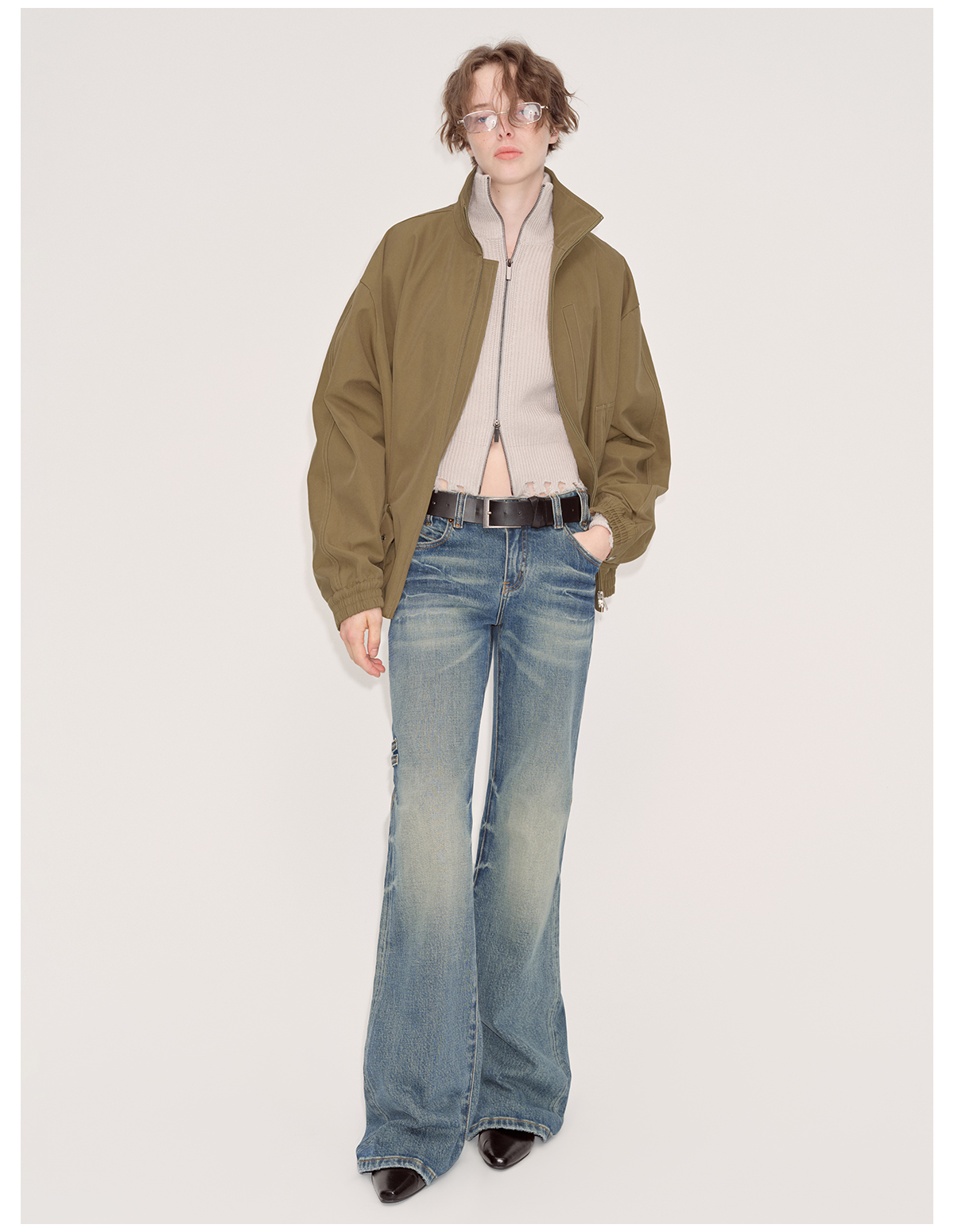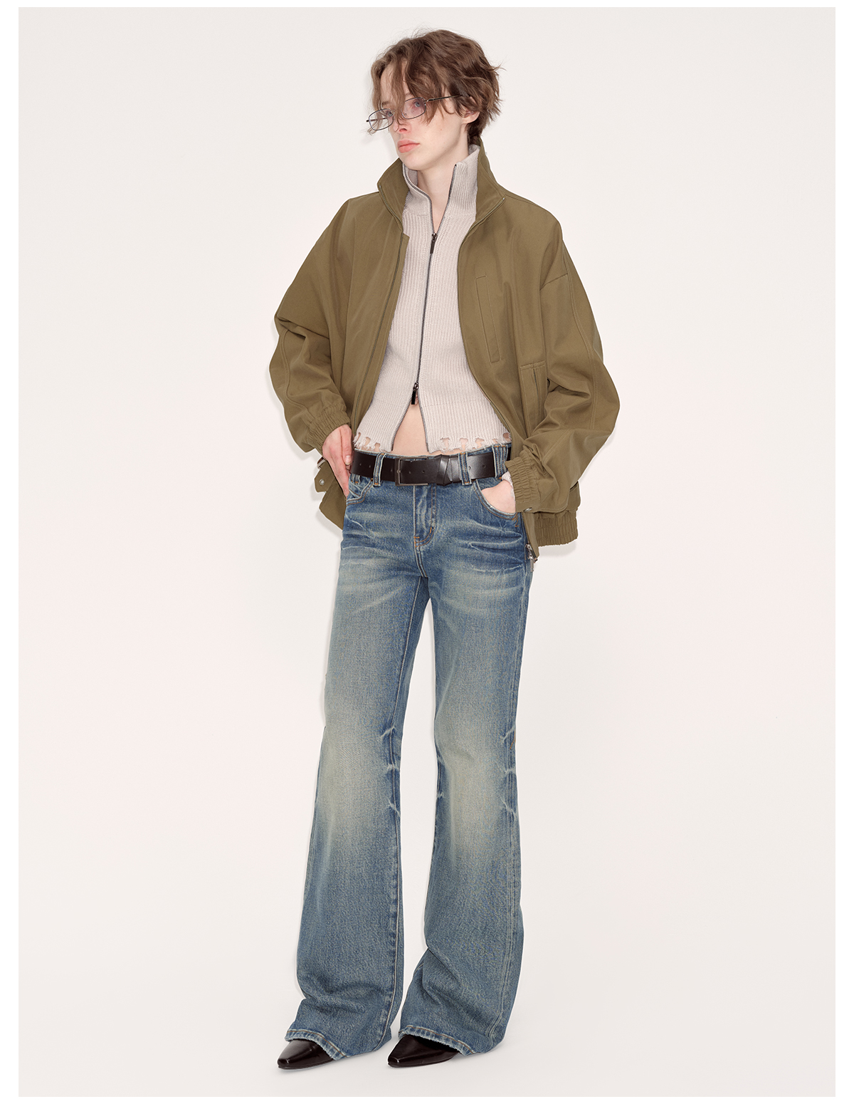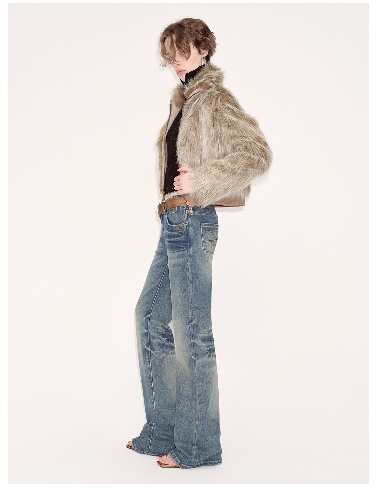 出逃赤岗西/24AWN71/复古蓝牛仔微喇低腰显瘦马蹄拖地长裤