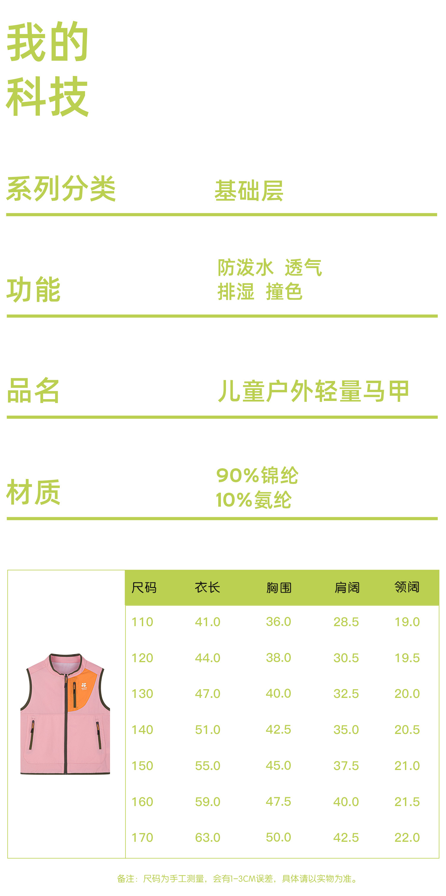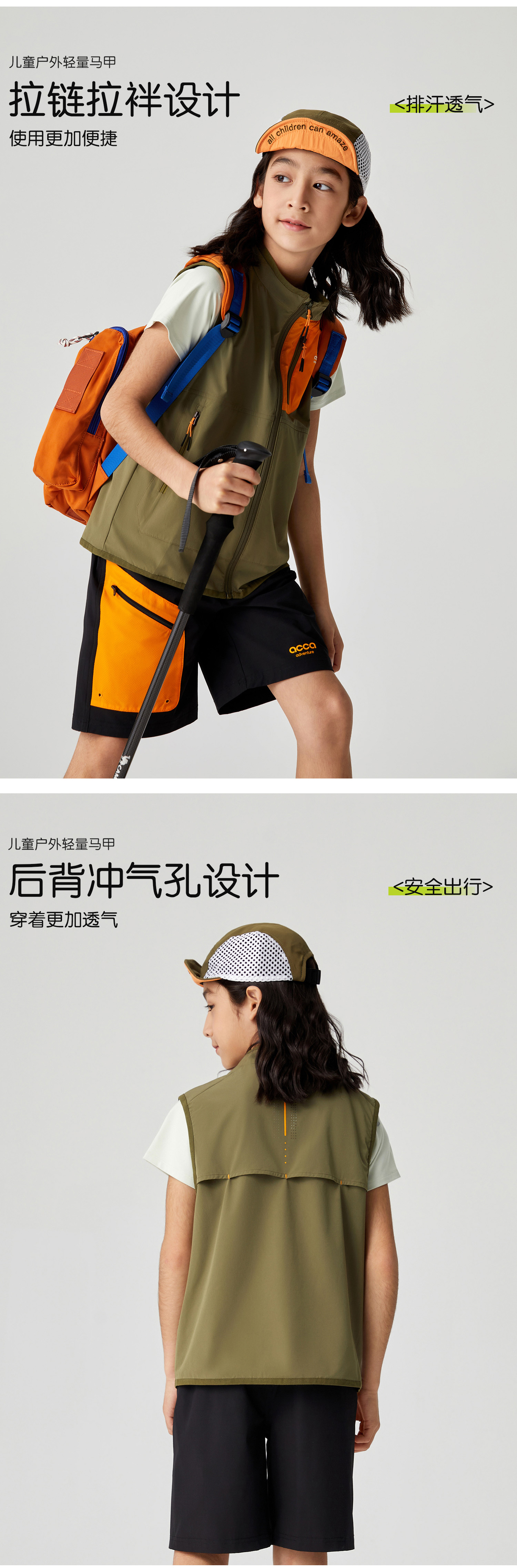 acca男女儿童户外轻量马甲防水面料速干透气吸湿排汗轻薄耐磨外套