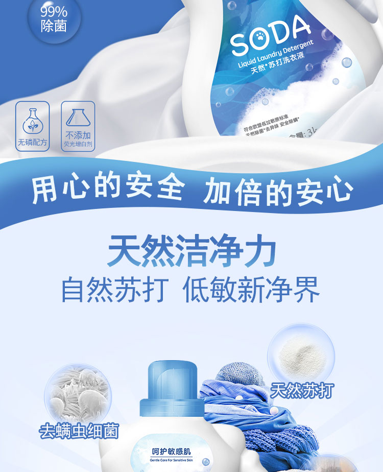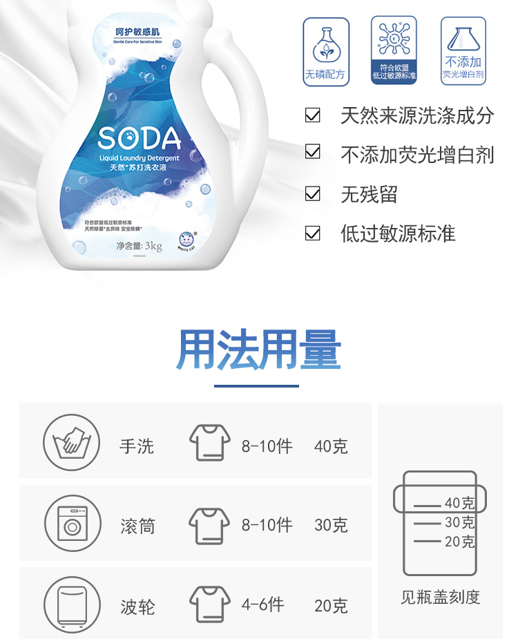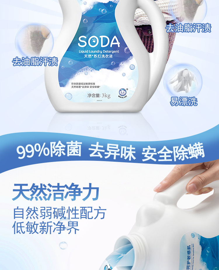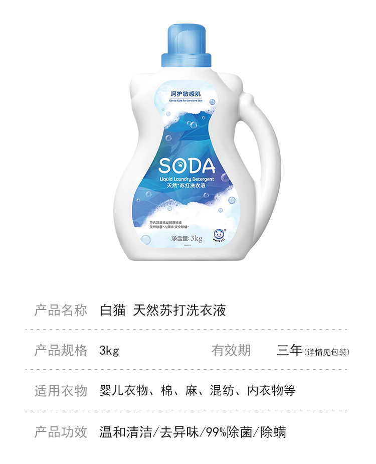 白猫 天然苏打洗衣液 3kg