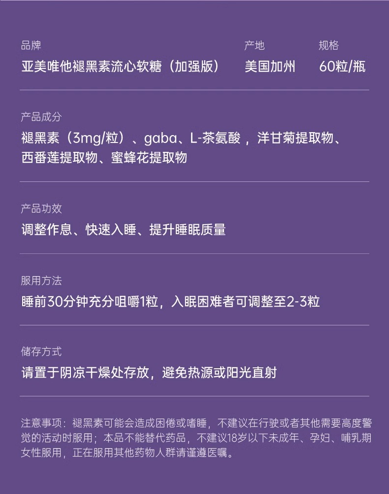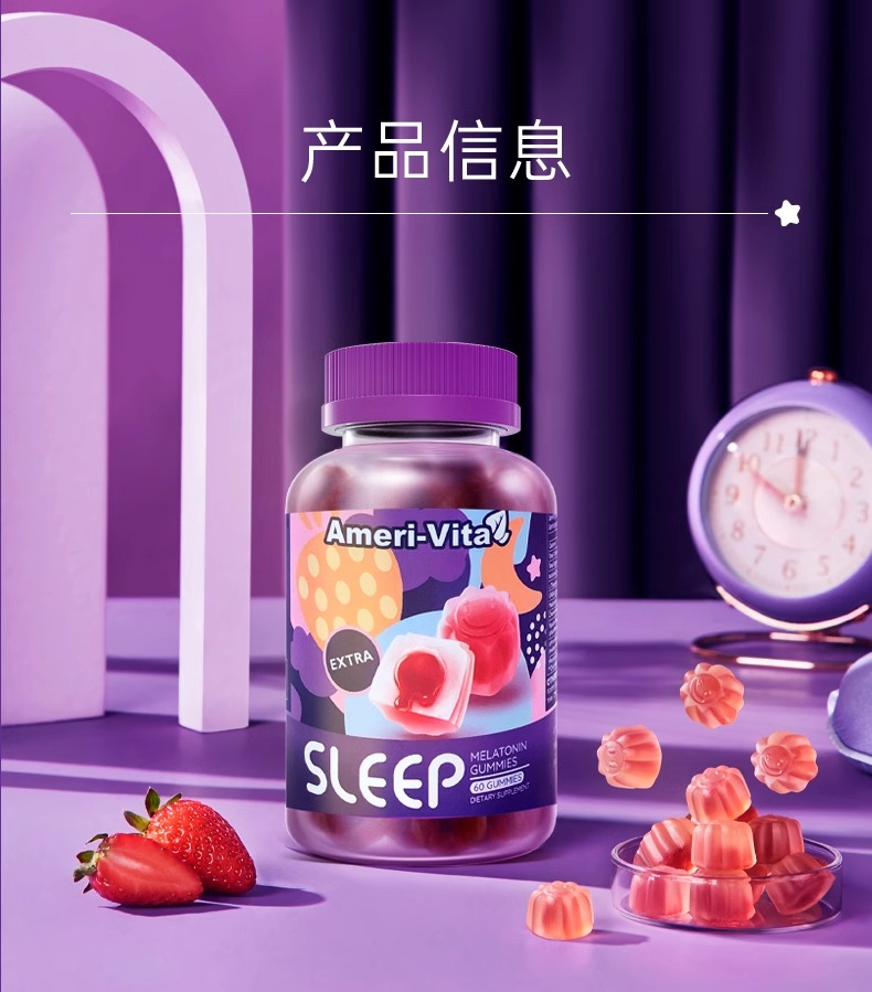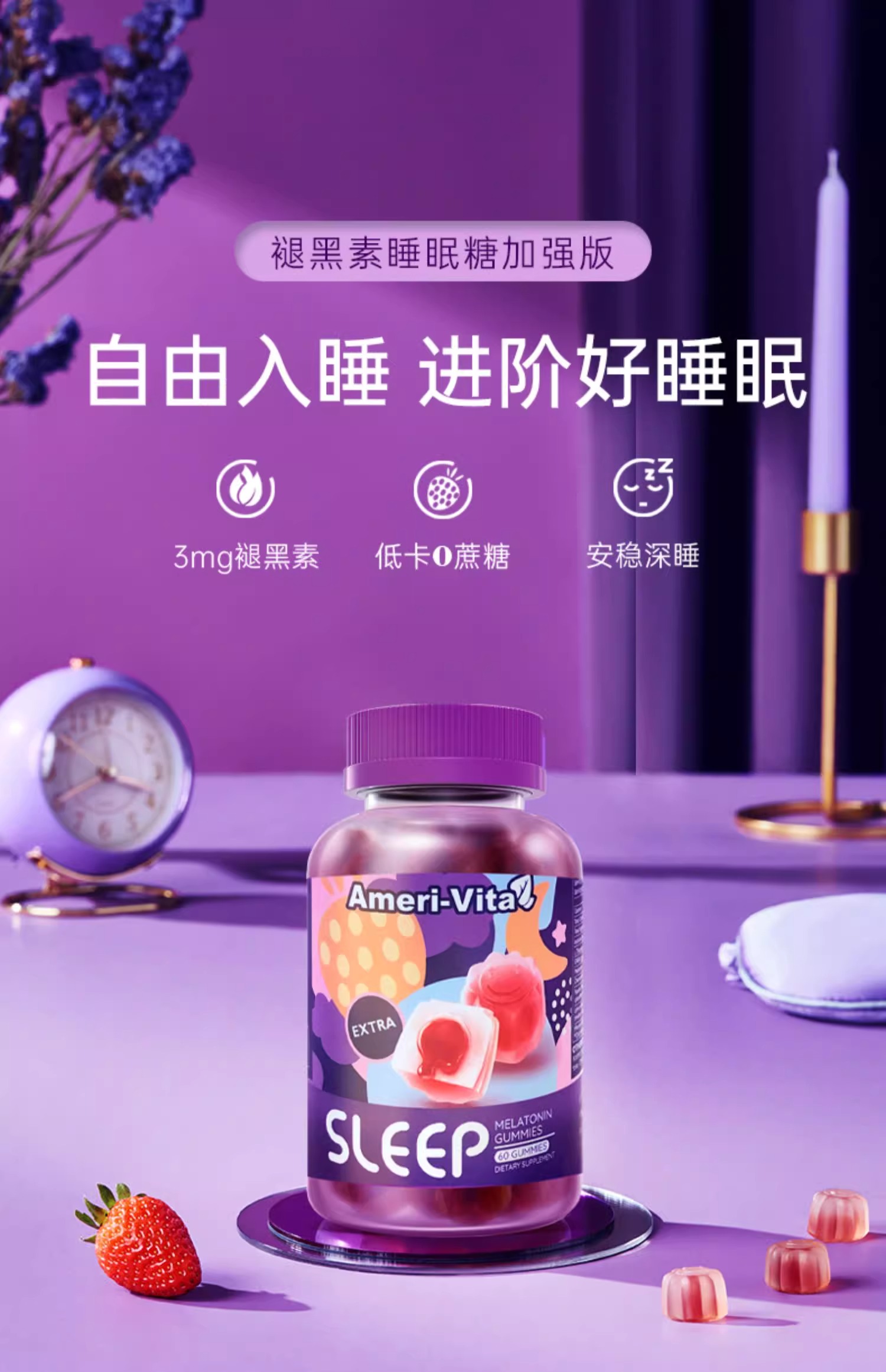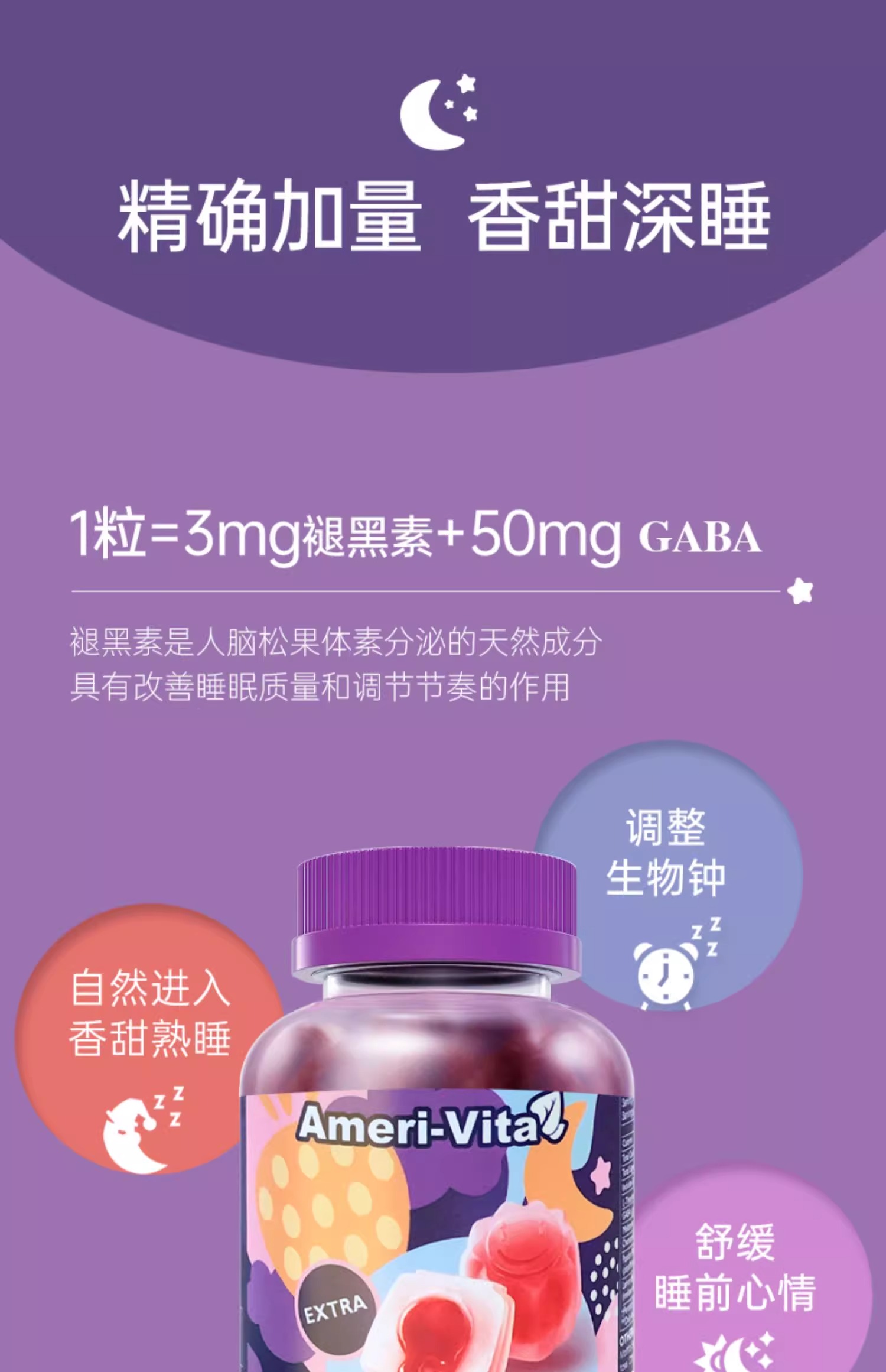 Ameri-Vita 加强版 3mg褪黑素软糖 60粒/瓶 退黑素sleep well安瓶睡眠片睡眠软糖