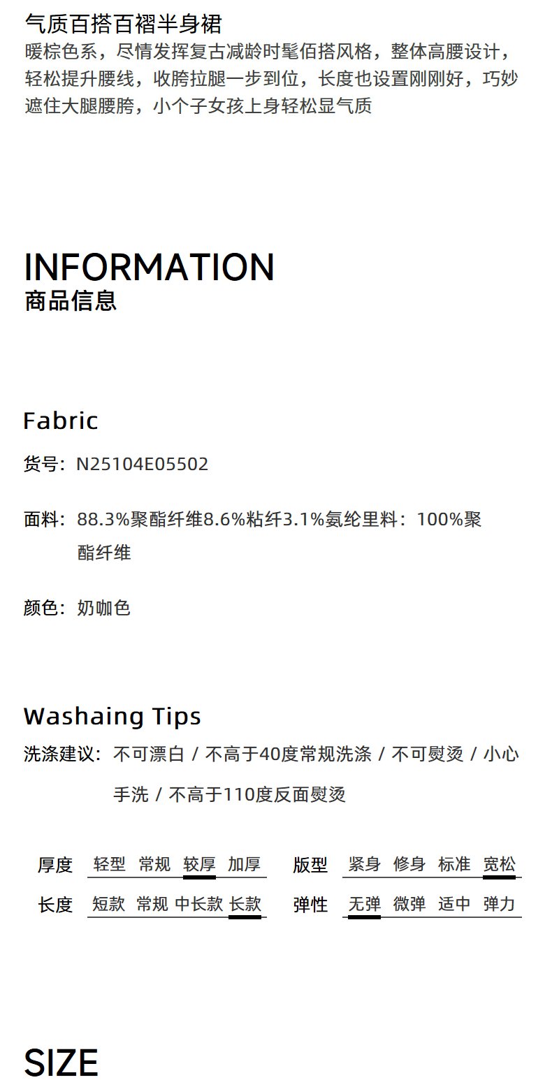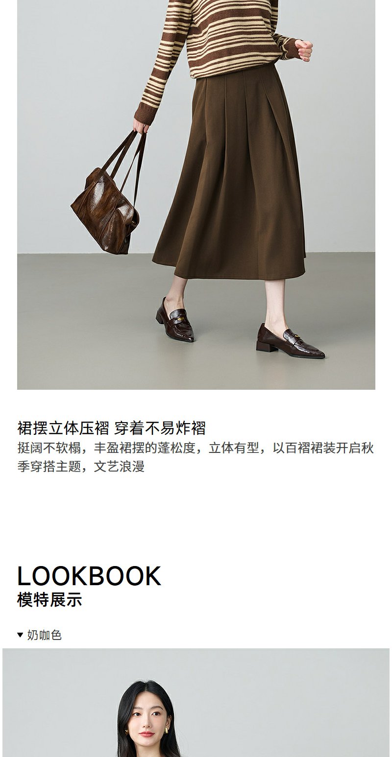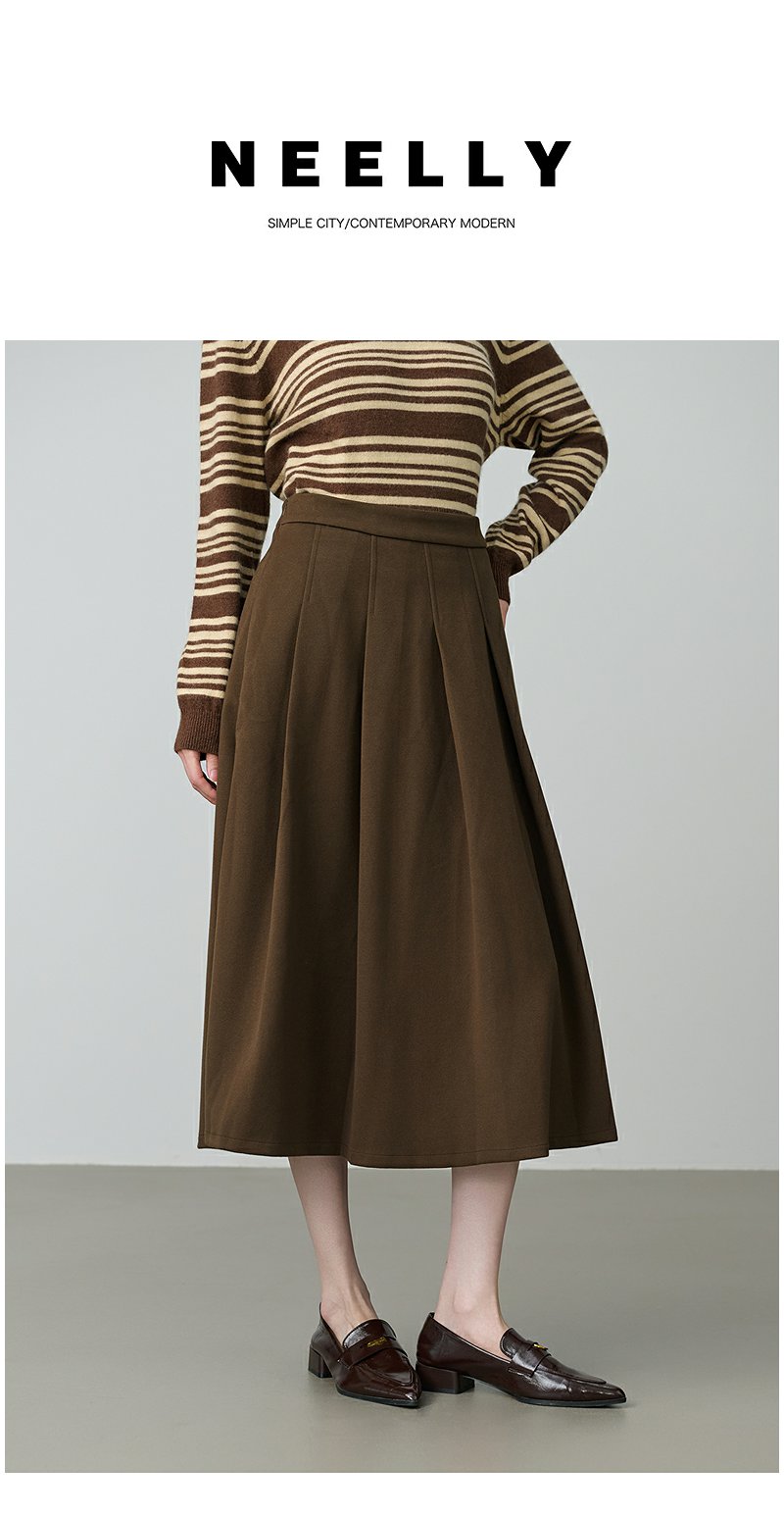 NEELLY纳俪秋新款商场同款复古百搭A字半身裙女显白收腰百褶长裙N25104E05502