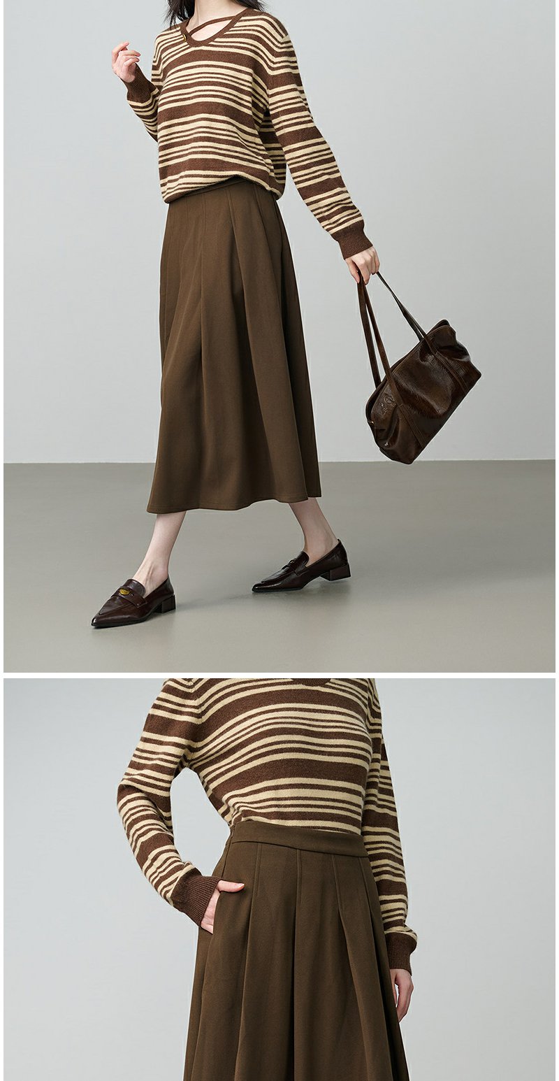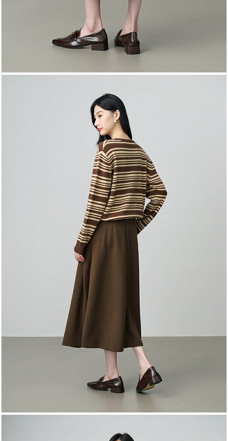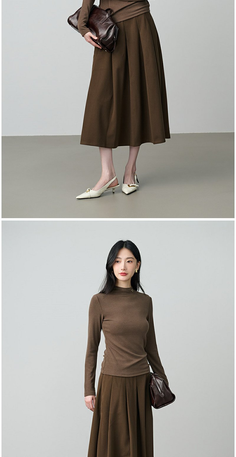 NEELLY纳俪秋新款商场同款复古百搭A字半身裙女显白收腰百褶长裙N25104E05502