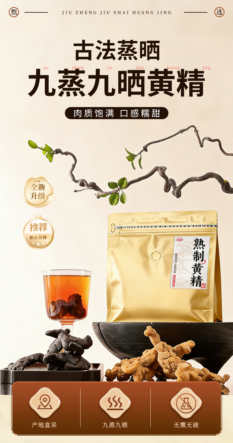 非遗古法九蒸九晒熟制黄精日常养生开袋即食软糯香甜