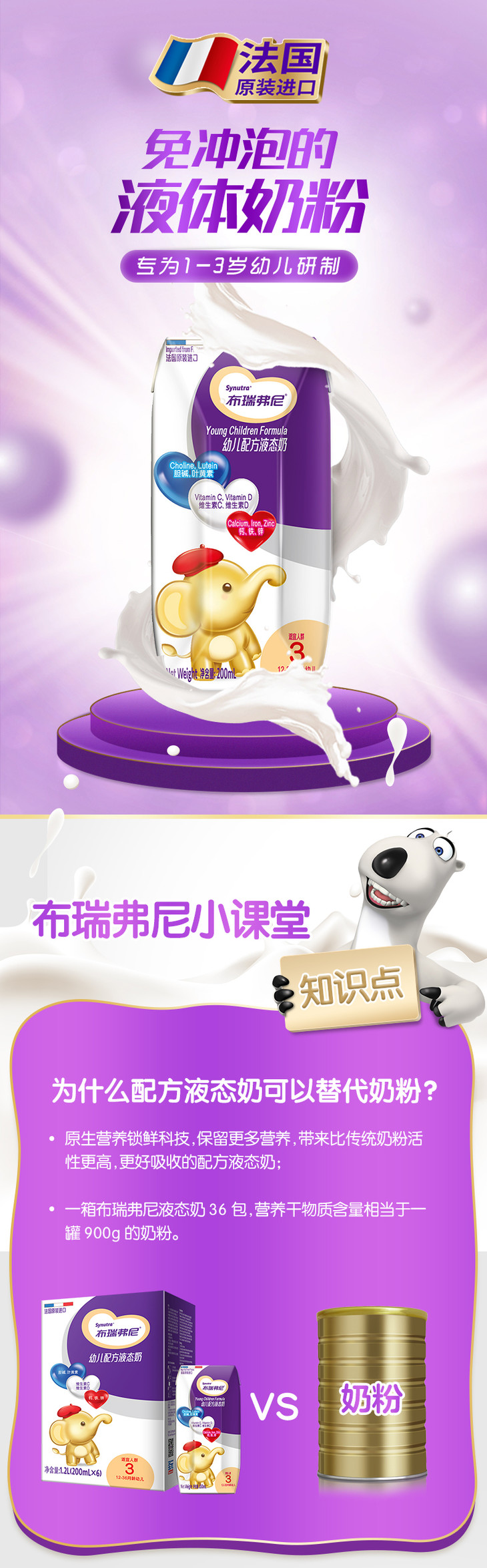 法国原装进口圣元布瑞弗尼3段幼儿配方液态奶6支奶粉新cp营养好搭档中高端儿童奶