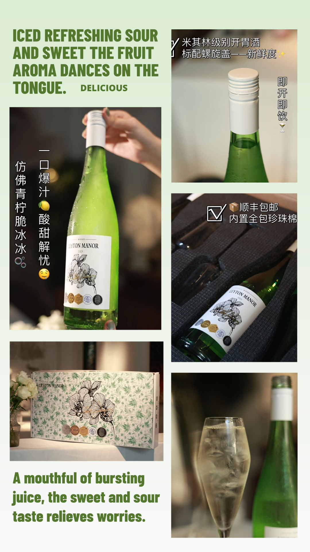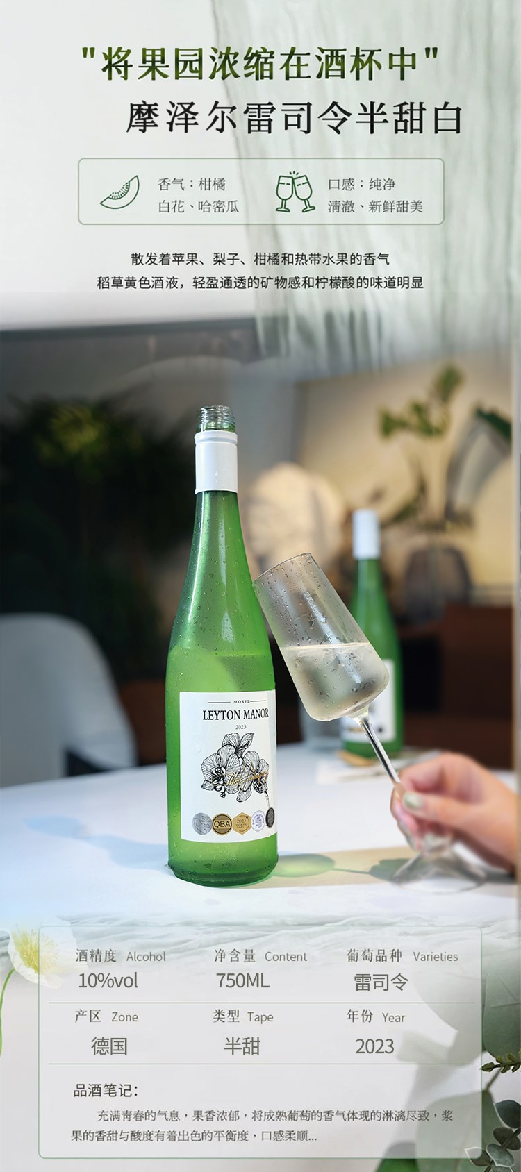 【断货王!10度青柠脆冰冰白葡萄酒!德国原瓶进口 买一箱送酒杯!】列顿庄园摩泽尔青柠脆冰冰·雷司令半甜白葡萄酒 10度甜型 750ml/瓶