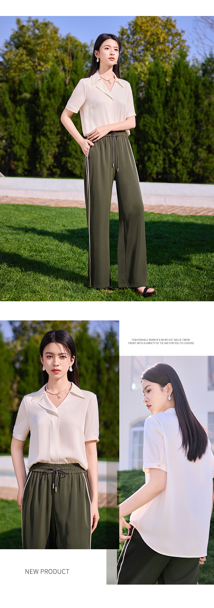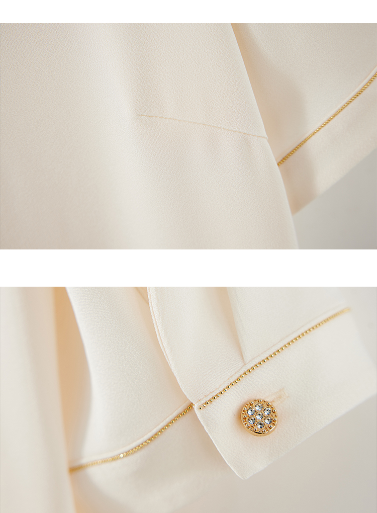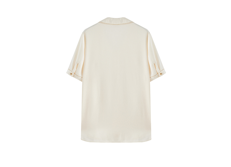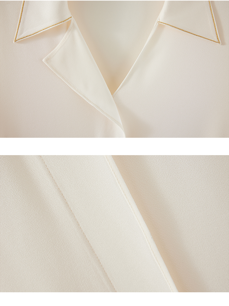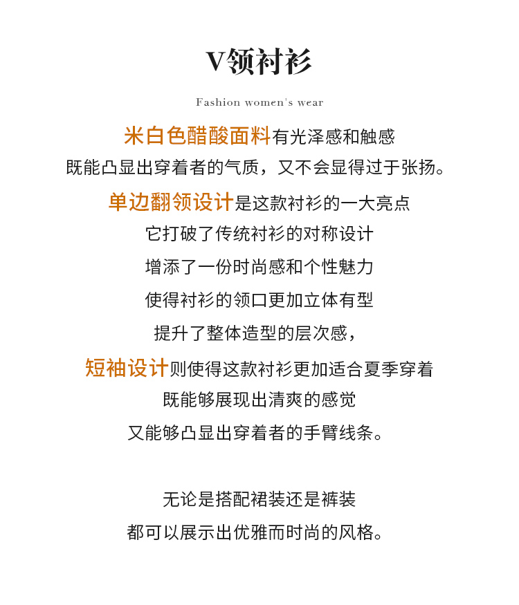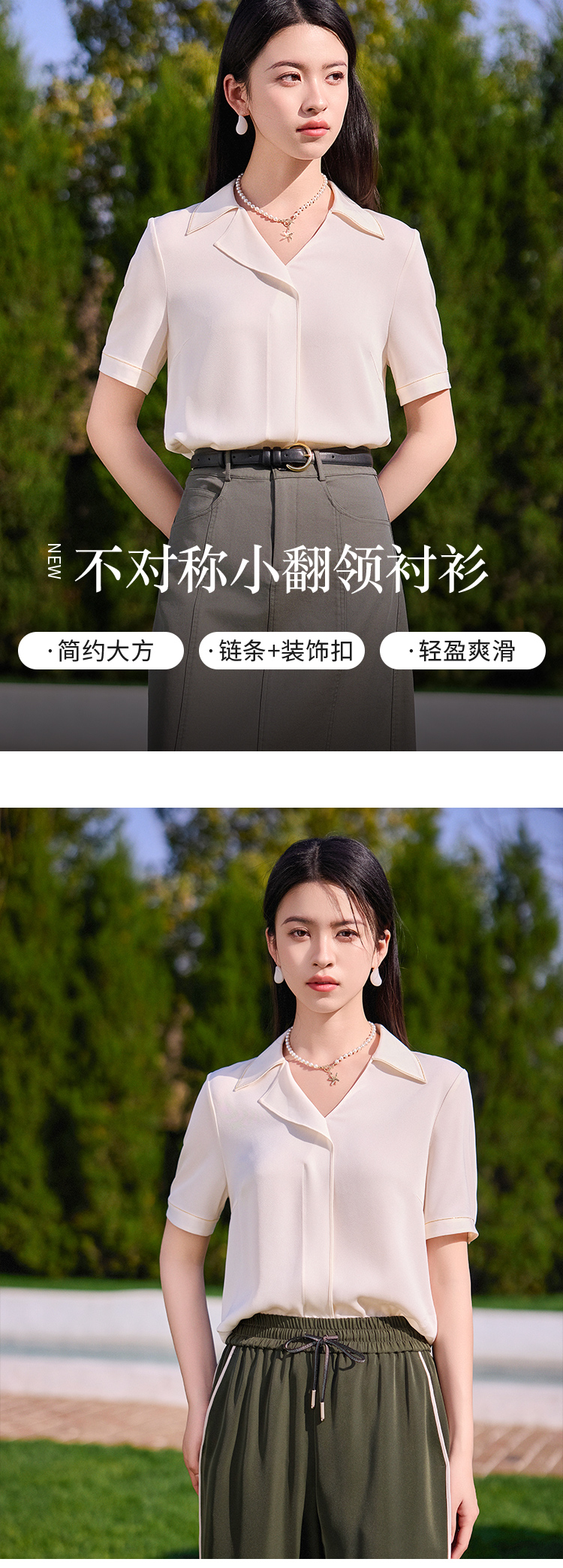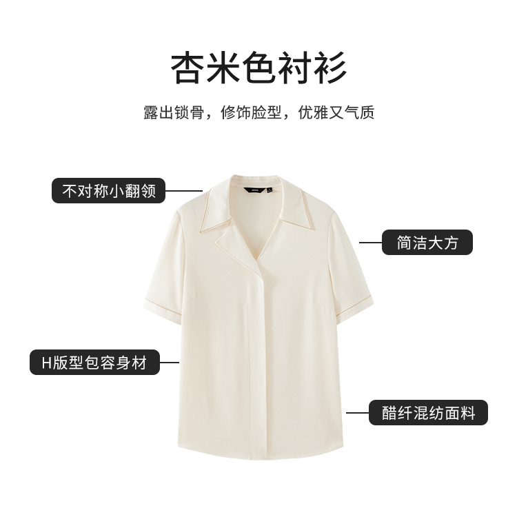 【商场同款】CJVJ513 “ 夏日通勤衬衫 ” 杏米色雅致柔和不挑肤 不对称小翻领增添了一份时尚感和个性魅力 醋纤混纺面料手感丝般爽滑悬垂清凉