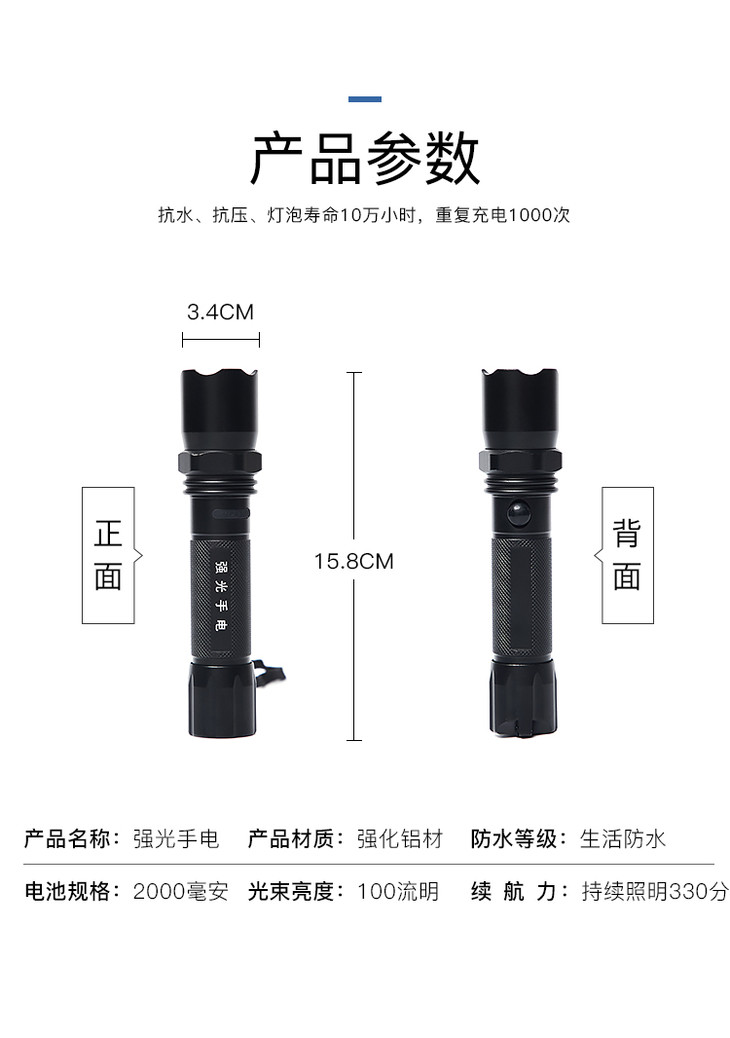【强光手电】3W大功率LED灯泡 持续照明330分钟