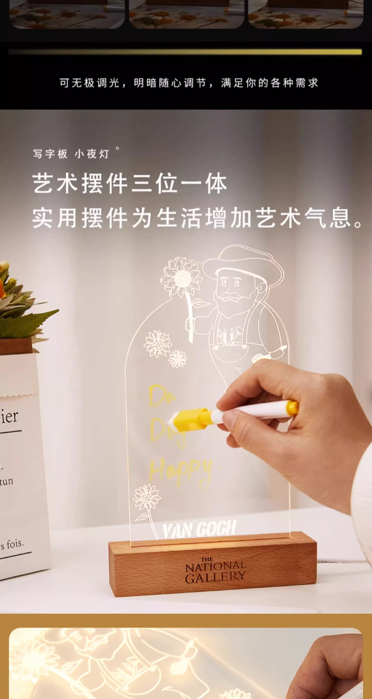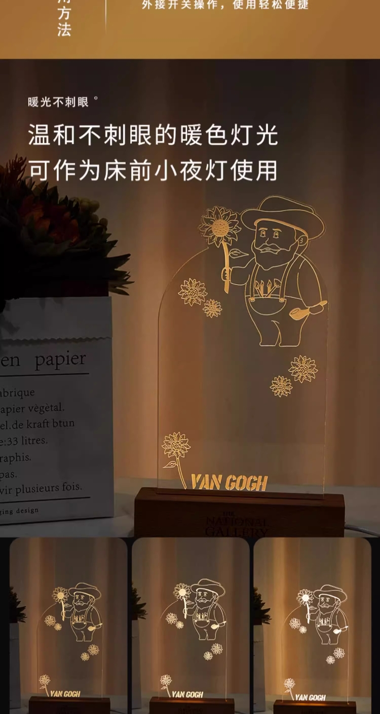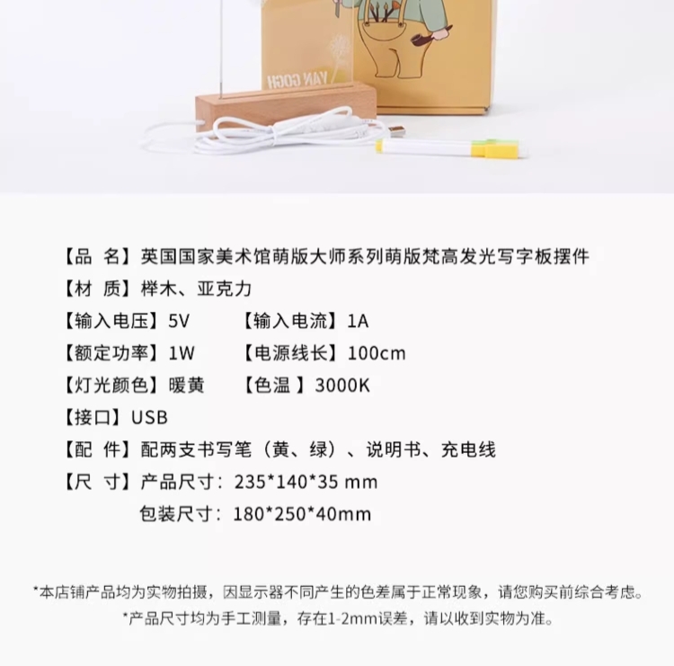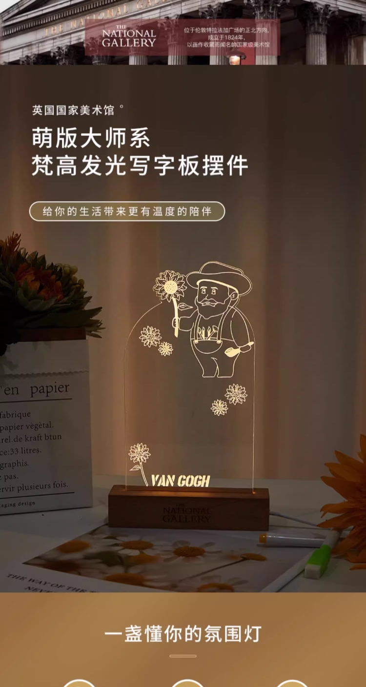 The National Gallery大师系列 萌版梵高发光写字板摆件USB小夜灯氛围灯