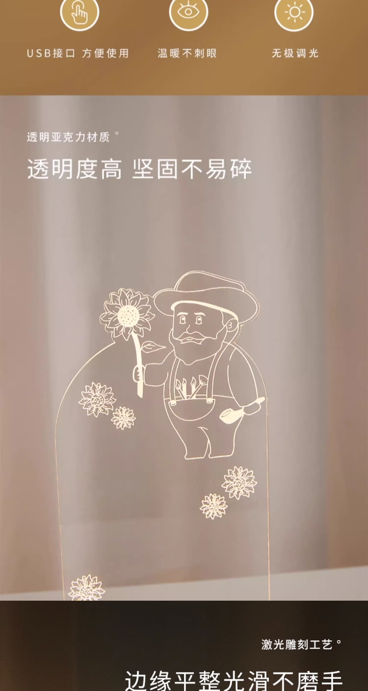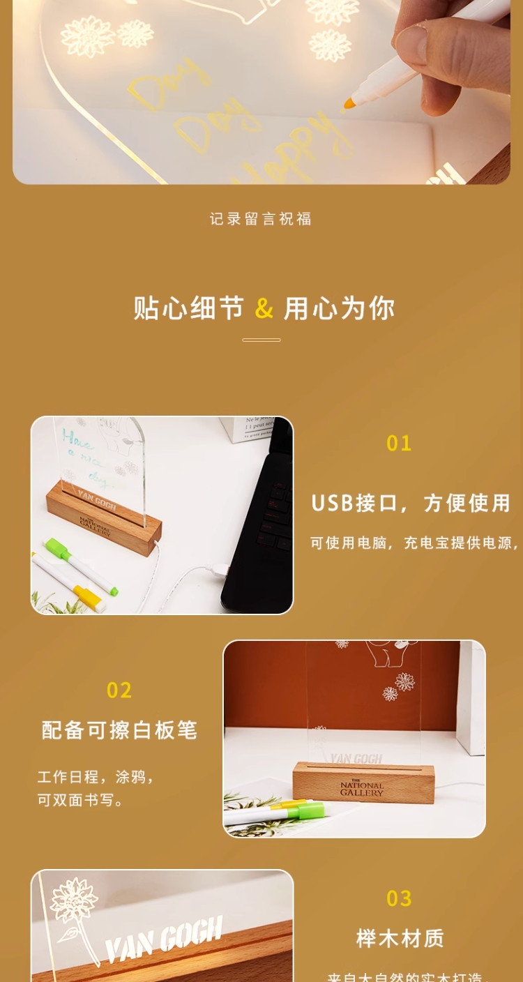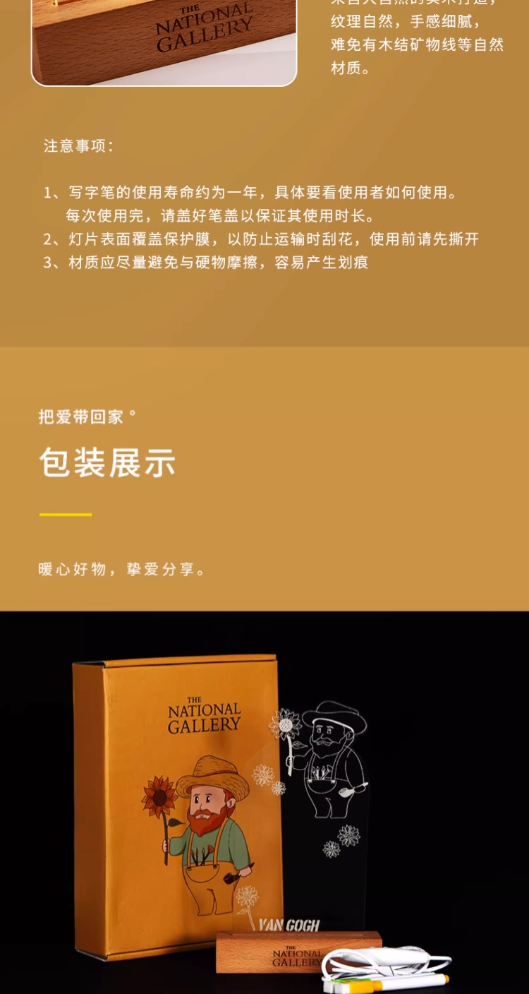 The National Gallery大师系列 萌版梵高发光写字板摆件USB小夜灯氛围灯
