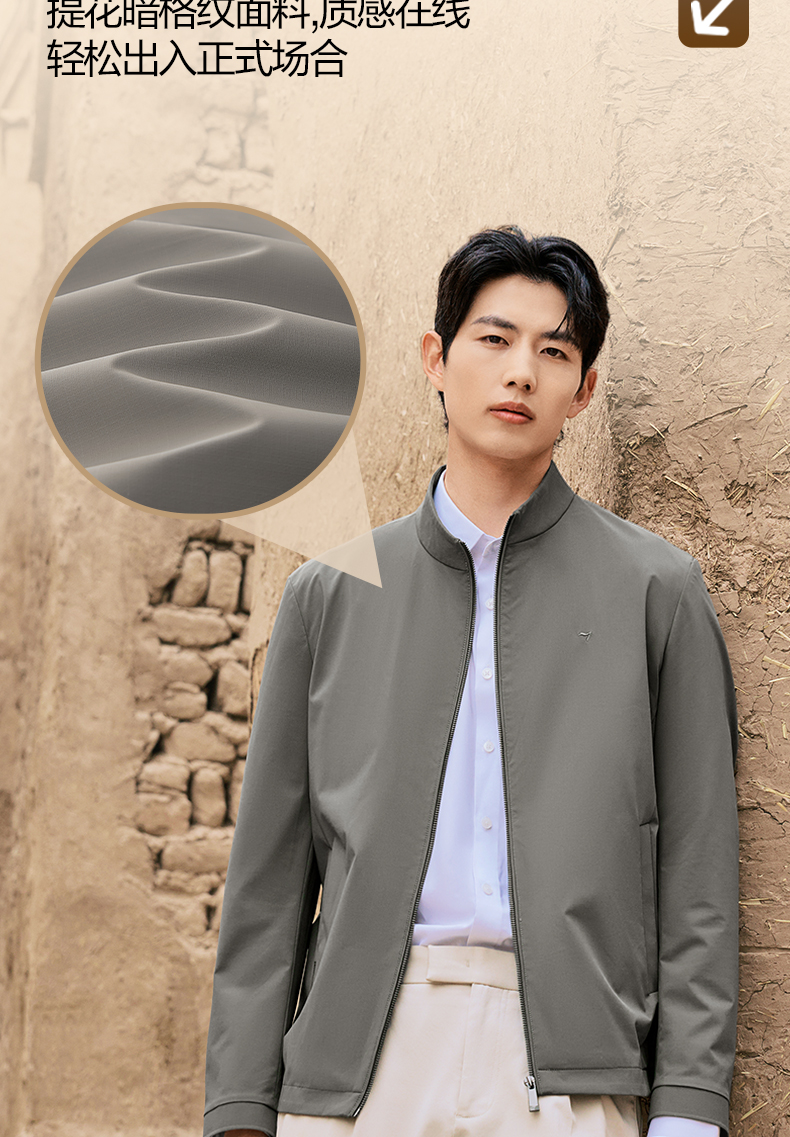 【商务立领茄克】柒牌男装2025秋季新品时尚潮流提花暗格纹外套129K70150