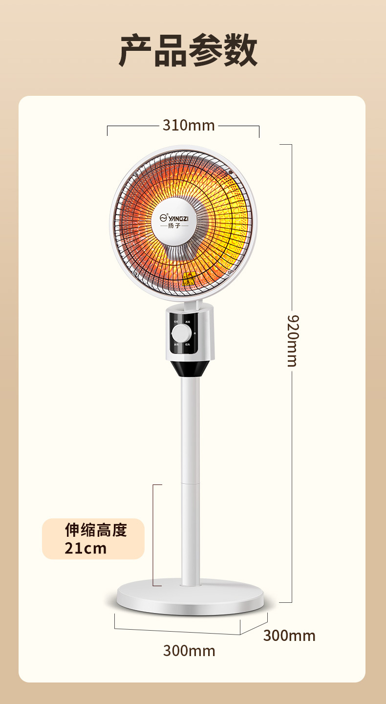 【三秒速热!温暖不等待】扬子小太阳取暖器家用客厅电热器速热客厅台地两用加热器烤火炉,两档温度调节,满足不同温暖需求。ry