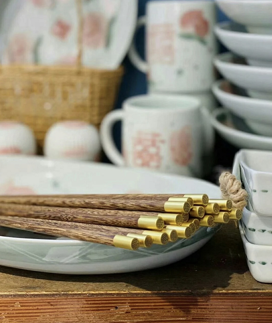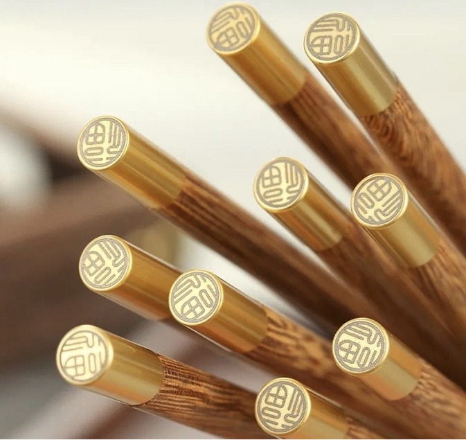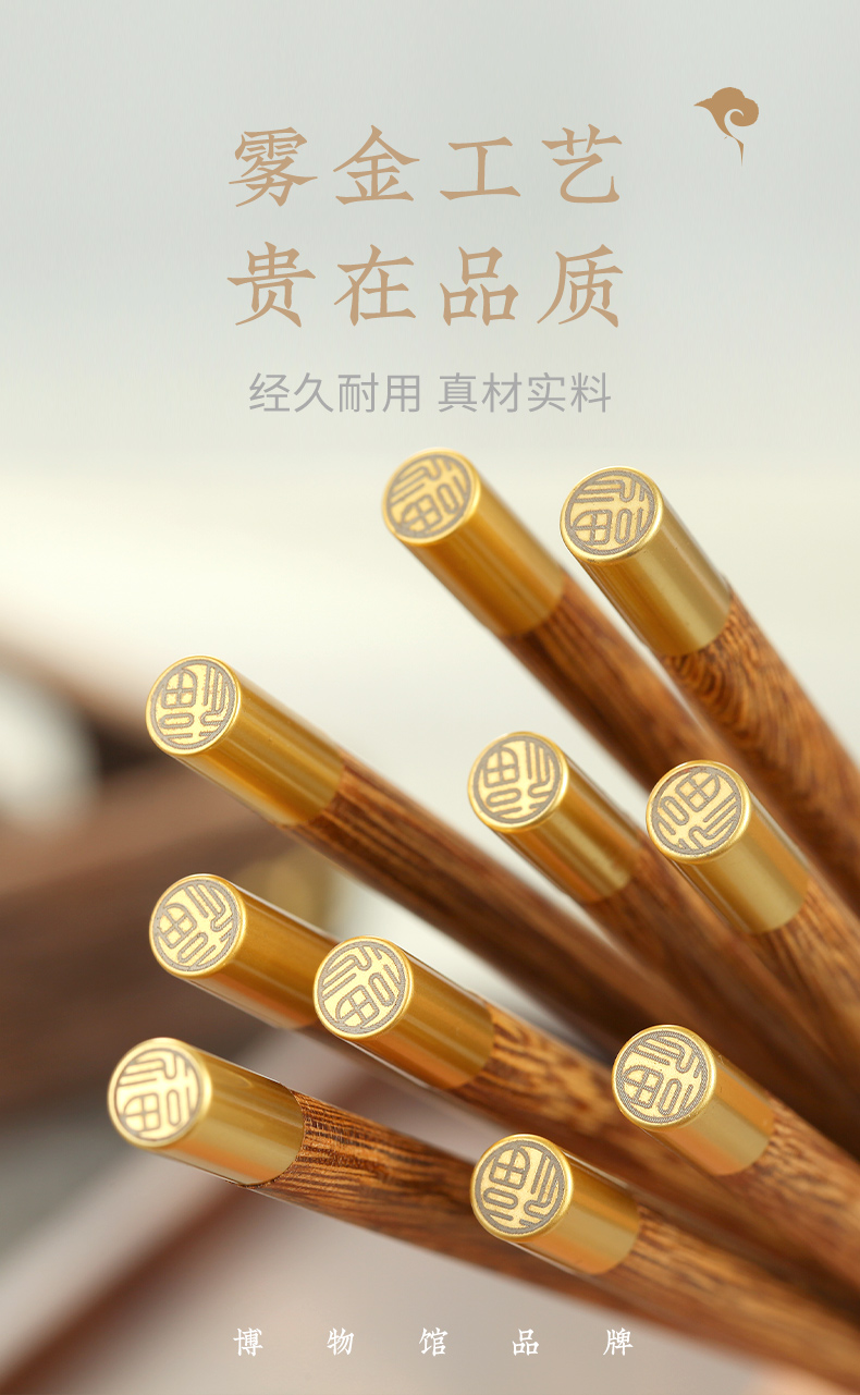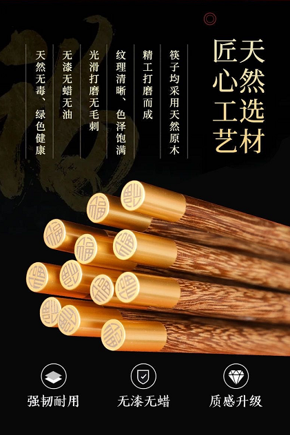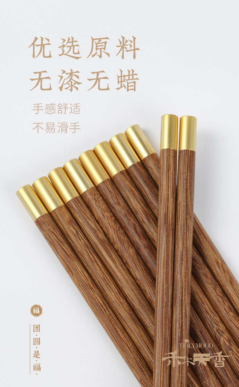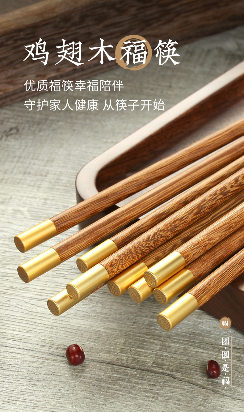 1. 筷尾圆形镶金福顶设计,体现出了中式筷子的寓福之意,好看好用又有好彩头~
