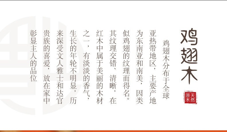2.全球八大红木之一的南美进口鸡翅木整木手工打磨,鸡翅木纹交错,优雅古典,自带鸡翅木天然微香。无漆、无蜡、无拼接、无染色、不易霉变。手工锻造打磨,边缘平缓无毛刺,不伤嘴,安全到细微之处。