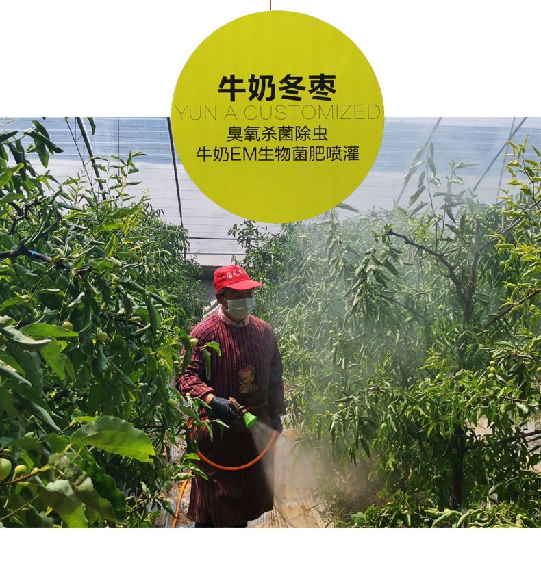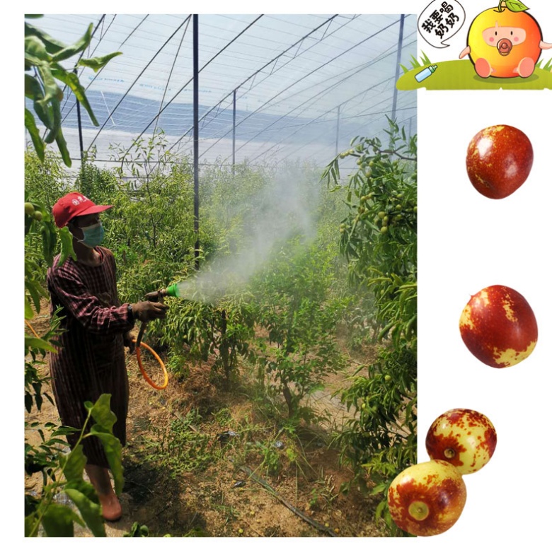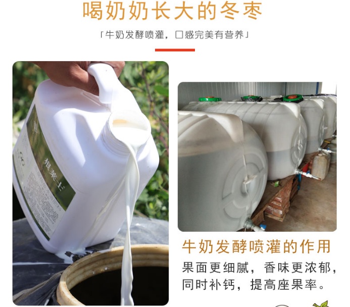 2、冬枣成熟前两个月 每个10天喷奶一次,预防裂果,提高冬枣口感风味